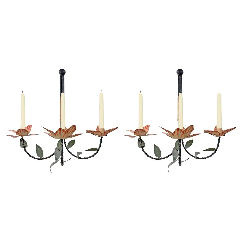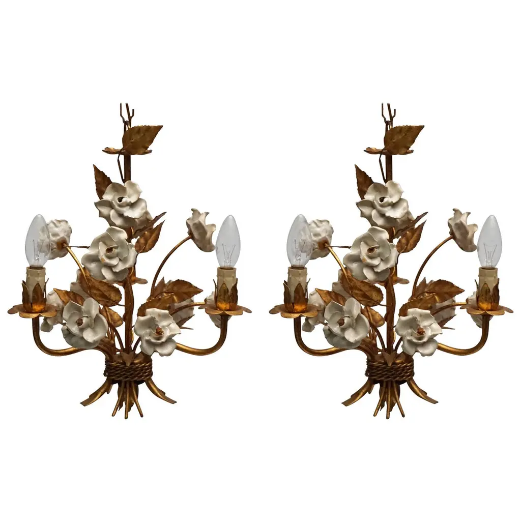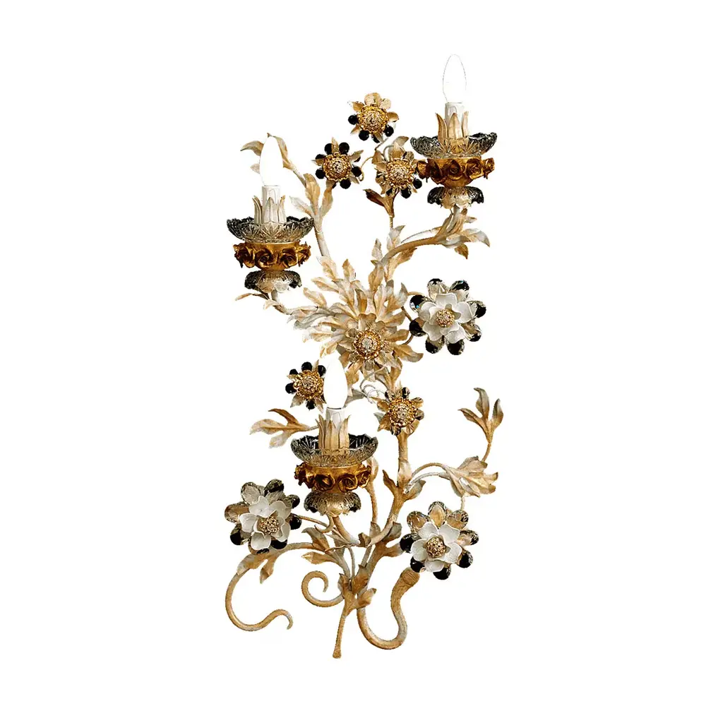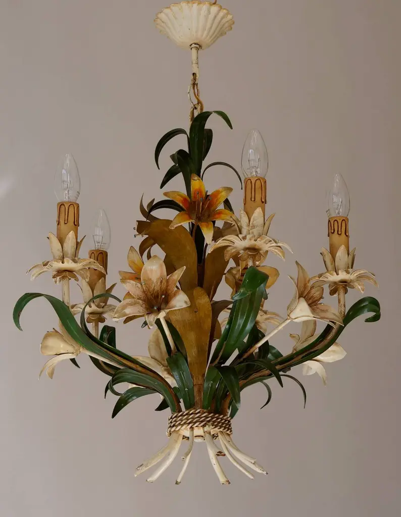 One Of Two Italian Tole Flowers Polychrome Chandeliers
