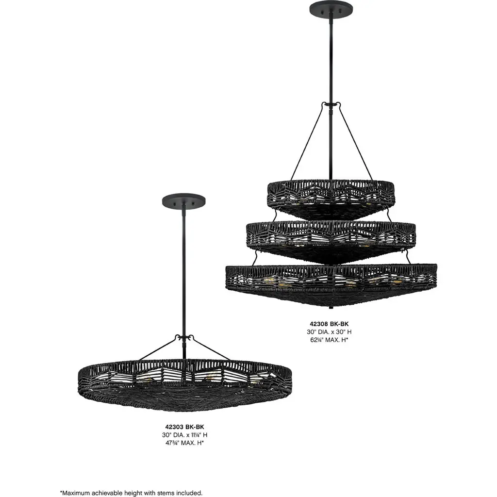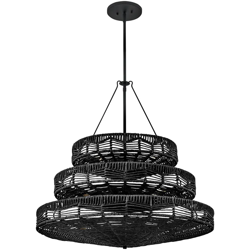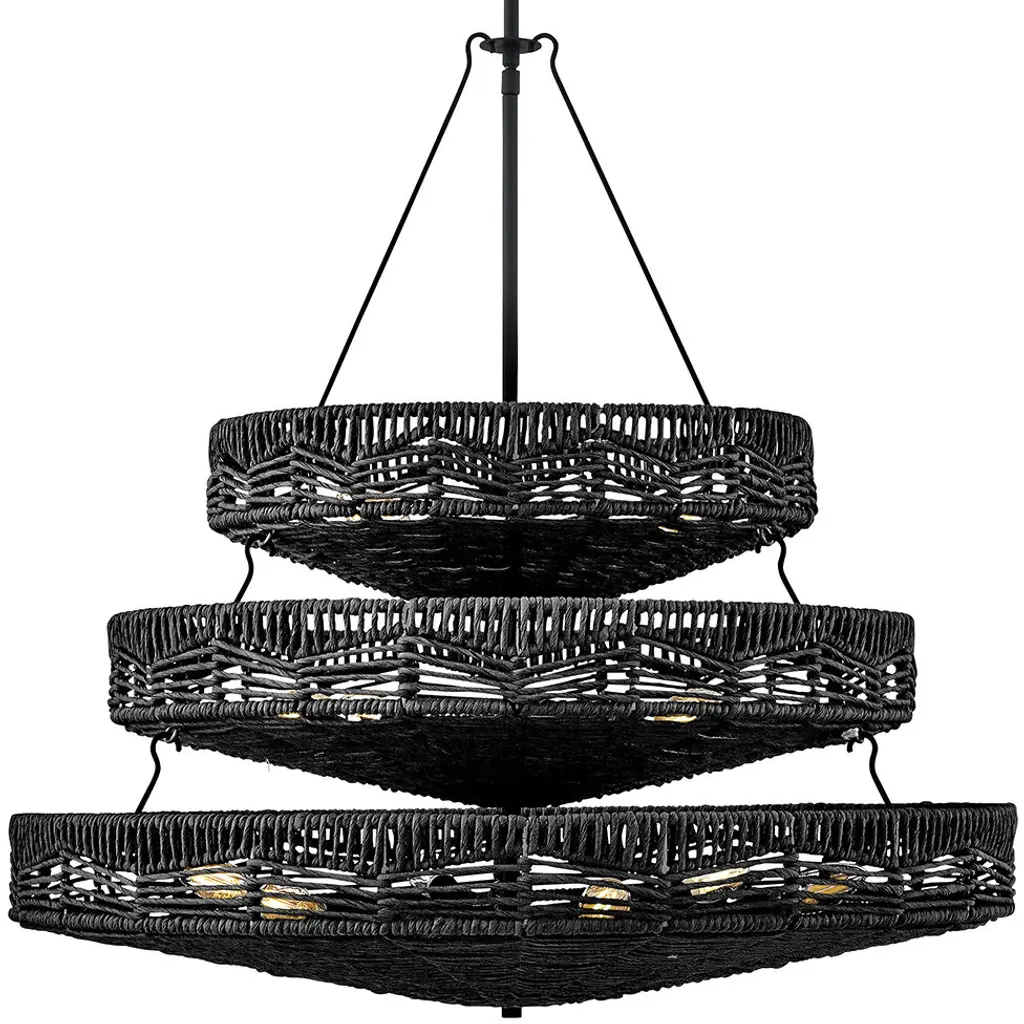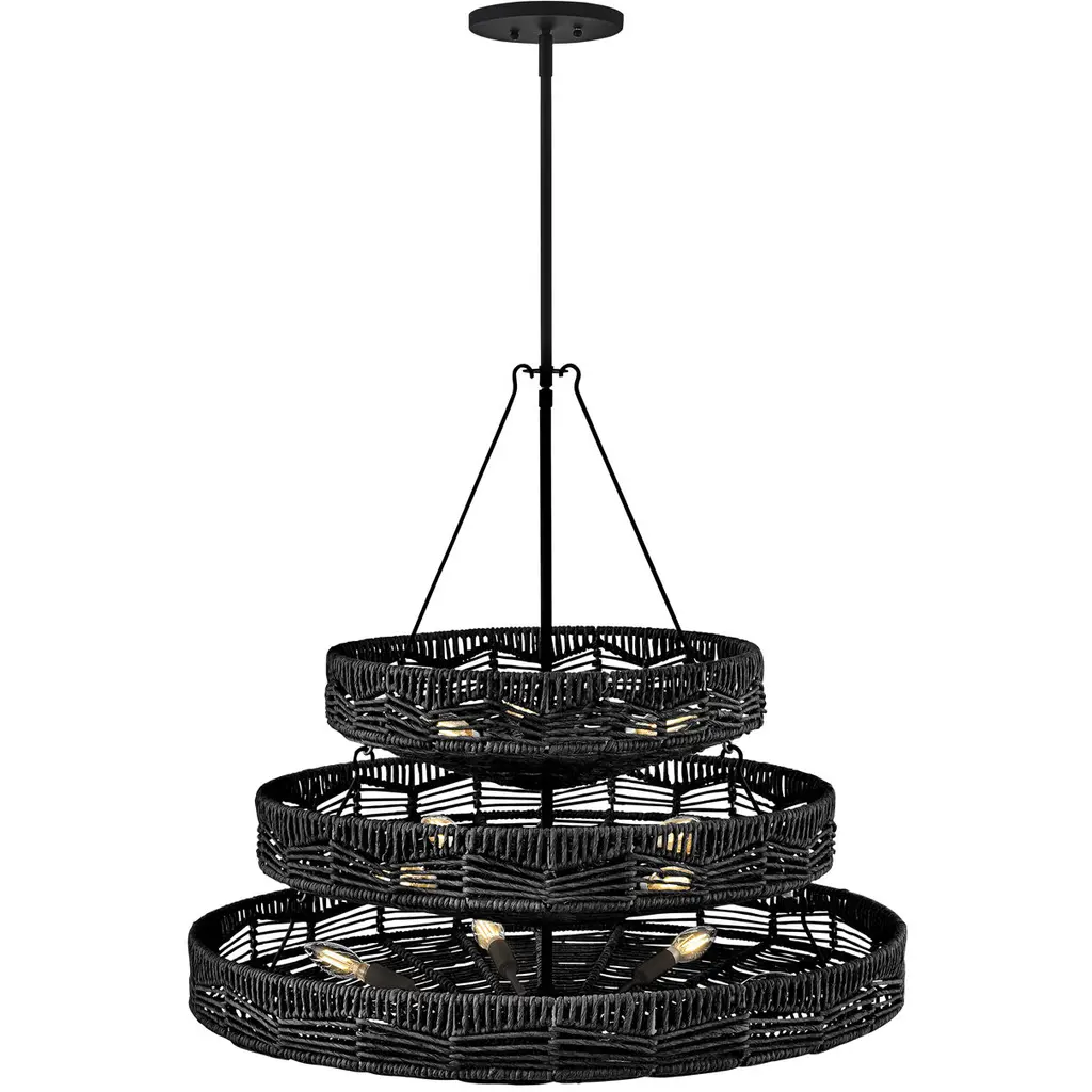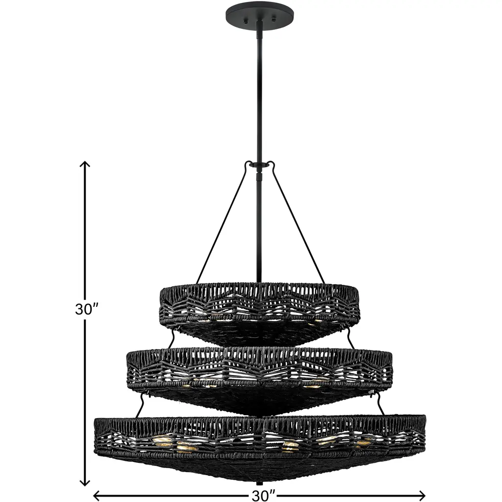 Ophelia 13 Light 30 Inch Black Chandelier Ceiling Light, Multi Tier