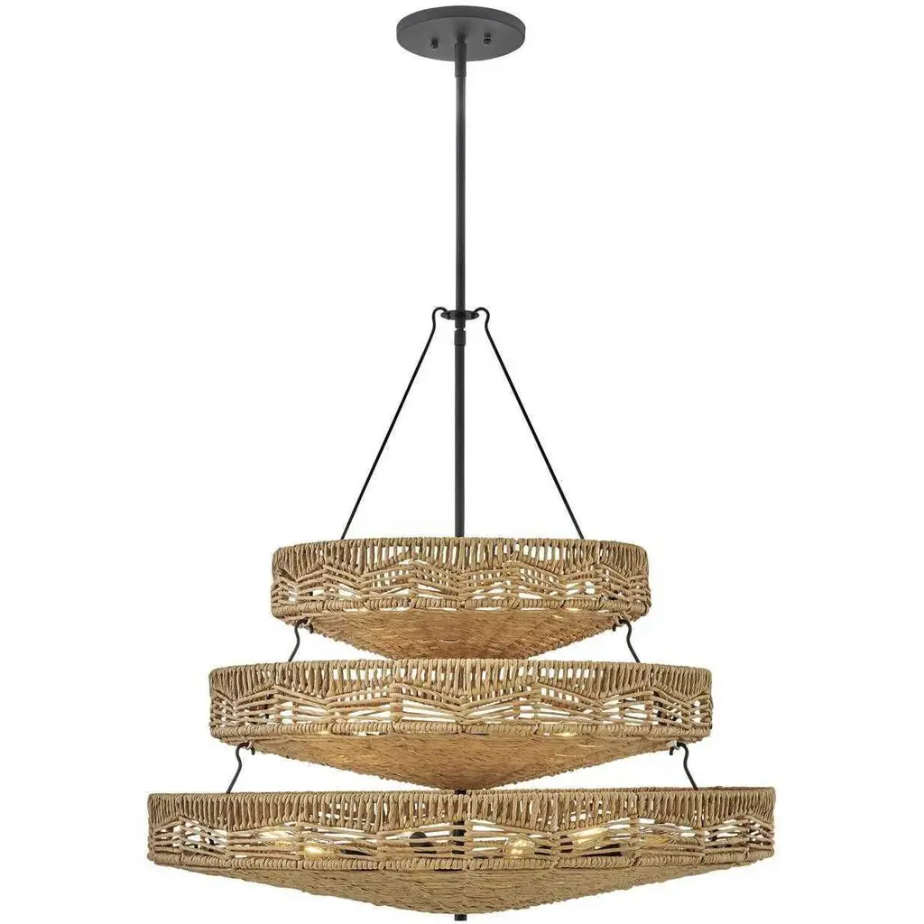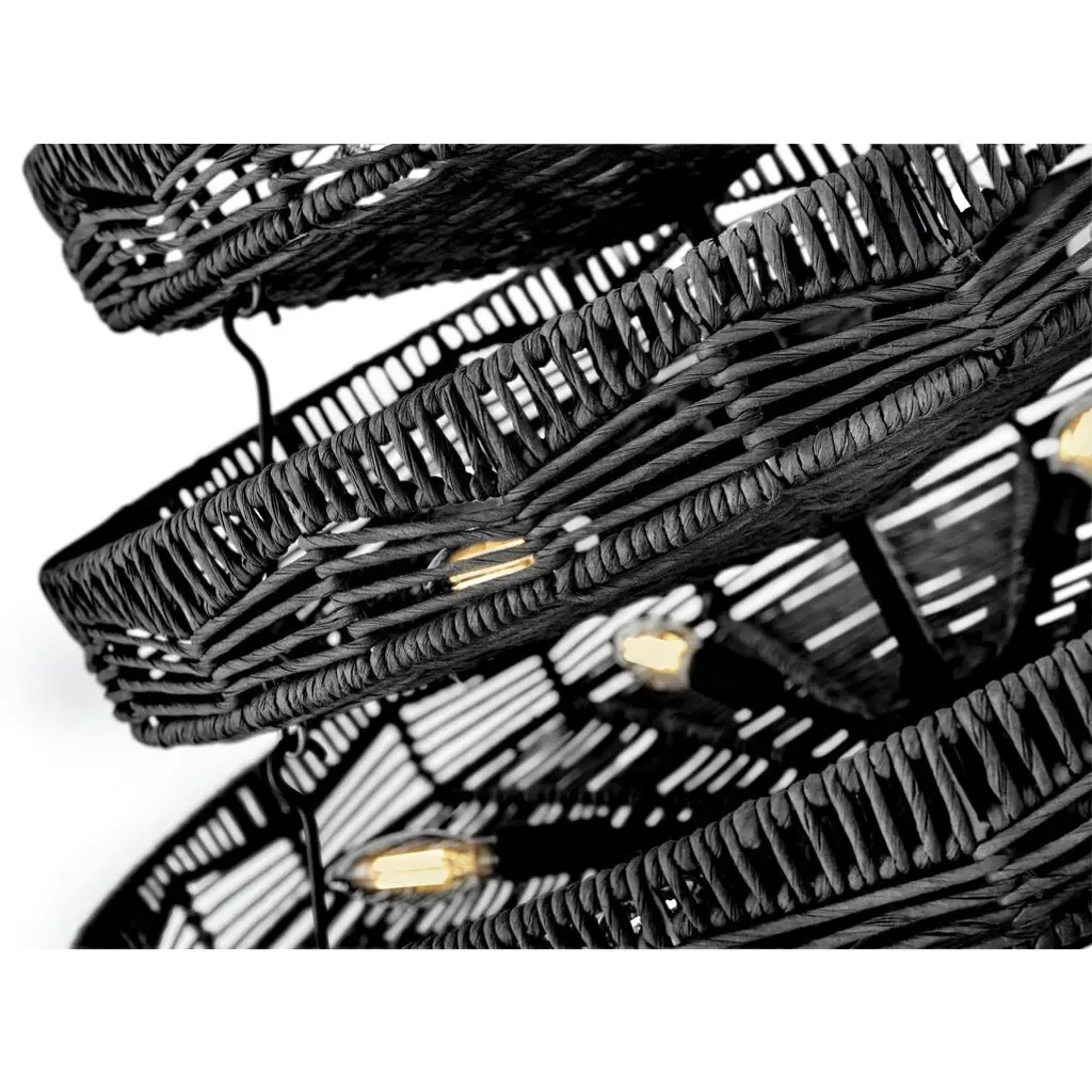 The Lisa McDennon Collection offers a striking mix of edgy, sculptural silhouettes that incorporate modern, organic elements and luxe materials, brought to life by her innovative and original point of view. This dazzling design offers striking illumination through a beautiful handwoven pattern. Ophelia radiates with organic elegance as a natural shade adorns a tiered basket frame finished in Black.