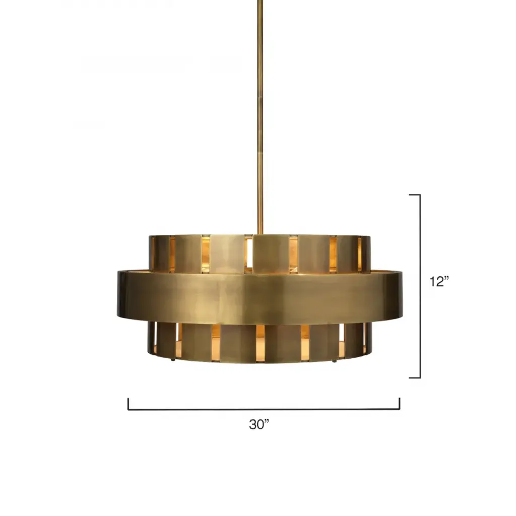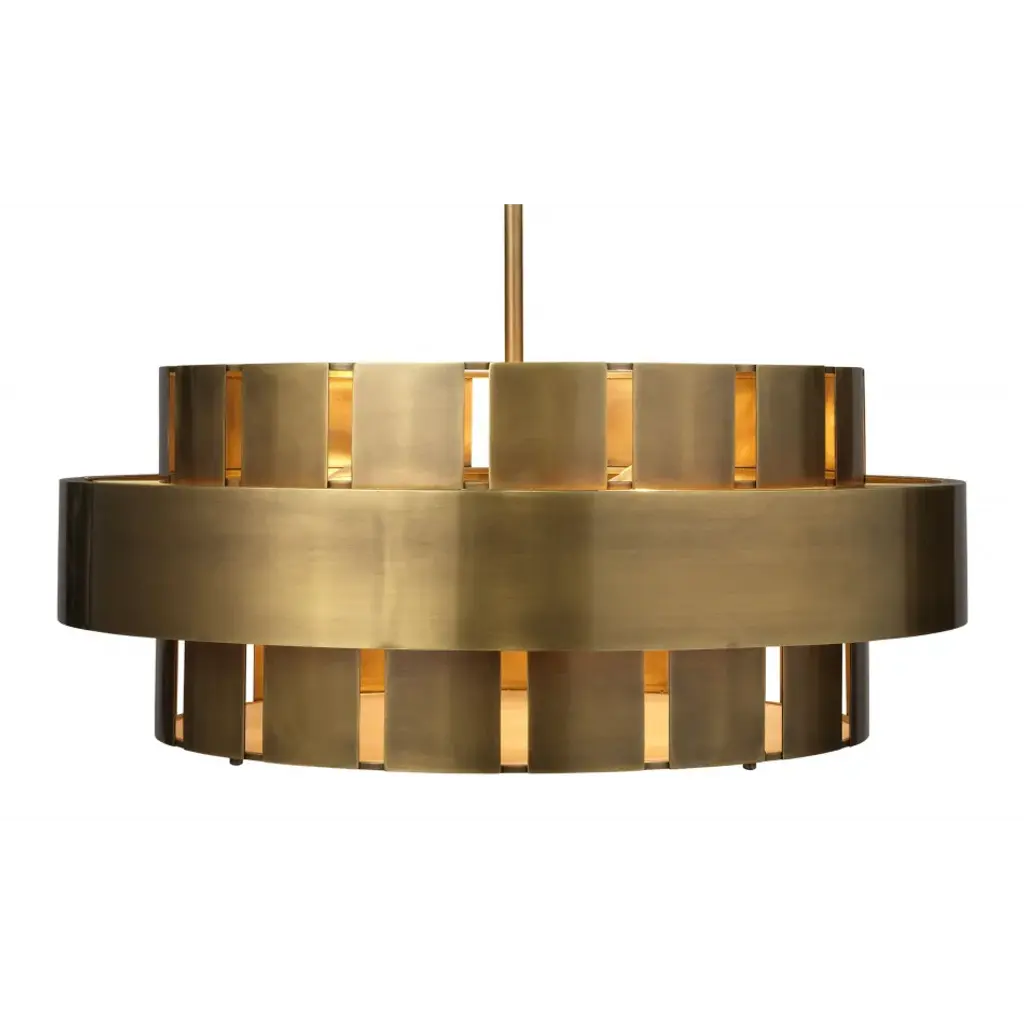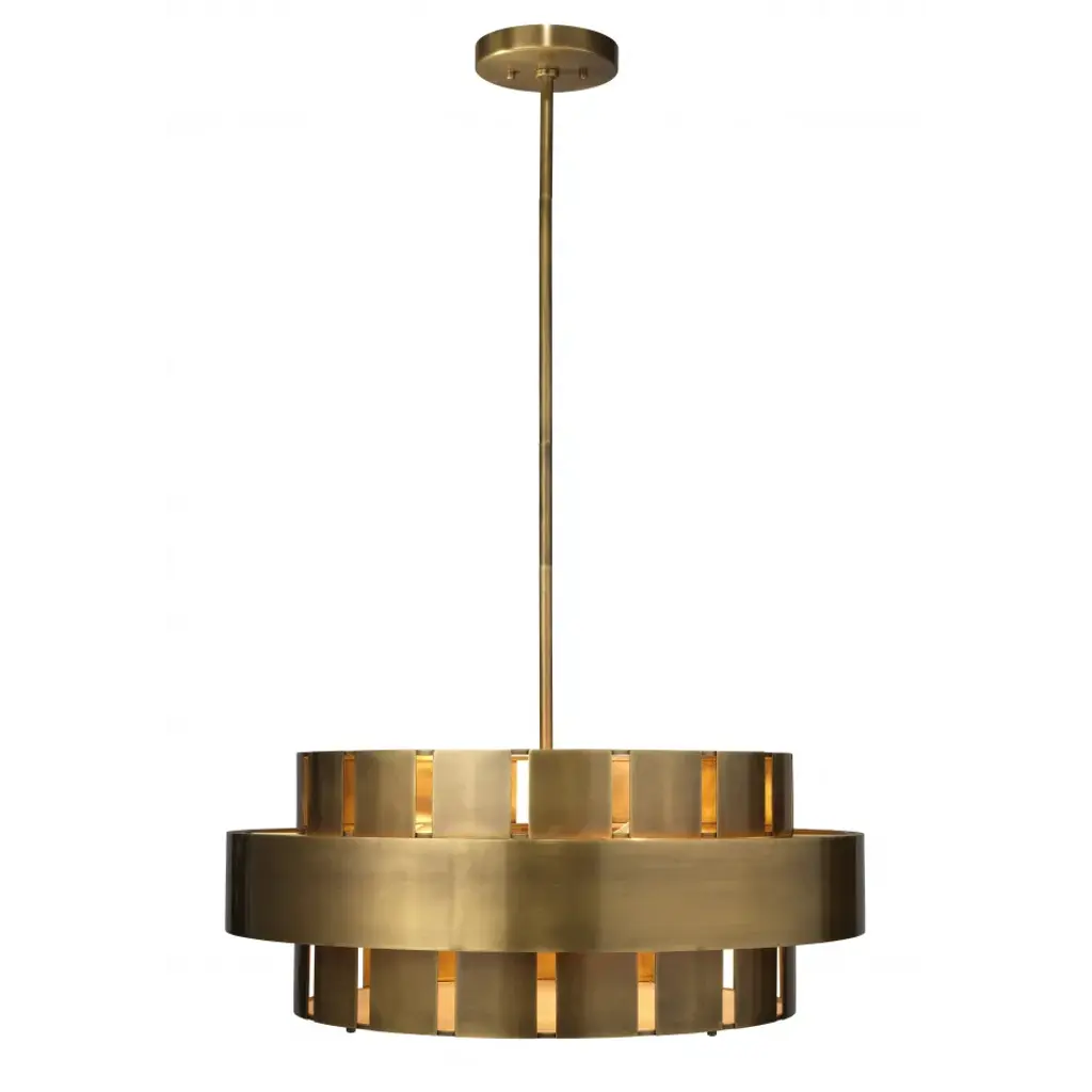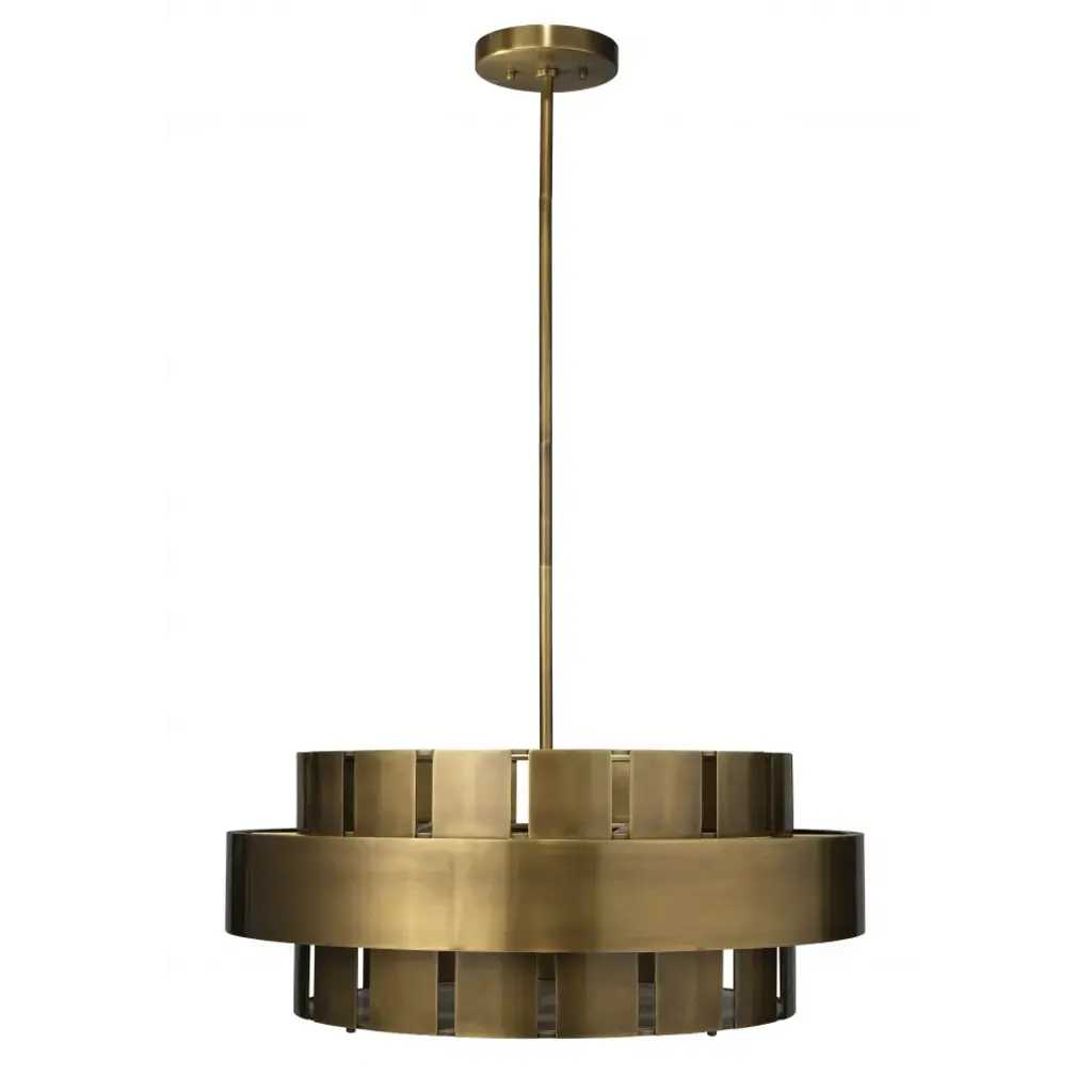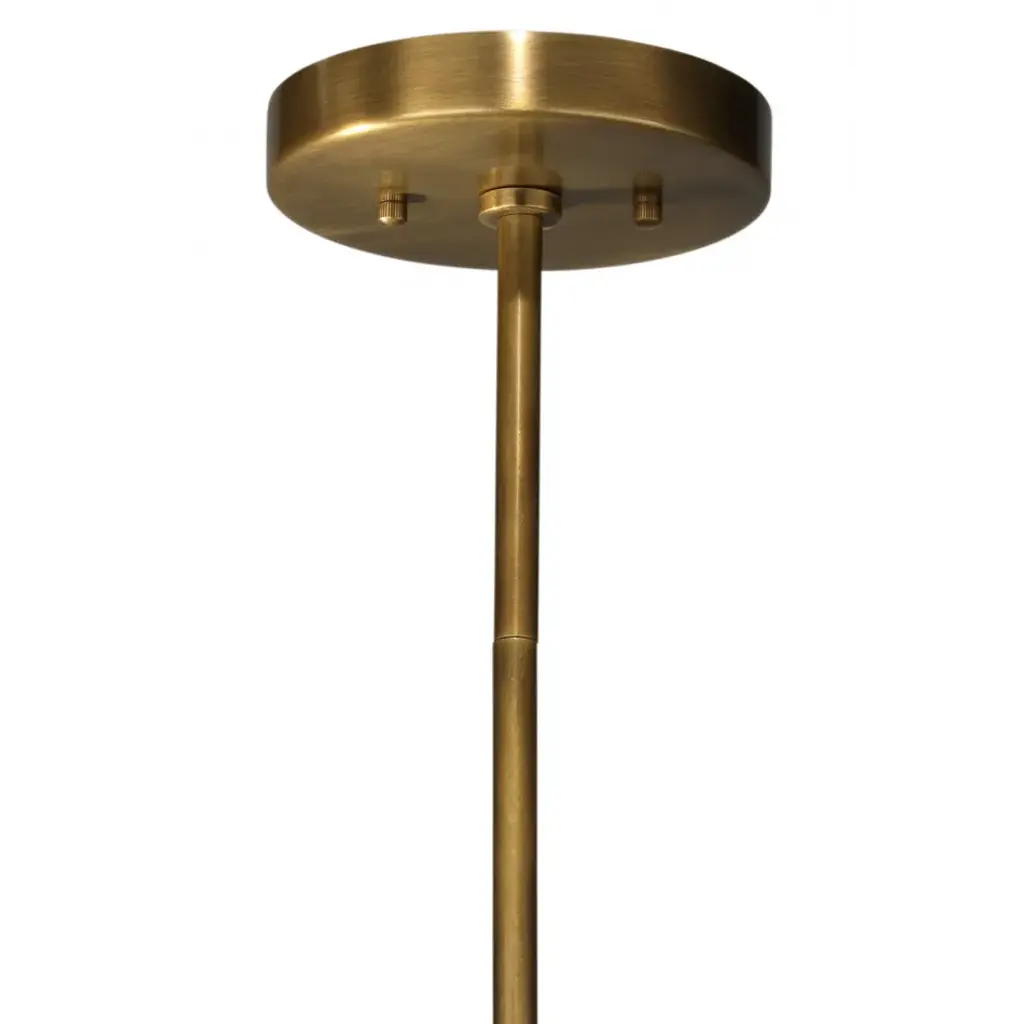 Drawing inspiration from ancient castle turrets and modern simplicity, this pendant melds unexpected eras into a cohesive design. Its burnished antique brass finish exudes natural warmth and a rich patina, enhancing its timeless appeal. Complete with a coordinating adjustable rod, canopy, and an acrylic diffuser to soften bulb glare, this fixture ensures a comfortable ambiance. Notably, the bulbs remain discreetly concealed when viewed from beneath the fixture, maintaining a seamless aesthetic.