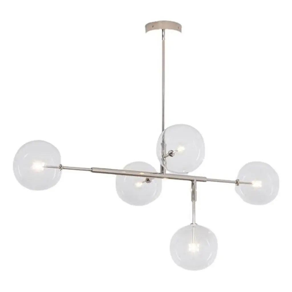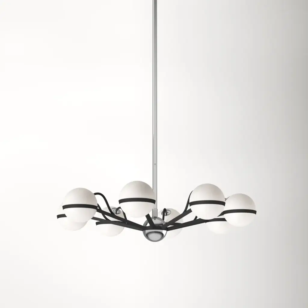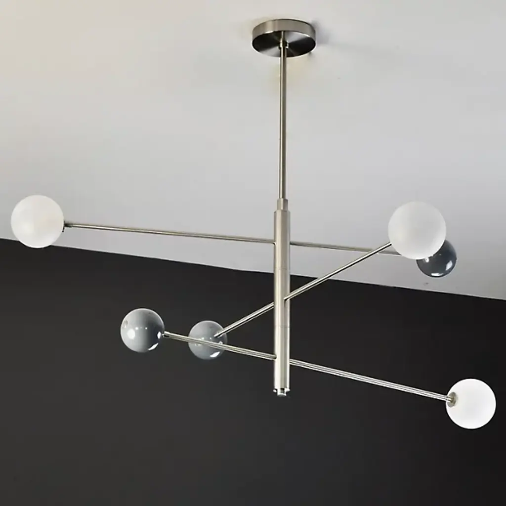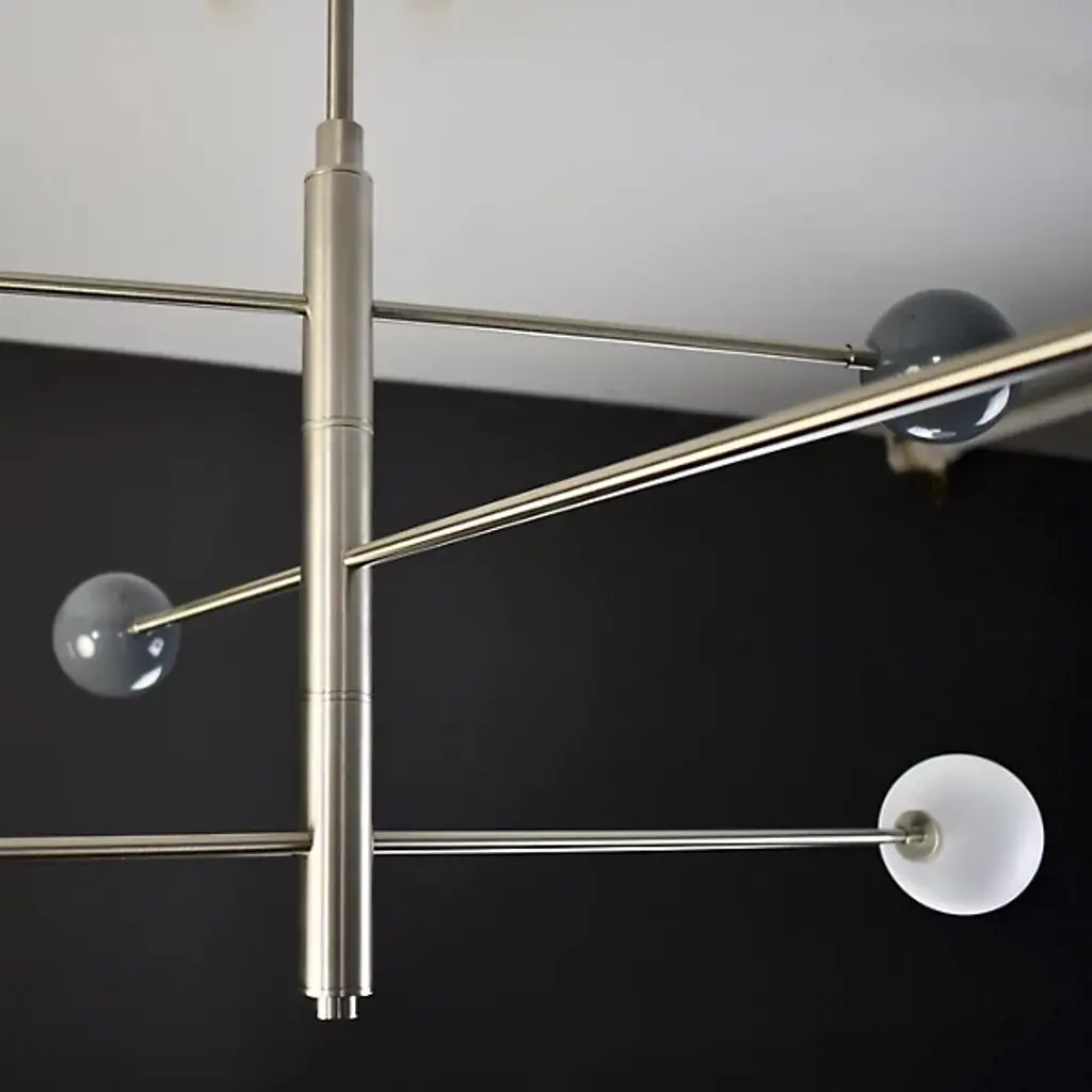 The Orbital 3-Tier Chandelier from Blueprint Lighting sees guests orbiting its delightful shapes as a functional sculpture defined by mixed materials. Blueprint Lighting makes its mark with unconventional and unexpected designs. This piece starts with a trim suspension that sets a visually light foundation. The 320-degree rotatable arms shoot across the room like a dynamic mobile sculpture. In bold contrast, one side holds a handblown glass globe while the other side holds an enamel counterweight. Light radiates from the glass, dotting the room with a crisp ambiance.
