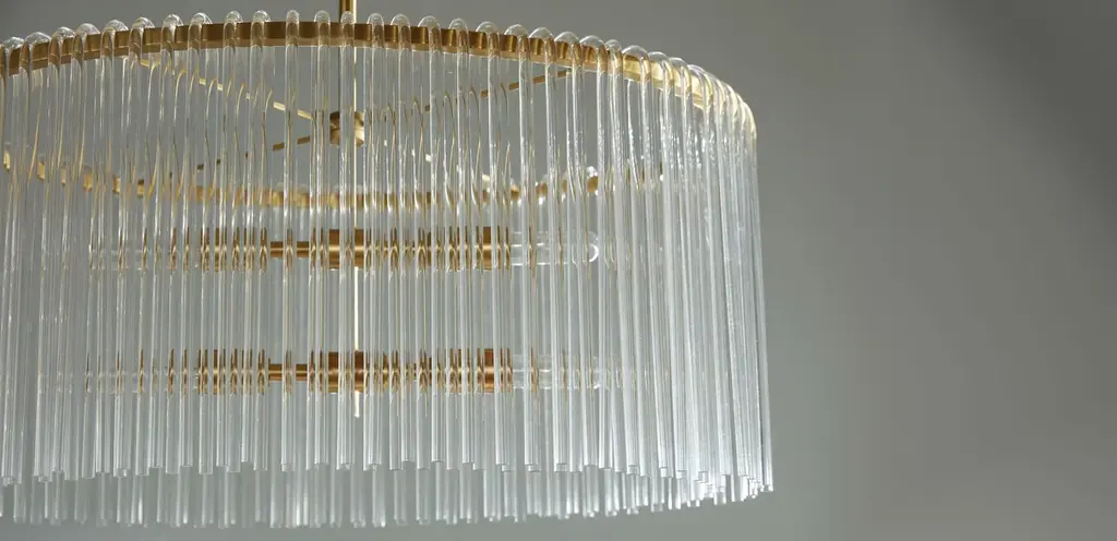 With more than a little midcentury chandelier glam going on, the Orchard is sure to transform your foyer into a grand entrance—or bring an Old Hollywood vibe to your dining room or boudoir. Made of Lucite rods hanging from an oval steel frame, this waterfall-style chandelier, available in a polished nickel or antique brass chandelier finish, dazzles with both movement and shine.