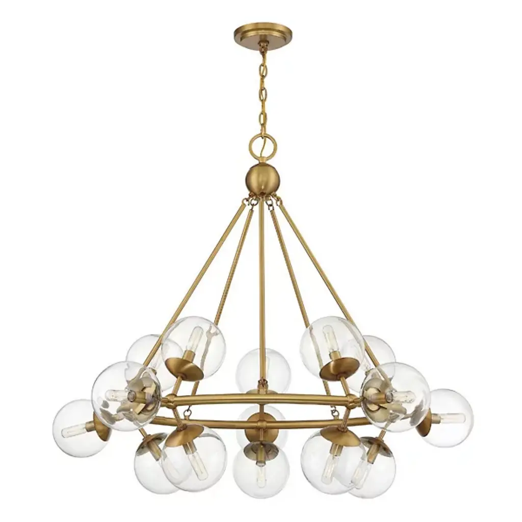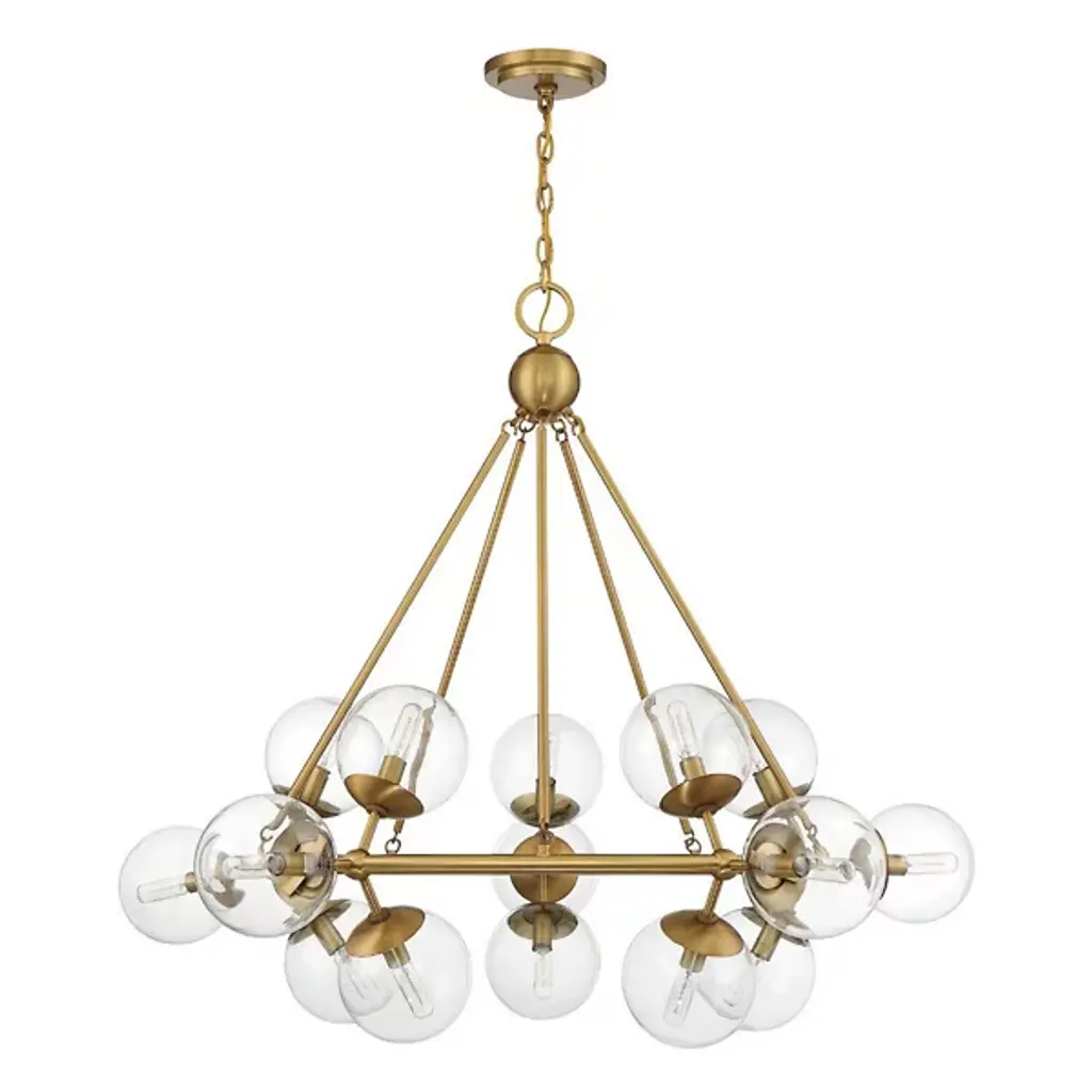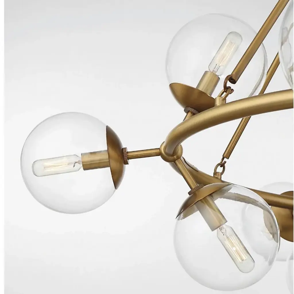 Give your home a jovial aura with the Orion Chandelier by Savoy House. From a ceiling canopy hangs a chain that latches to a collection of strong downrods. These downrods aid a group of glass globes in midair suspension. From inside each globe, a bulb diffuses brilliant light that brings visibility to your contemporary setting. These lights are arranged at acute angles for a concentrated lighting experience that will enliven your gatherings. • Multi-light fixture • For use indoors • Globe shades neatly arranged