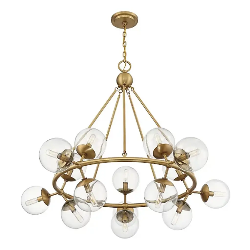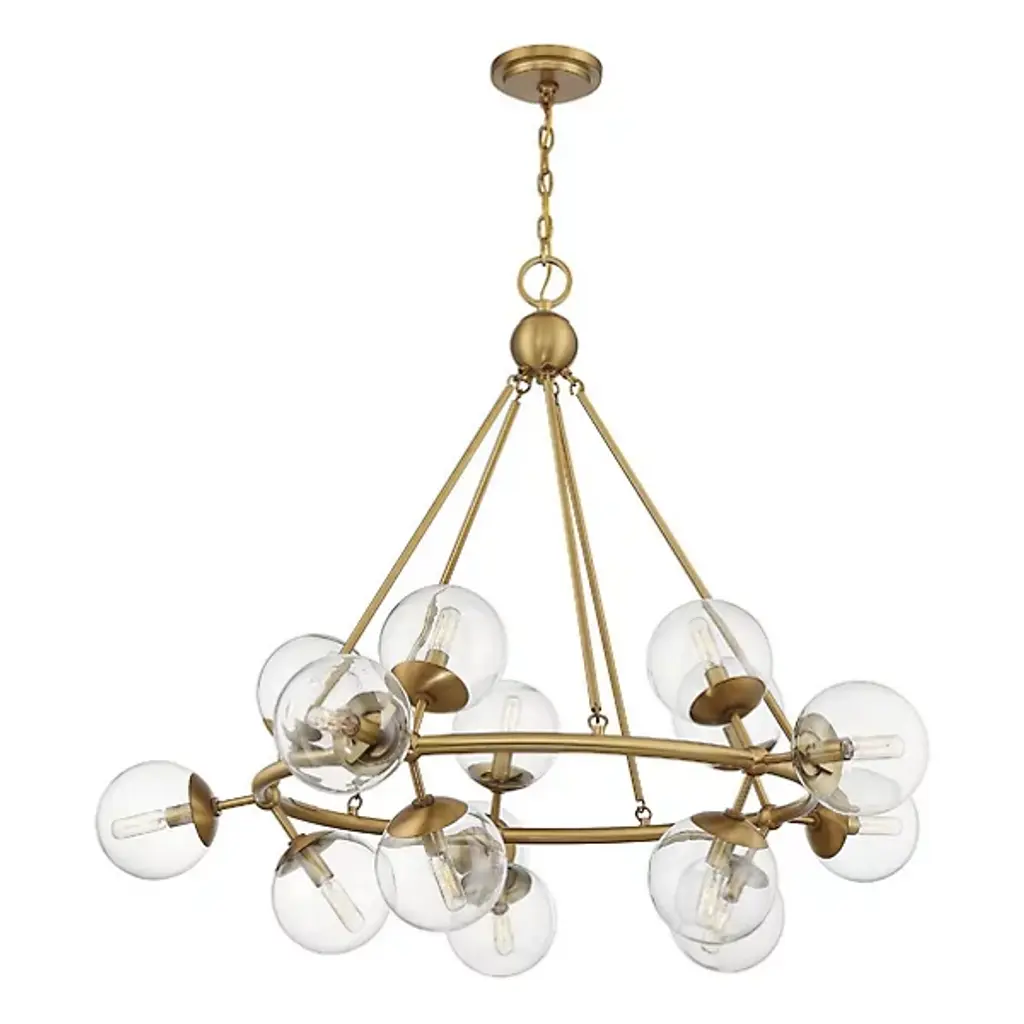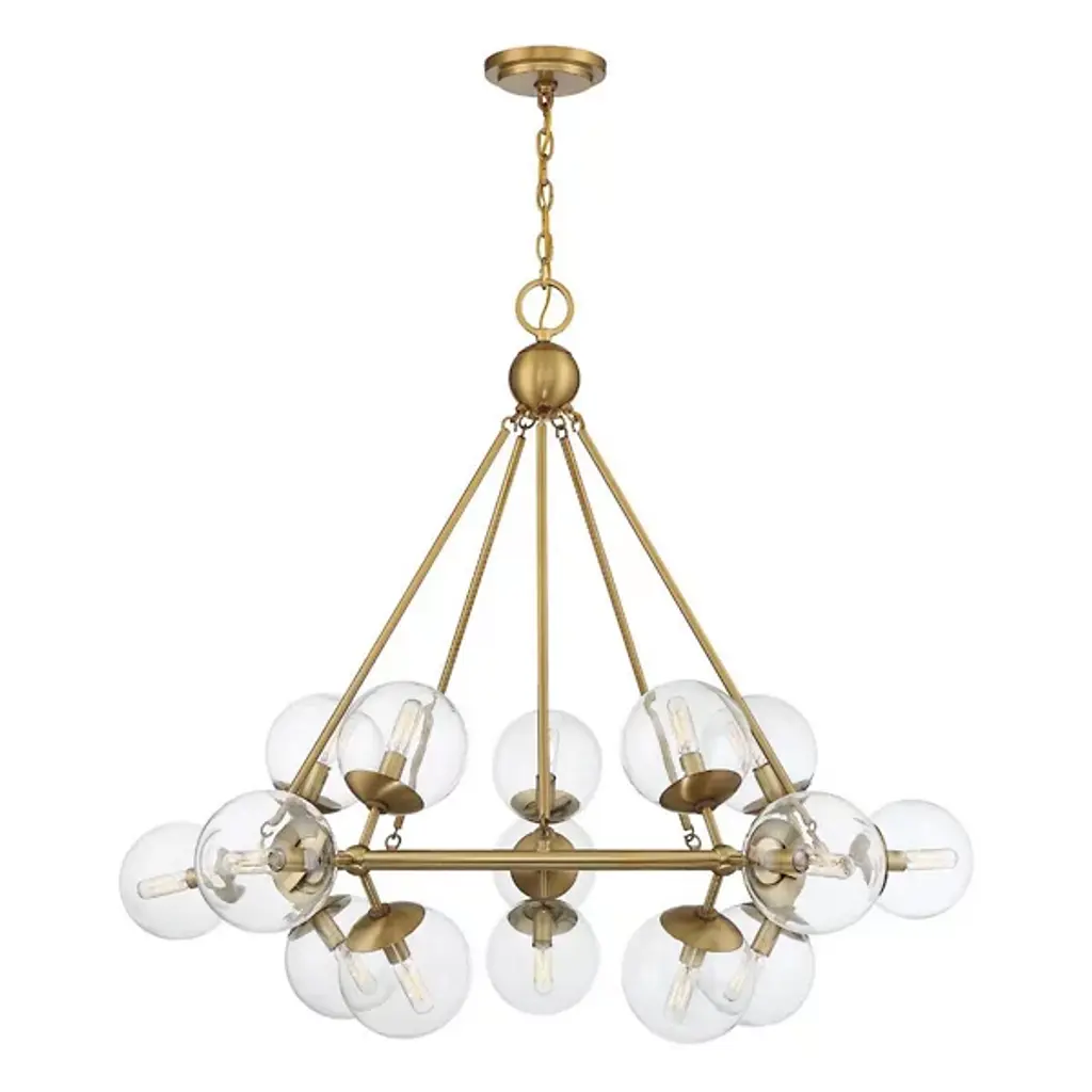 Give your home a jovial aura with the Orion Chandelier by Savoy House. From a ceiling canopy hangs a chain that latches to a collection of strong downrods. These downrods aid a group of glass globes in midair suspension. From inside each globe, a bulb diffuses brilliant light that brings visibility to your contemporary setting. These lights are arranged at acute angles for a concentrated lighting experience that will enliven your gatherings. • Multi-light fixture • For use indoors • Globe shades neatly arranged
