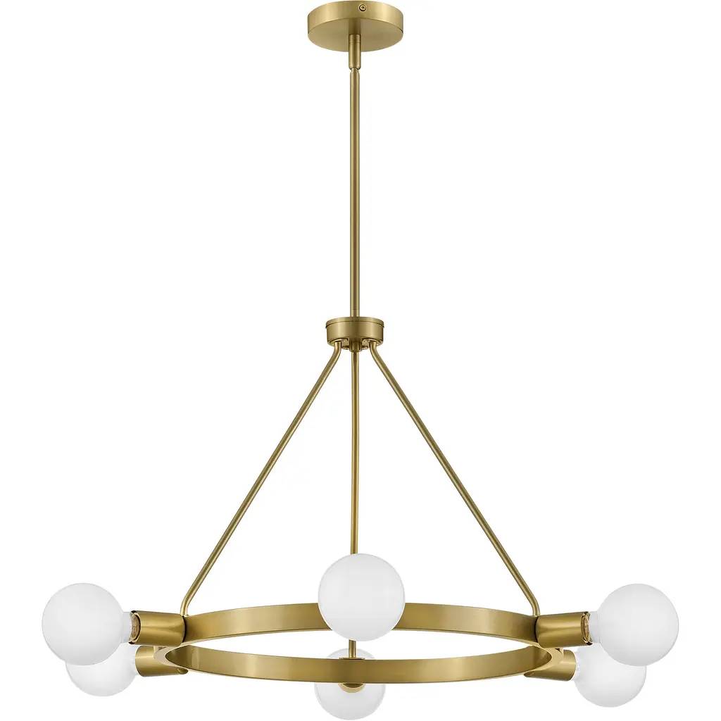 A mid-century modern vibe with a glimpse of Hollywood glam? Yes, please. Orla brings the dimensional interest with multiple plays on circles and globes. The streamlined profile is simple, with each individual element contributing to the overall silhouette in a big way. Available in Lacquered Brass or Black with Lacquered Brass accents, Orla makes a prominent style statement. G-style bulbs recommended.
