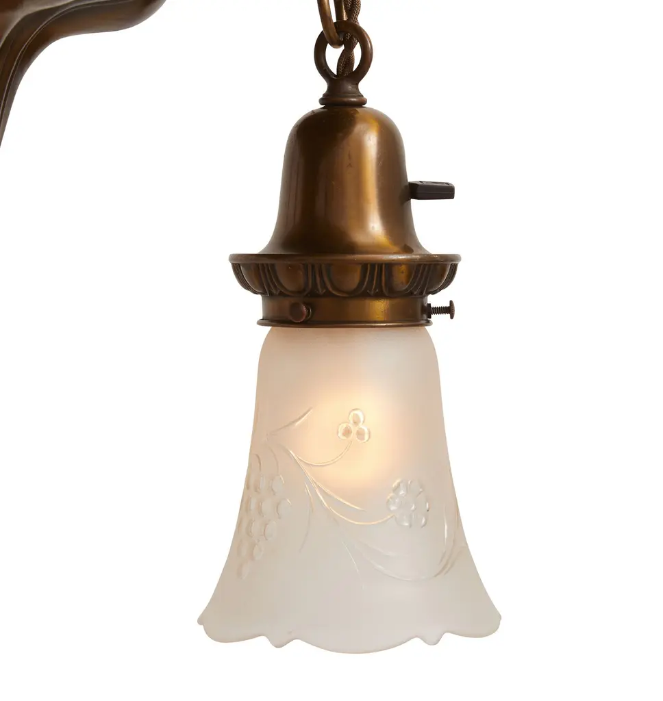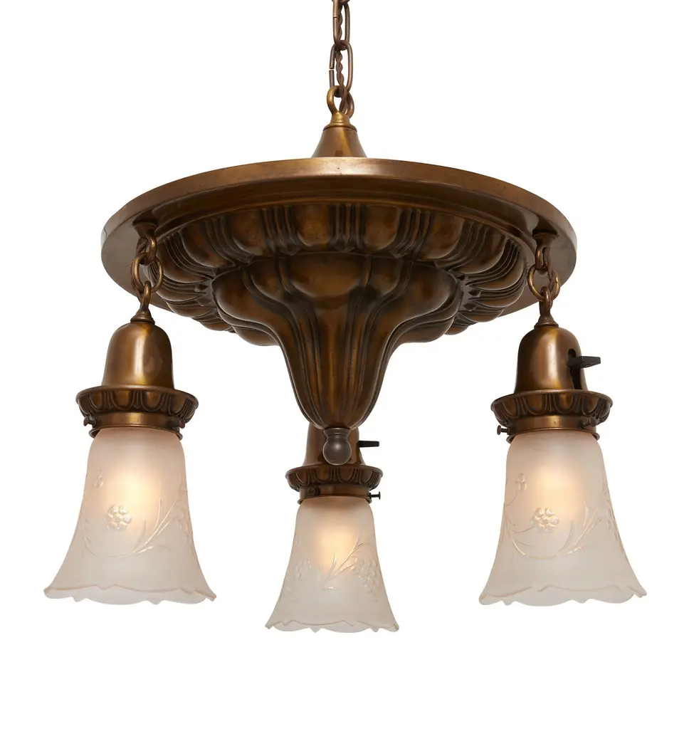 Ornate Vintage Sheffield Style 3 Light Chandelier With Etched Glass Shades