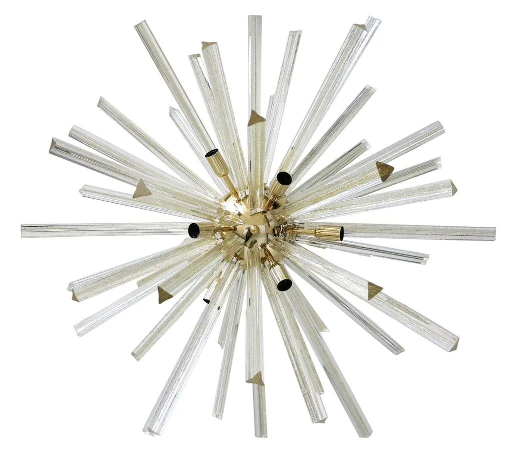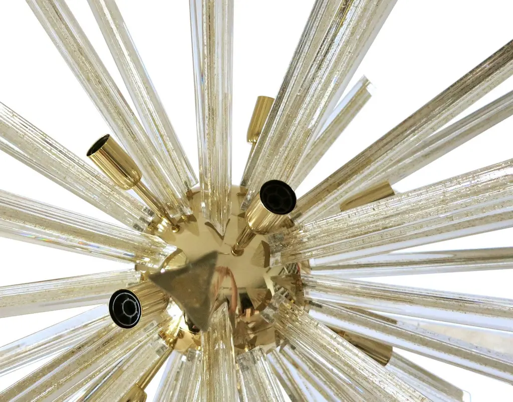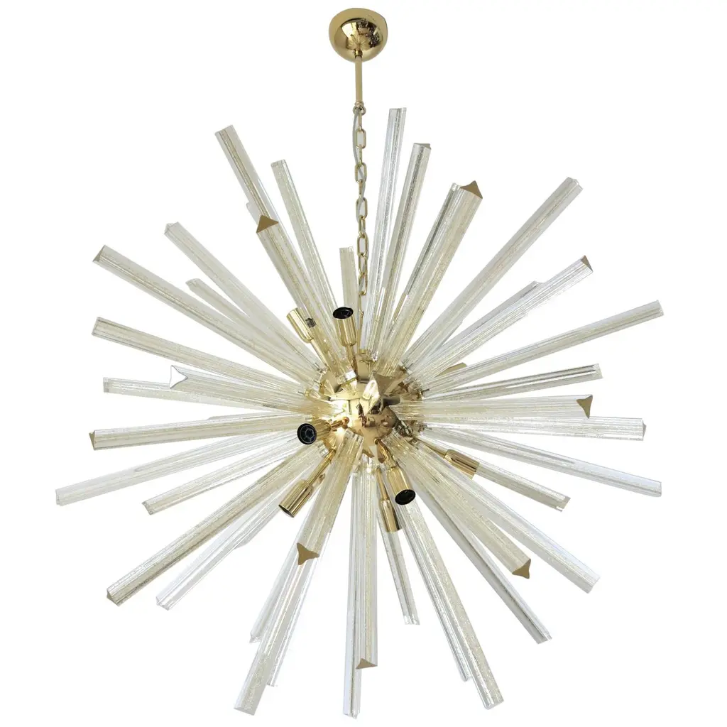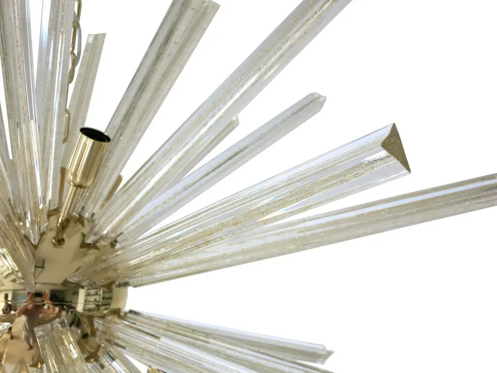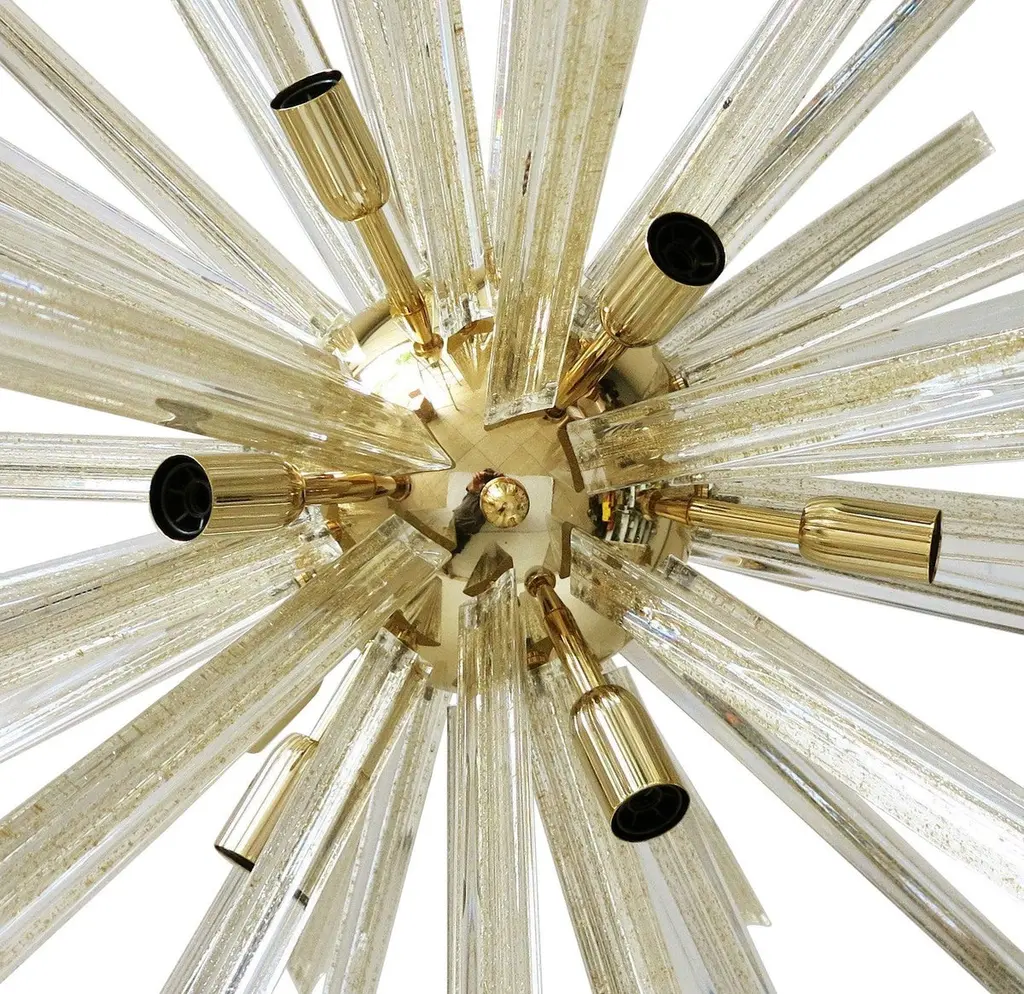 Italian Sputnik chandelier with Murano glasses hand blown into three points using Triedri technique and infused with gold flecks, mounted on 24-karat gold-plated frame / Designed by Fabio Bergomi for Fabio Ltd inspired by Venini / Made in Italy.12 lights / E12 or E14 type / max 40W eachMeasures: Height 39.5 inches plus chain and canopy / Diameter 39.5 inchesOrder only / This item ships from ItalyOrder Reference #: FABIOLTD C508 GOLD