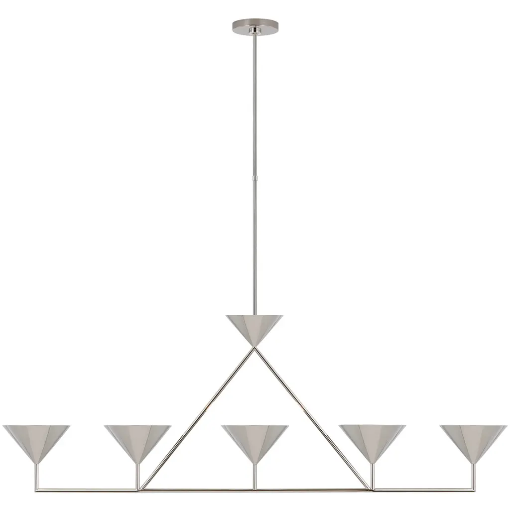 The rich metallic finish highlights the sculptural elegance of this five-bulb linear chandelier. Because it's damp rated, you can hang it in a bathroom as well as above a dining table, in an entry, or just about anywhere else in your home.