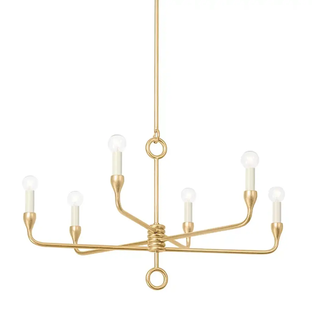 The design of the Orson Chandelier from Troy Lighting is both captivating and modern. Linear arms gracefully extend from a totem-stacked coil center, creating an elongated and dramatic silhouette. The sleekness of this design is accentuated by its simple loop accents and textured metalwork. This product enables you to make a bold and contemporary statement throughout your home by beautifully enhancing its ambiance and style.