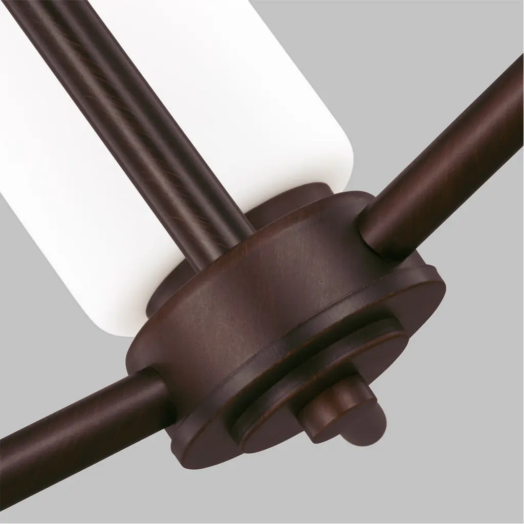 The Oslo three light single tier chandelier in bronze is an ENERGY STAR½ qualified lighting fixture that uses LED bulbs to save you both time and money. The Oslo lighting collection by is a sleek design, with smooth and clean lines. The Opal Etched glass adds to this collection's contemporary and minimalist character. Offered in Chrome, Brushed Nickel, Burnt Sienna and textured Blacksmith finishes, the collection includes nine-, five-, and three-light chandeliers, pendants in four sizes, both flush and semi-flush ceiling fixtures, as well as one-, two-, three- and four-light wall/bath fixtures. Both incandescent lamping and ENERGY STAR-qualified LED lamping are available. All fixtures are California Title 24 compliant.