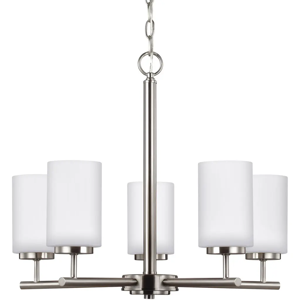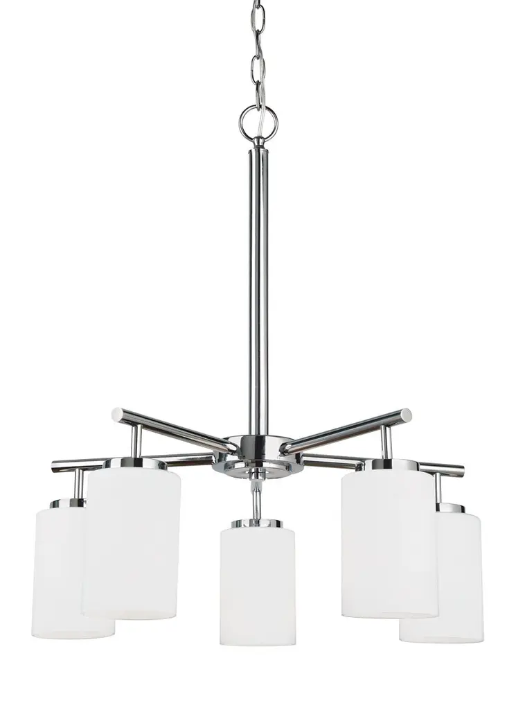 The Oslo five light single tier chandelier in chrome enhances the beauty of your home with ample light and style to match today's trends. The Oslo lighting collection by is a sleek design, with smooth and clean lines. The Opal Etched glass adds to this collection's contemporary and minimalist character. Offered in Chrome, Brushed Nickel, Burnt Sienna and textured Blacksmith finishes, the collection includes nine-, five-, and three-light chandeliers, pendants in four sizes, both flush and semi-flush ceiling fixtures, as well as one-, two-, three- and four-light wall/bath fixtures. Both incandescent lamping and ENERGY STAR-qualified LED lamping are available. All fixtures are California Title 24 compliant.