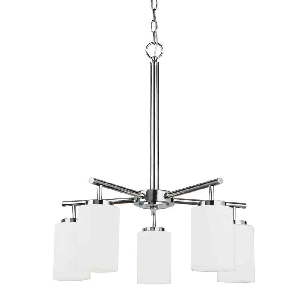 The Oslo lighting collection by Sea Gull Lighting is a sleek design, with smooth and clean lines. The Opal Etched glass adds to this collection's contemporary and minimalist character. Offered in Chrome, Brushed Nickel and textured Midnight Black finishes, the collection includes nine-, five-, and three-light chandeliers, pendants in four sizes, both flush and semi-flush ceiling fixtures, as well as one-, two-, three- and four-light wall/bath fixtures. Both incandescent lamping and ENERGY STAR-qualified LED lamping are available. All fixtures are California Title 24 compliant. Features