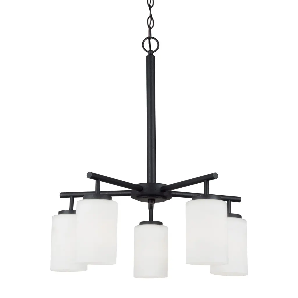 The Oslo lighting collection by Sea Gull Lighting is a sleek design, with smooth and clean lines. The Opal Etched glass adds to this collection's contemporary and minimalist character. Offered in Chrome, Brushed Nickel and textured Midnight Black finishes, the collection includes nine-, five-, and three-light chandeliers, pendants in four sizes, both flush and semi-flush ceiling fixtures, as well as one-, two-, three- and four-light wall/bath fixtures. Both incandescent lamping and ENERGY STAR-qualified LED lamping are available. All fixtures are California Title 24 compliant. Features