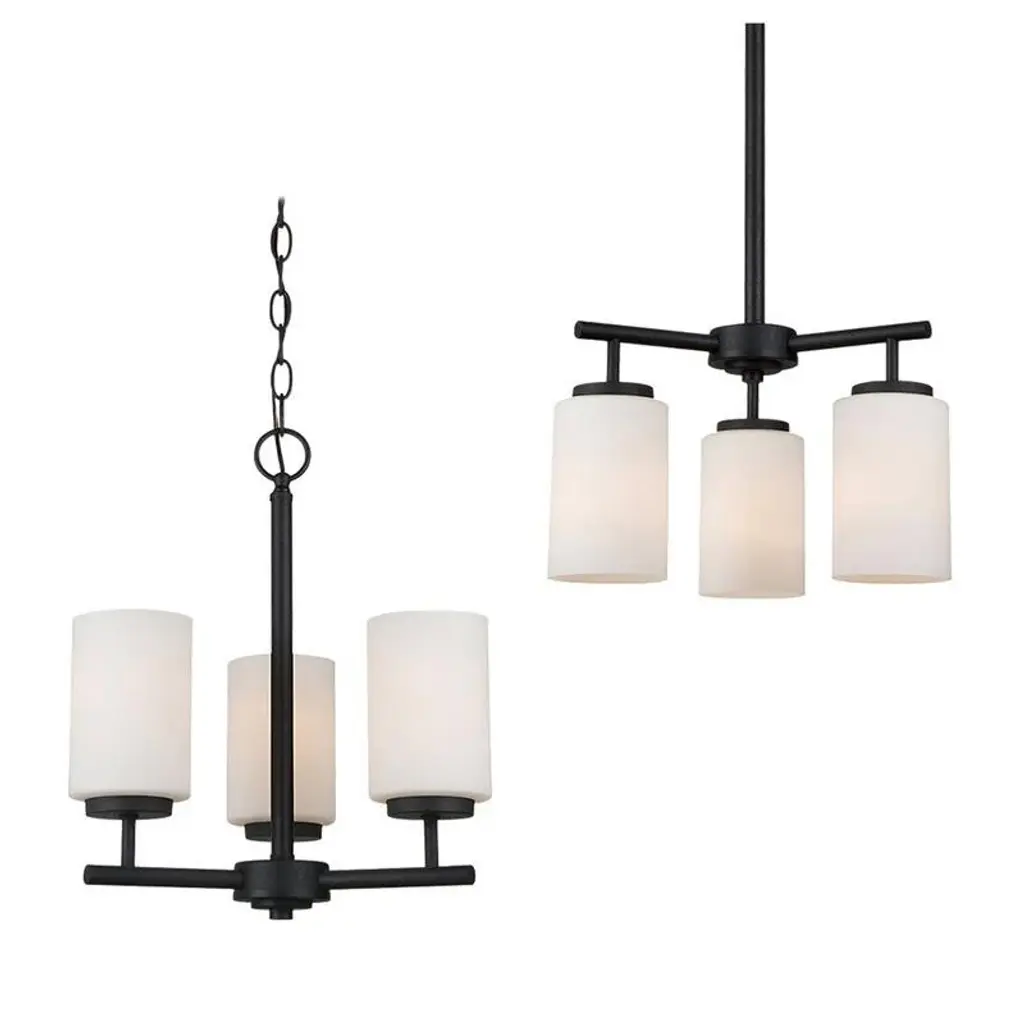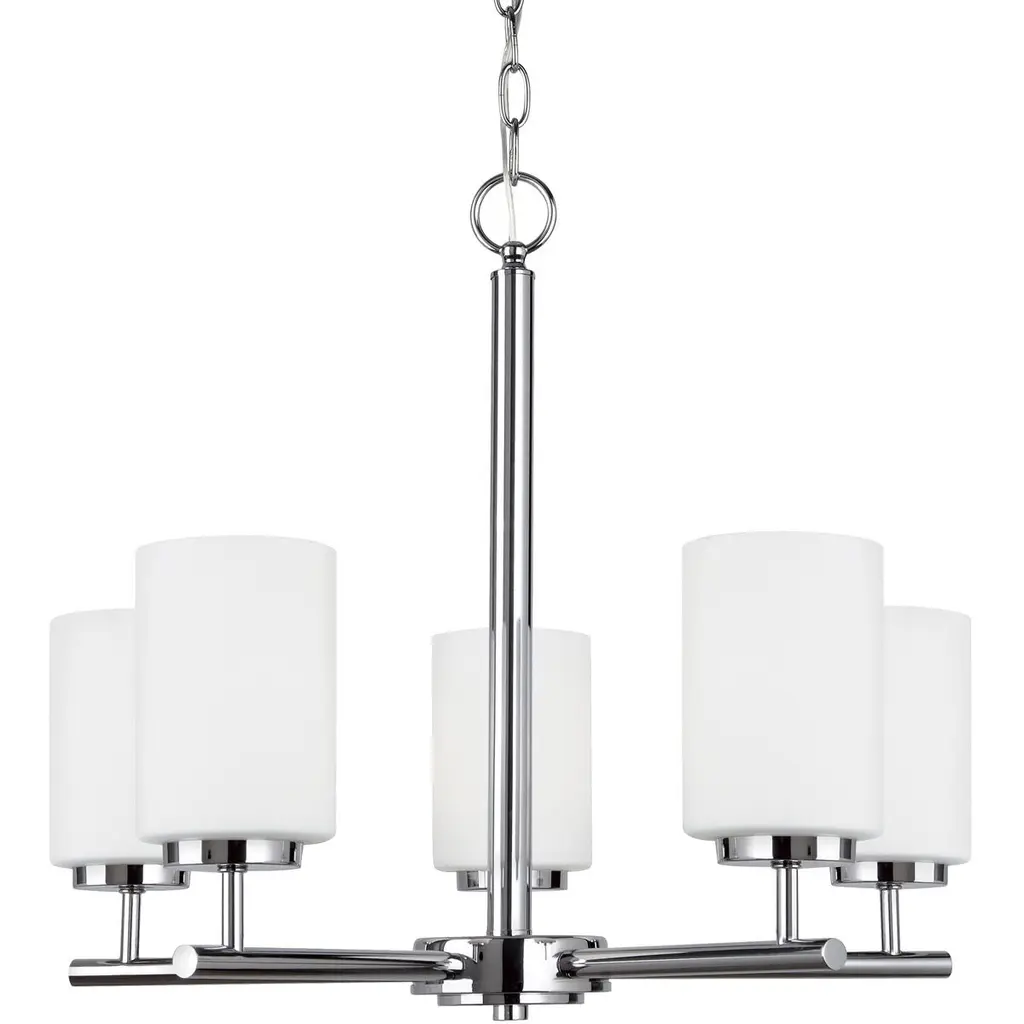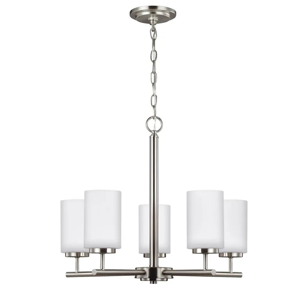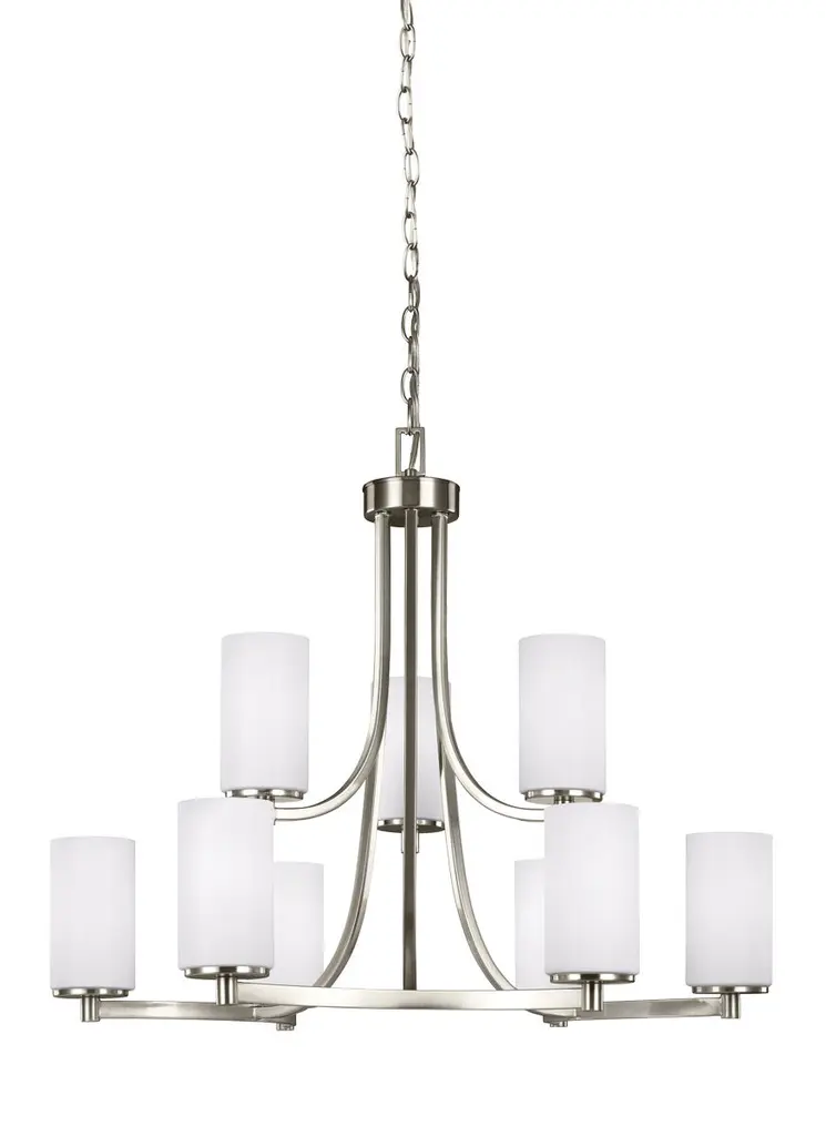 The Oslo lighting collection by Sea Gull Lighting is a sleek design, with smooth and clean lines. The Opal Etched glass adds to this collection's contemporary and minimalist character. Offered in Chrome, Brushed Nickel and textured Midnight Black finishes, the collection includes nine-, five-, and three-light chandeliers, pendants in four sizes, both flush and semi-flush ceiling fixtures, as well as one-, two-, three- and four-light wall/bath fixtures. Both incandescent lamping and ENERGY STAR-qualified LED lamping are available. All fixtures are California Title 24 compliant. Features