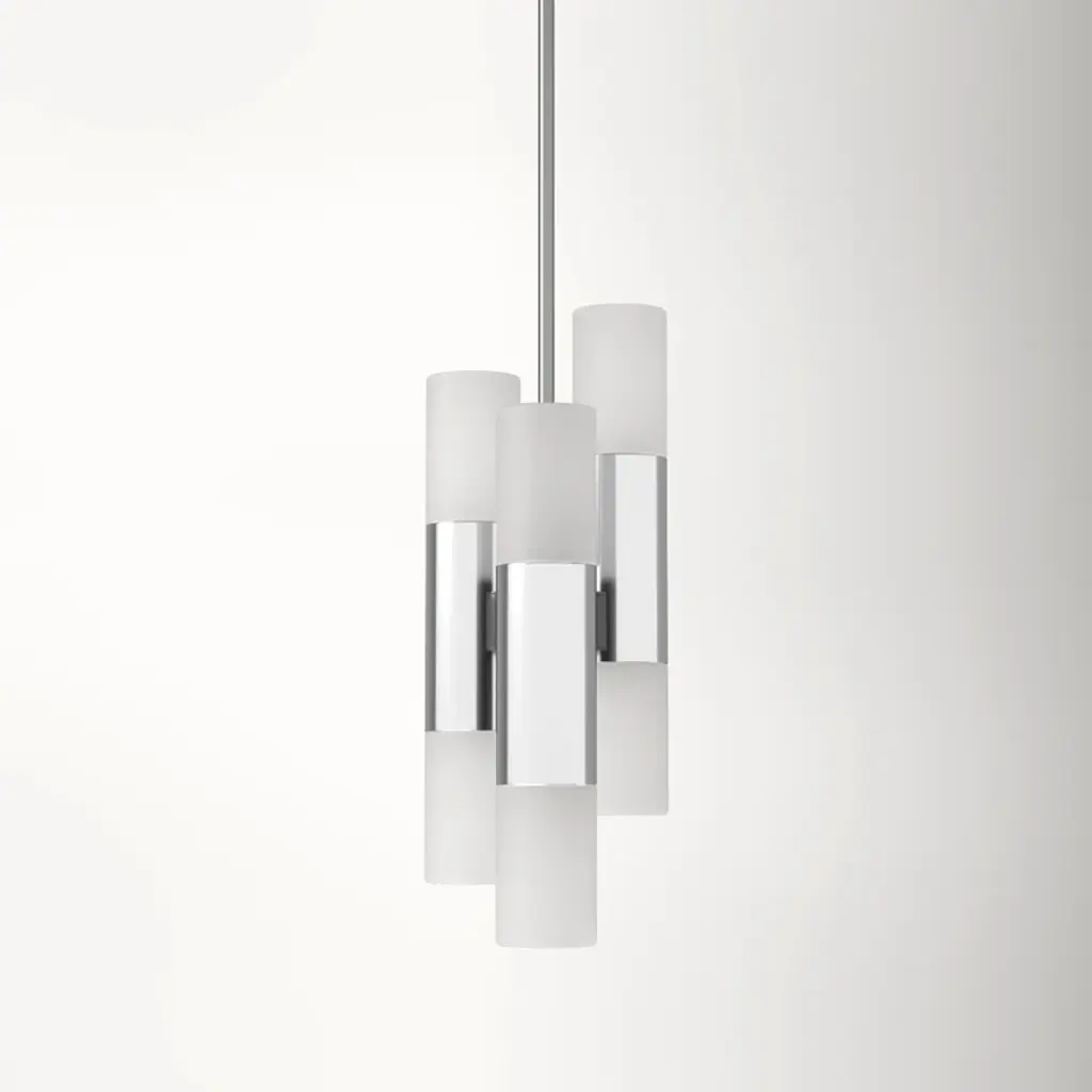 Illuminate your space with modern elegance. This statement cylinder chandelier features a unique design with a metal frame and frosted glass shades. With six adjustable lights, it provides ambient lighting in any room. The dimmable LED bulbs are included for added convenience. Upgrade your lighting game with this sleek and stylish fixture.