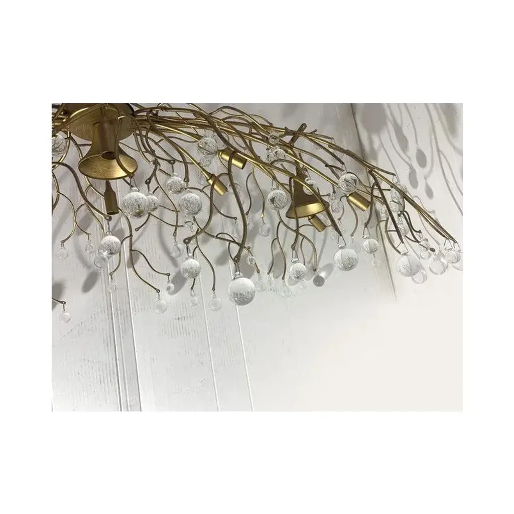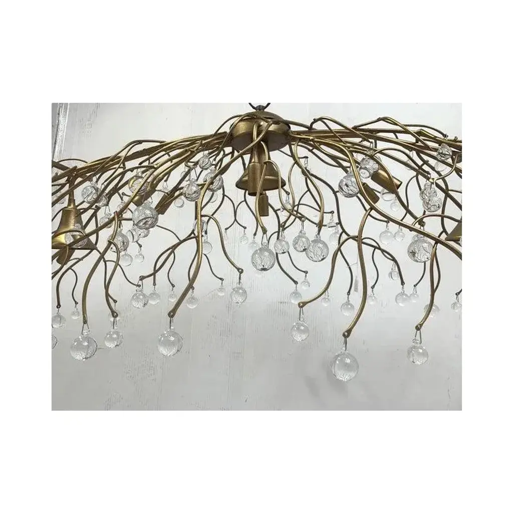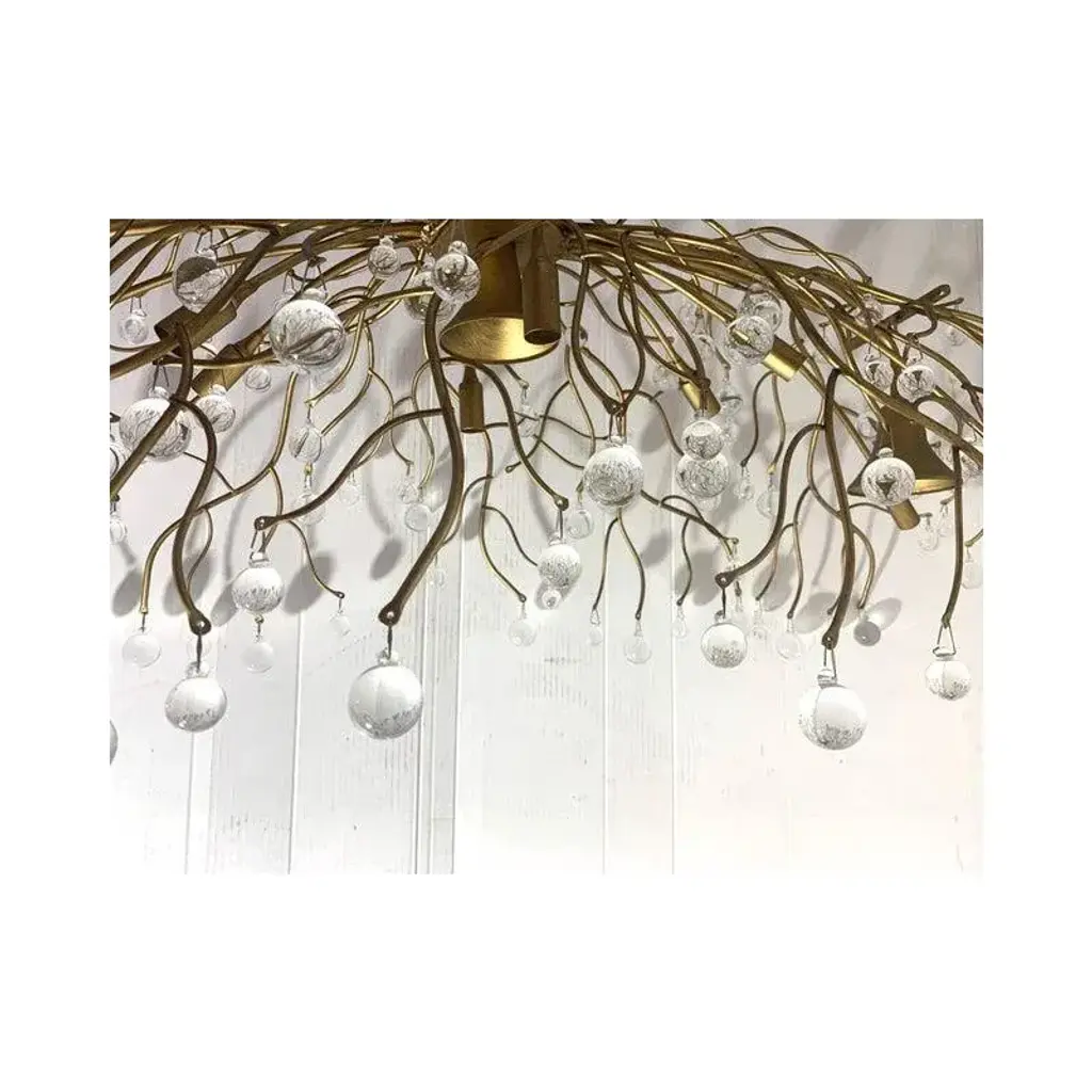 Brushed gold florentine wrought iron boughs chandelier florentine art gold metal wrought iron chandelier made in italy brushed gold hand-made italian very particolular finishing , impressive wrought iron florentine art made in italy entirely made in italy, fruit of high italian know-how,elegant and luxury piece of art. the beauty lies in the movement of the boughs and transparents cristal balls murano glass. dimensions (cm/in): oval l129 x 50 cm h 40 cm /l 51"x 19.6" h 15.7" chain 19.7″ more canopy 10 x g9 + 3 bulbs. up to 250v (europe/uk standard).