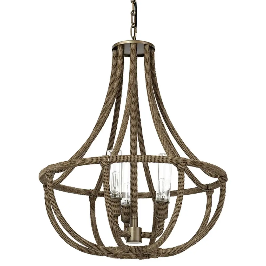Transform your dining area into a warm and inviting retreat with the Padma 5 Light Chandelier. This rustic-inspired fixture features a geometric pendant design with a natural hemp rope frame, adding a touch of organic charm to any room. The black candelabra base holds four candelabra bulbs, casting a soft, ambient glow for a cozy atmosphere. Measuring 21 inches wide, this chandelier blends rugged elegance with earthy textures, perfect for farmhouse, bohemian, or modern rustic decor. Whether hung over your dining table, kitchen island, or entryway, the Padma chandelier brings natural beauty and warmth to your home.