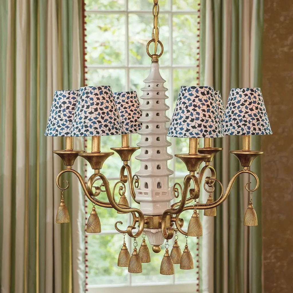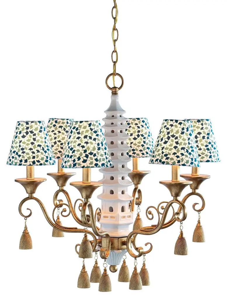 Pagoda 6-light Chandelier, Gold/white