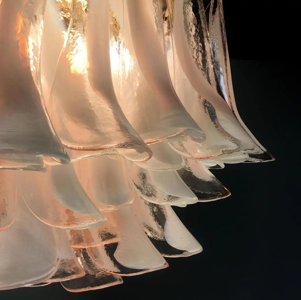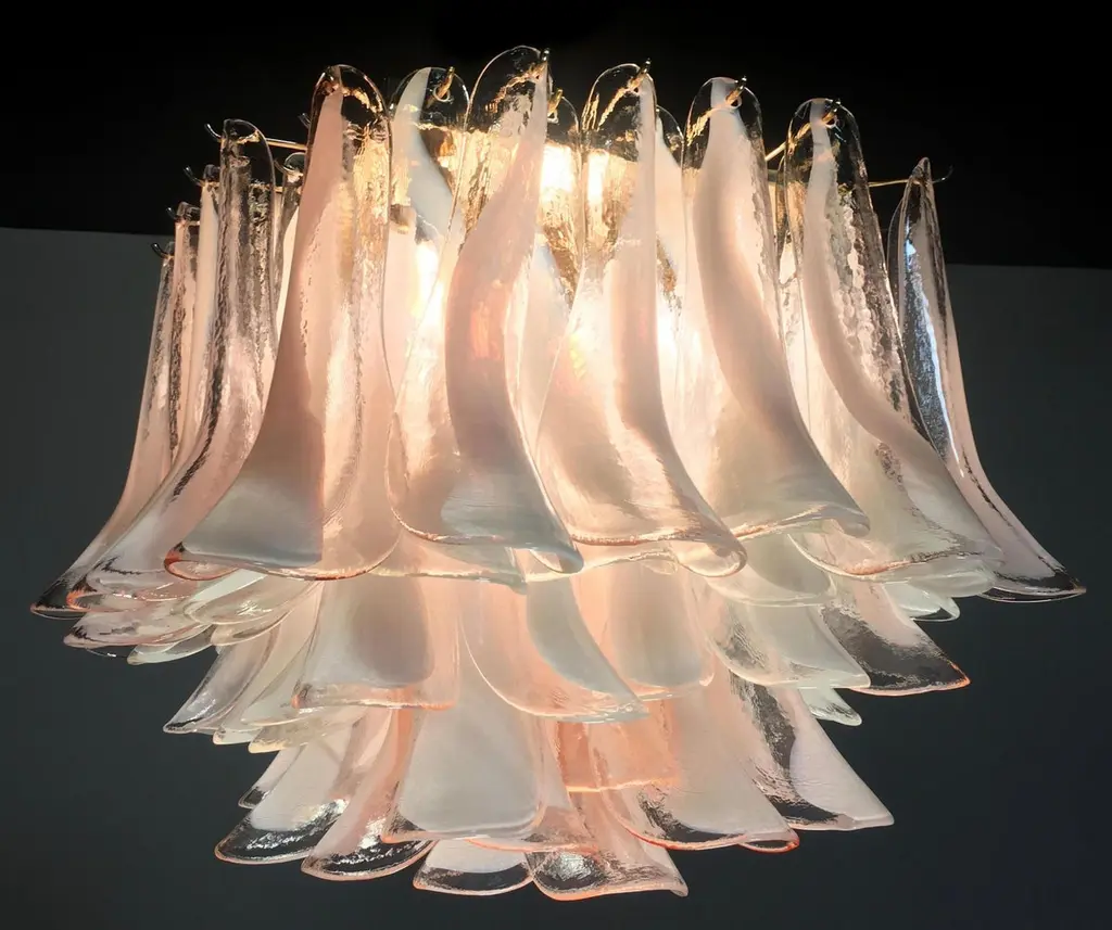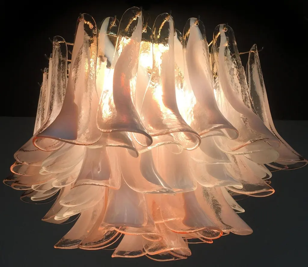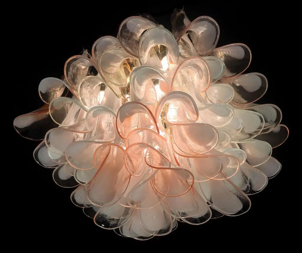 Pair Italian Petals Chandeliers Ceiling Lights, Murano
