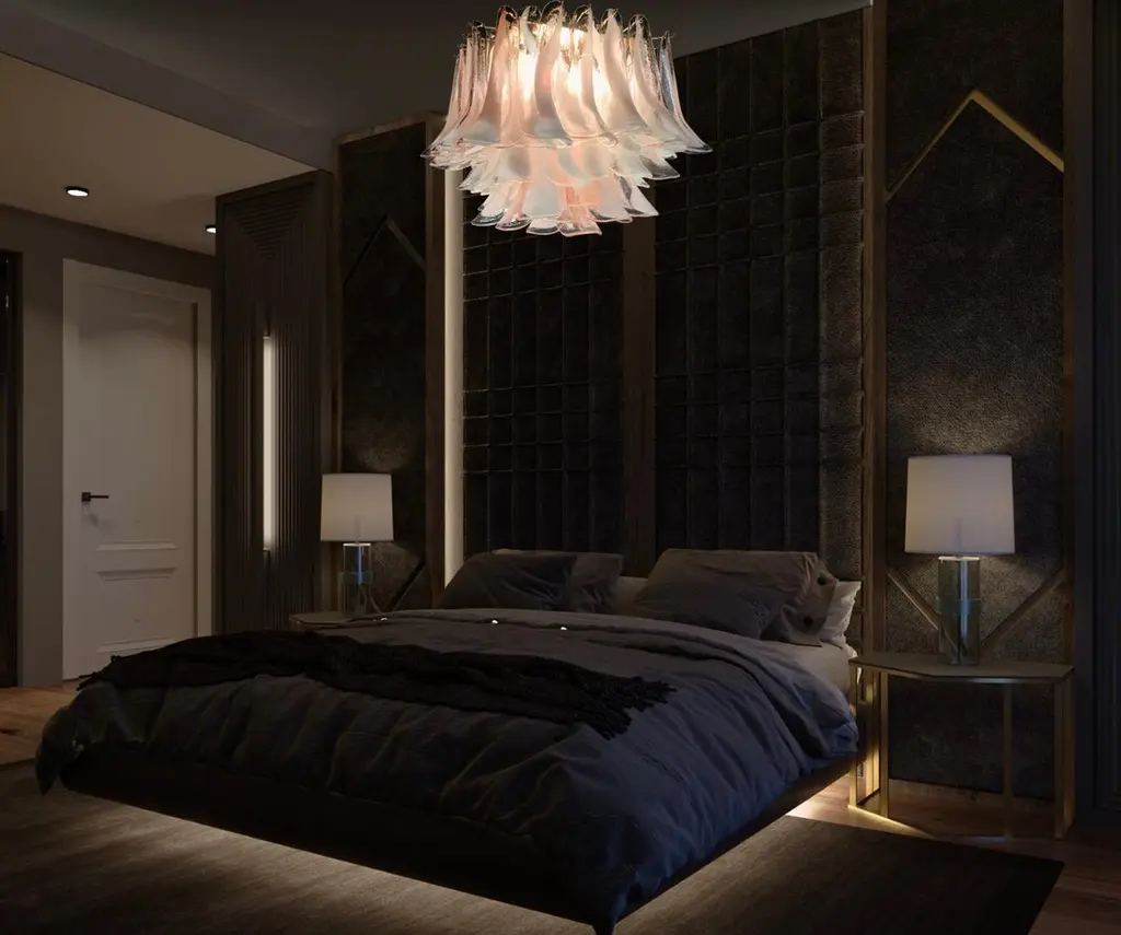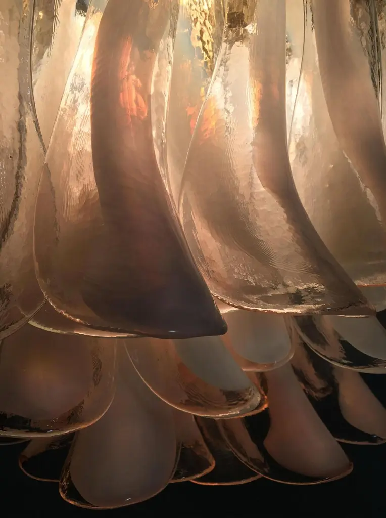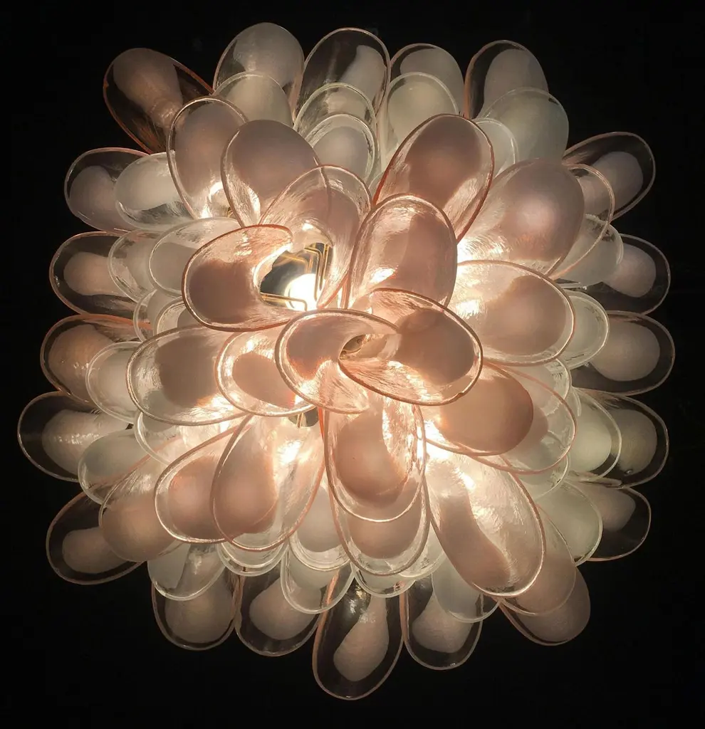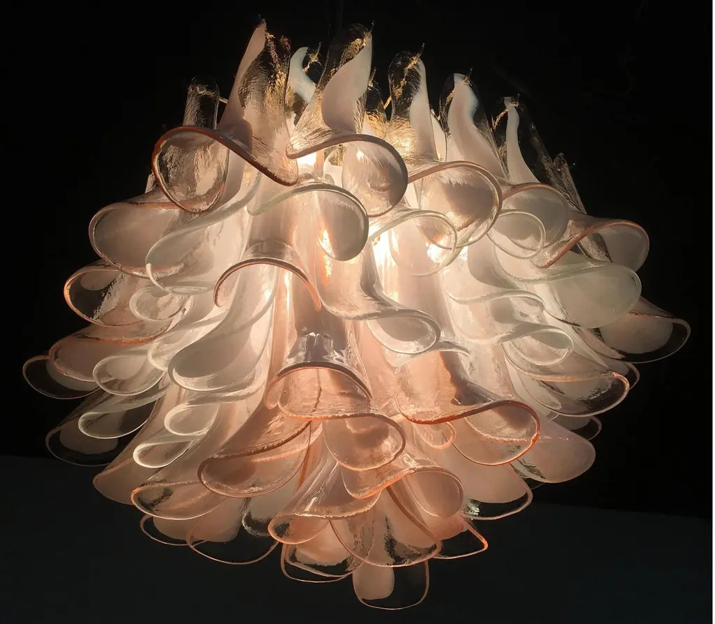 Pair Italian Petals Chandeliers Ceiling Lights, Murano