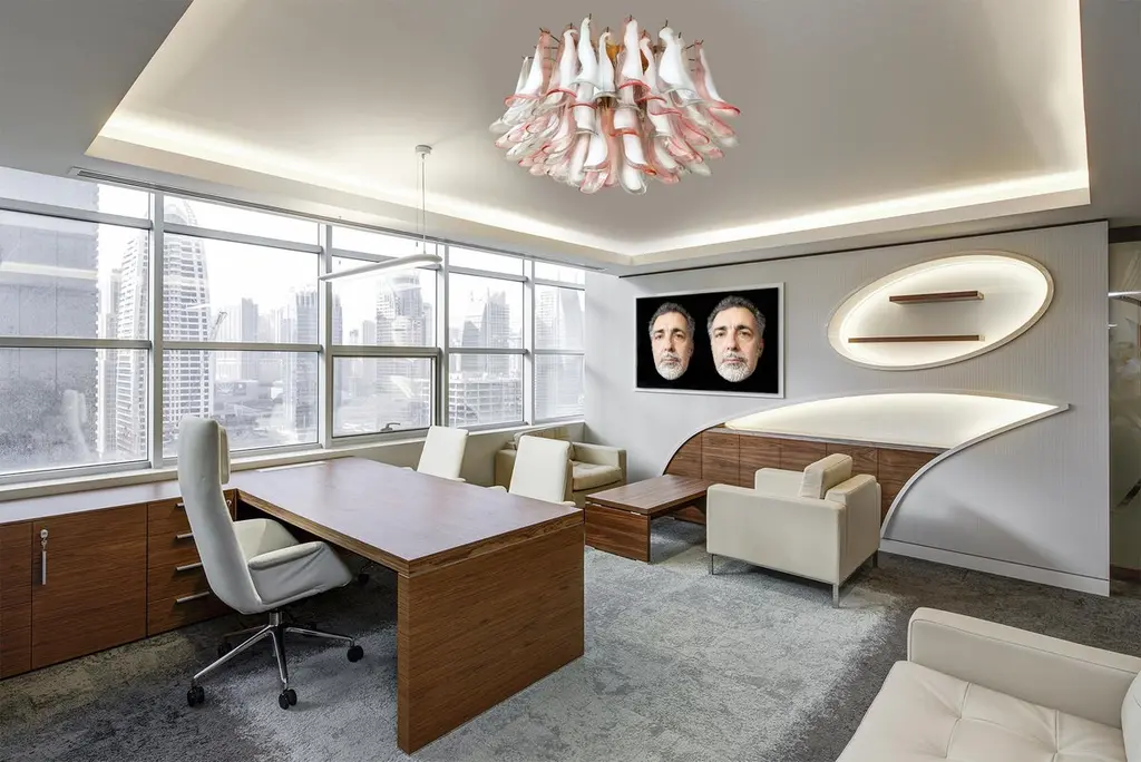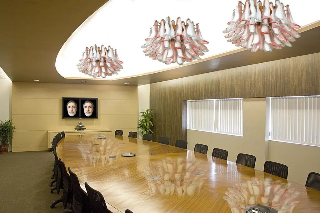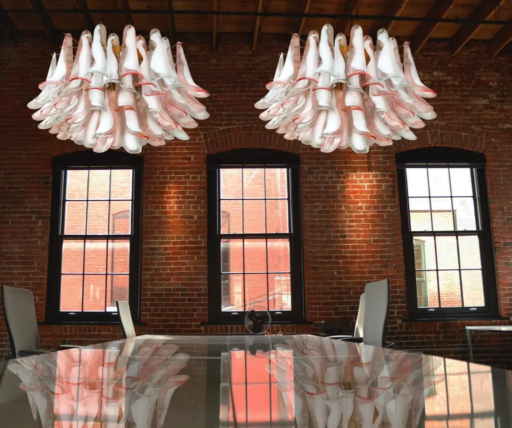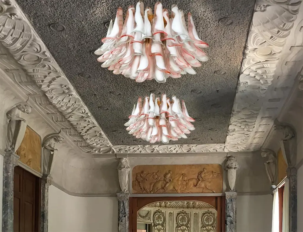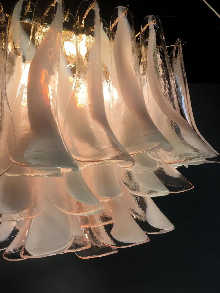 Pair Of Italian 64 Petals Chandeliers Ceiling Light, Murano