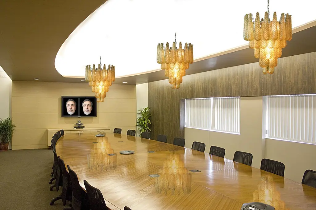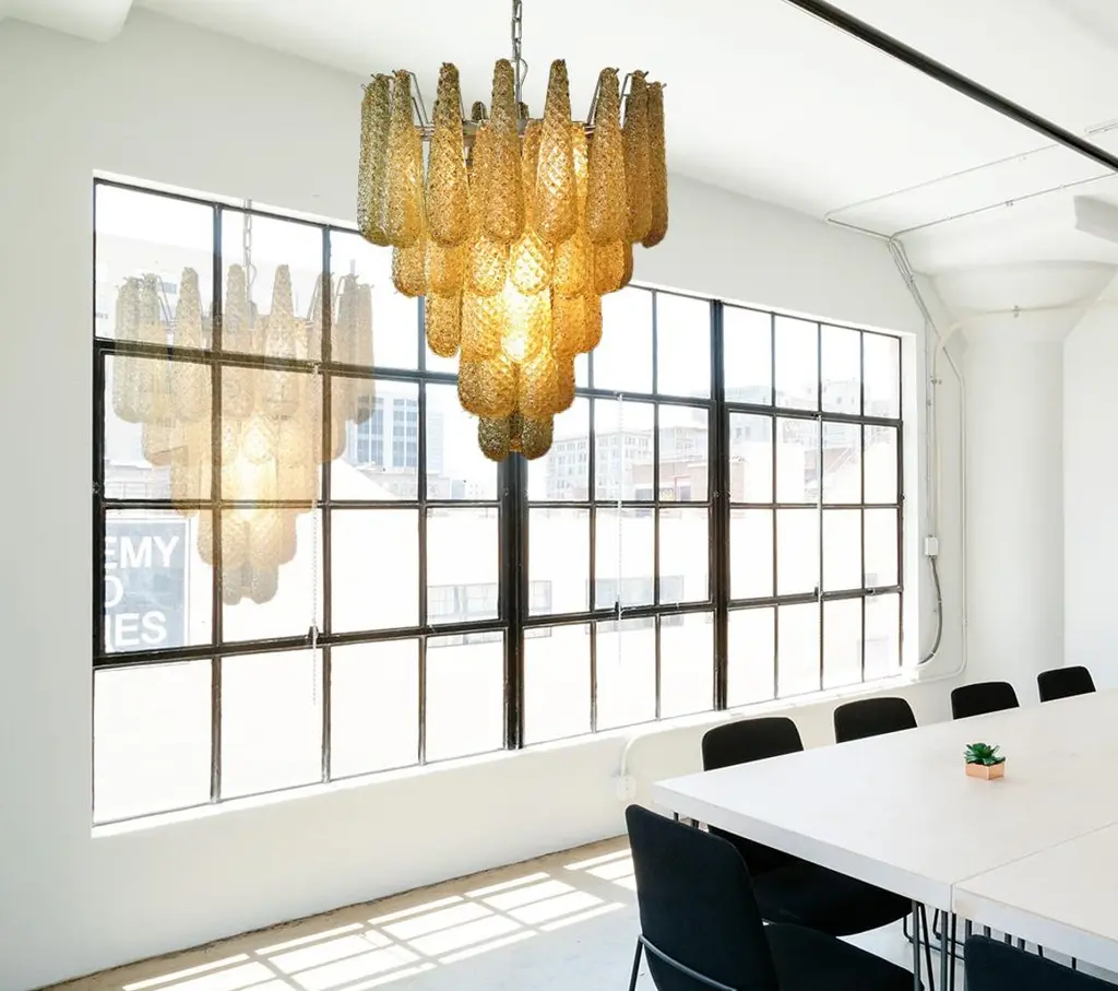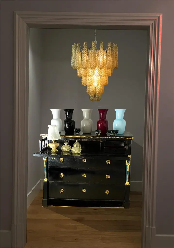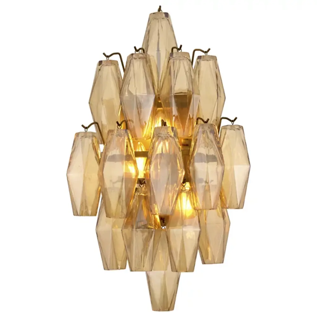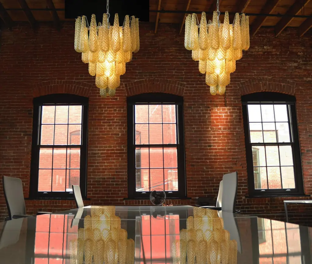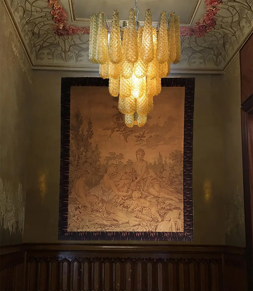 Pair Of Italian Amber Crystal Chandelier, Murano