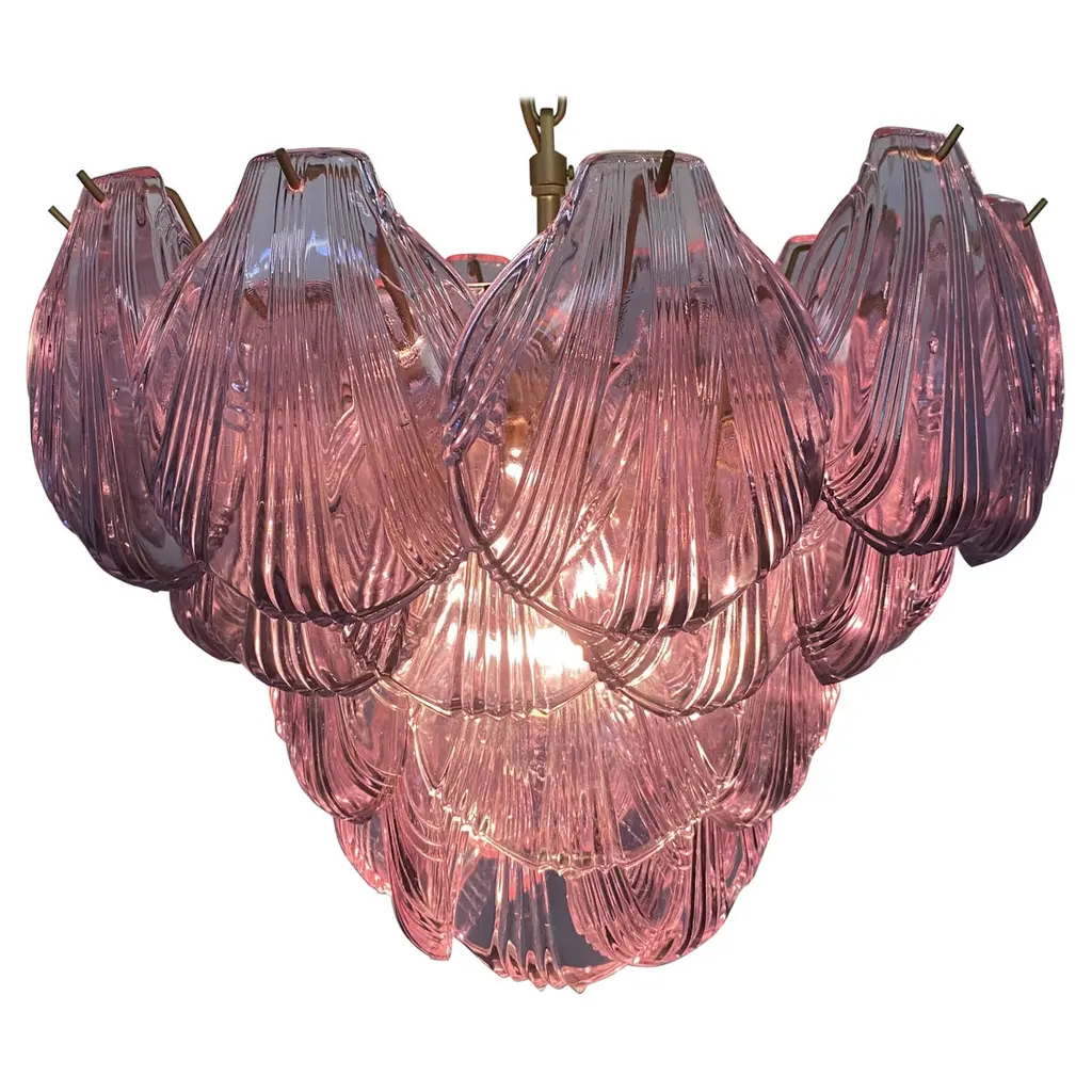 Pair Of Italian Pink Shell Chandeliers, Murano