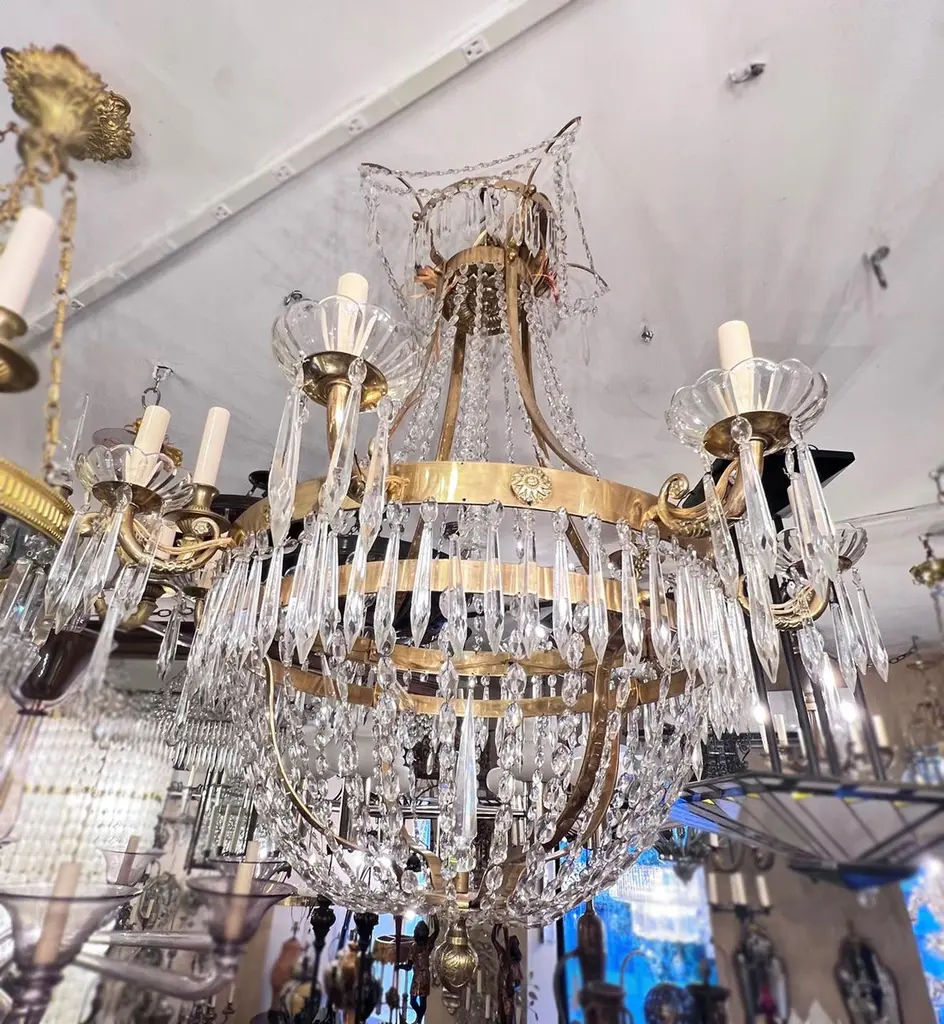 Pair Of Neoclassic Gilt Swedish Chandeliers, Sold Individually