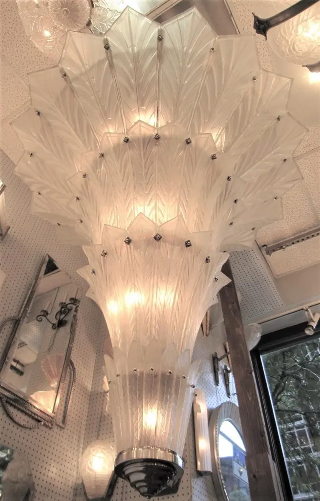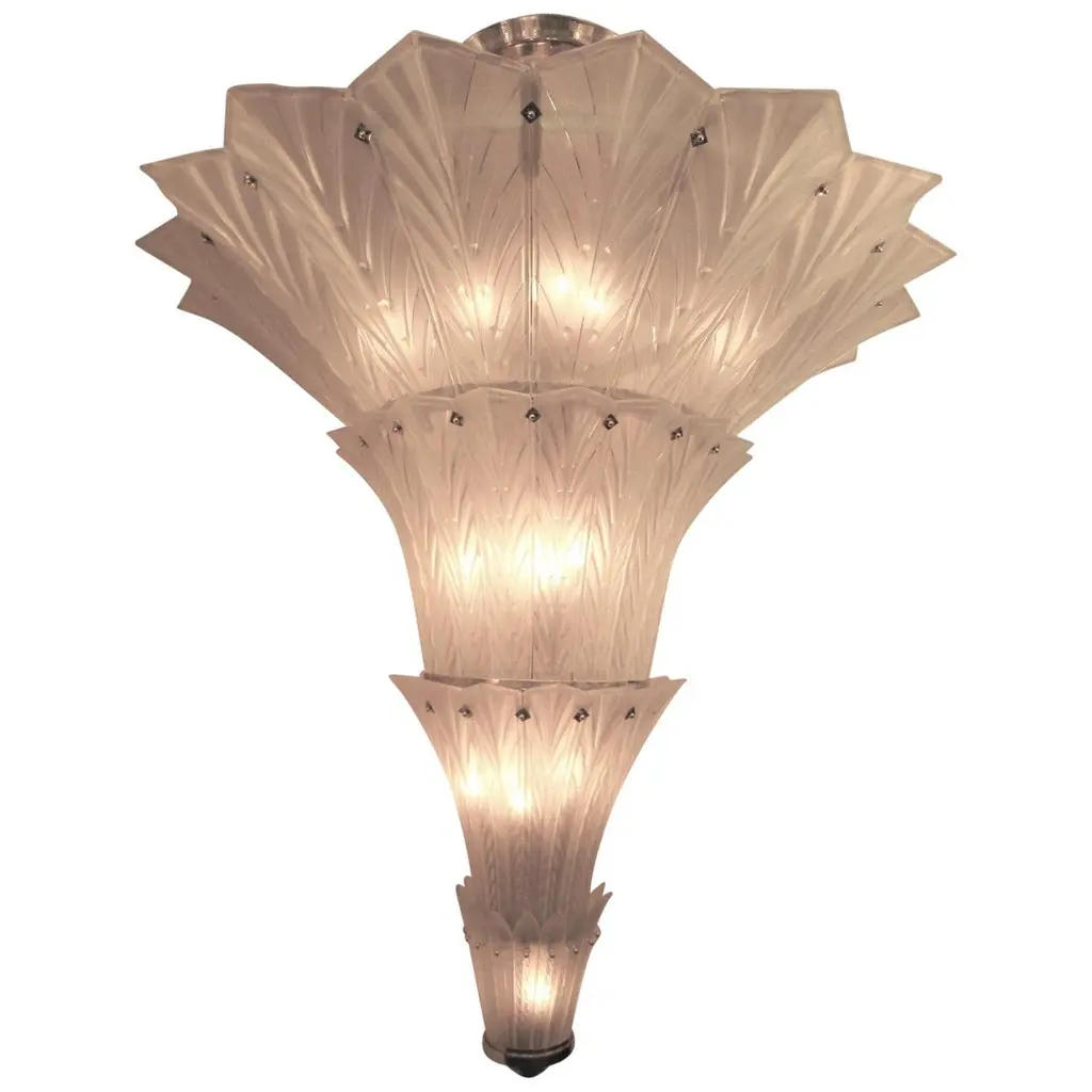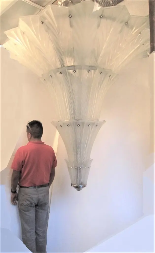 Palatial, Gigantic French Art Deco Art Glass Chandelier By Sabino
