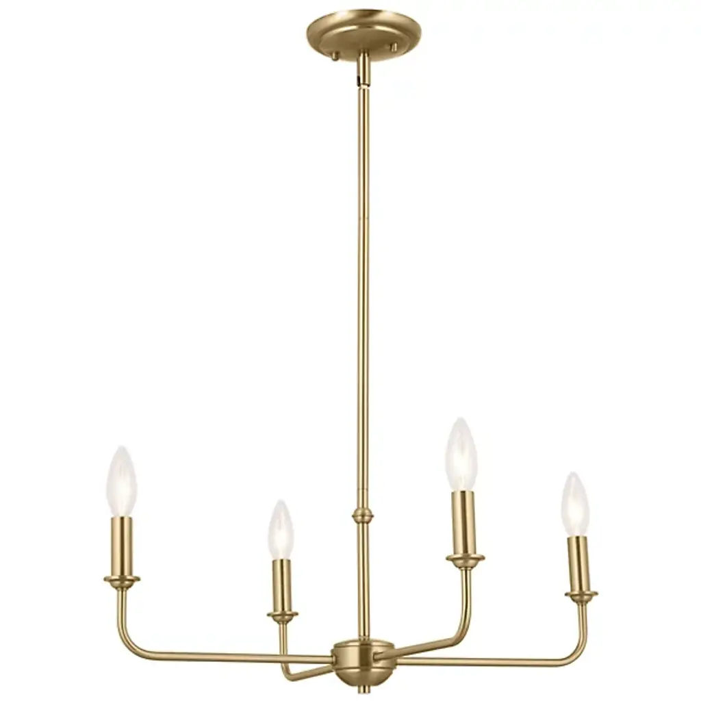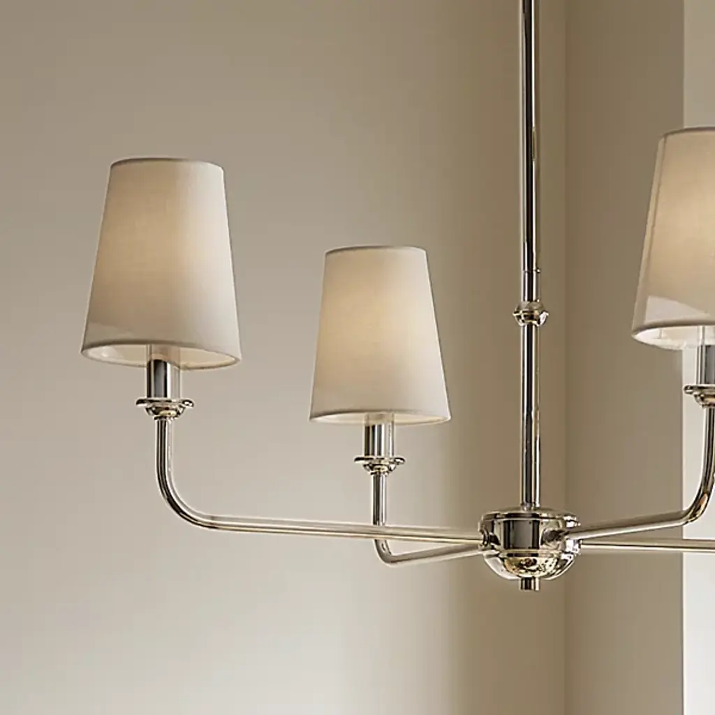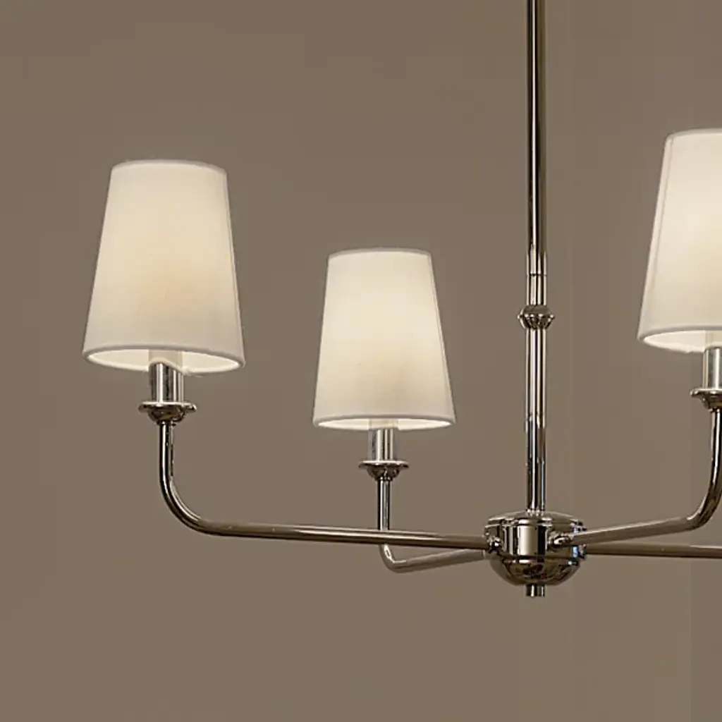 Give your decorative arrangement a transitional sense of style with the Pallas Mini Chandelier by Kichler. Designed with the quintessential pedestal-like features of the Pallas family, this mini chandelier brings light to your intimate living spaces. A slender downrod suspends in midair through attachment to a ceiling canopy. From a centralized base, a number of arms upwardly turn to unite with cylindrical shades of white fabric. Onto these arms are fixed LED bulbs that emit brilliant light that illuminates your surroundings with ease.