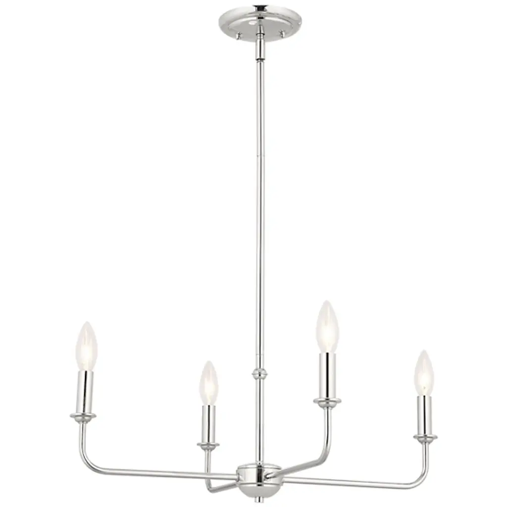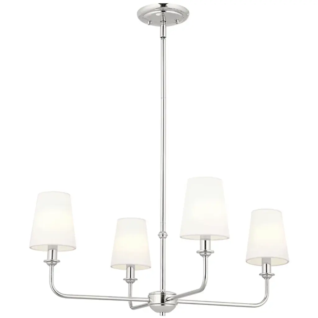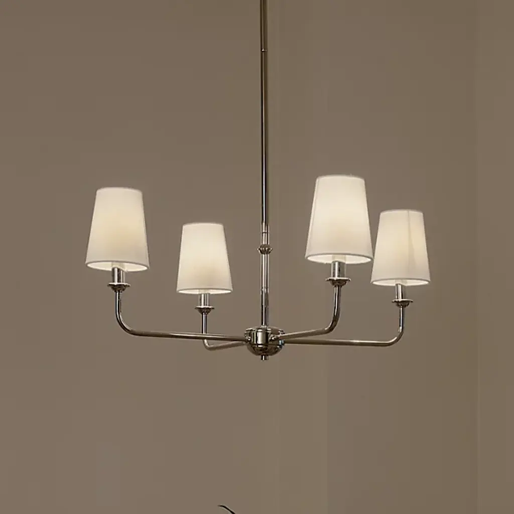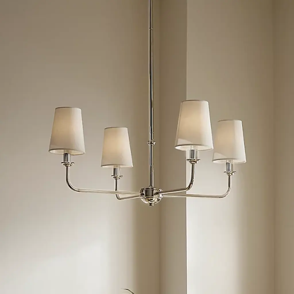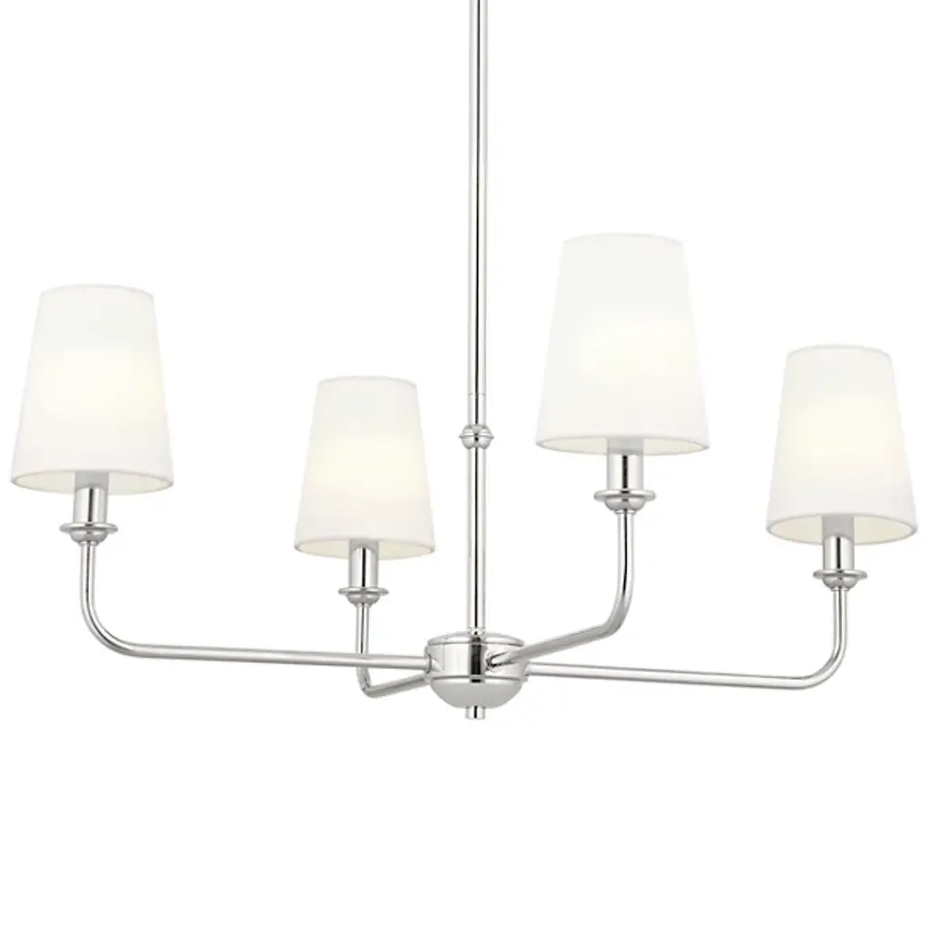 Give your decorative arrangement a transitional sense of style with the Pallas Mini Chandelier by Kichler. Designed with the quintessential pedestal-like features of the Pallas family, this mini chandelier brings light to your intimate living spaces. A slender downrod suspends in midair through attachment to a ceiling canopy. From a centralized base, a number of arms upwardly turn to unite with cylindrical shades of white fabric. Onto these arms are fixed LED bulbs that emit brilliant light that illuminates your surroundings with ease.
