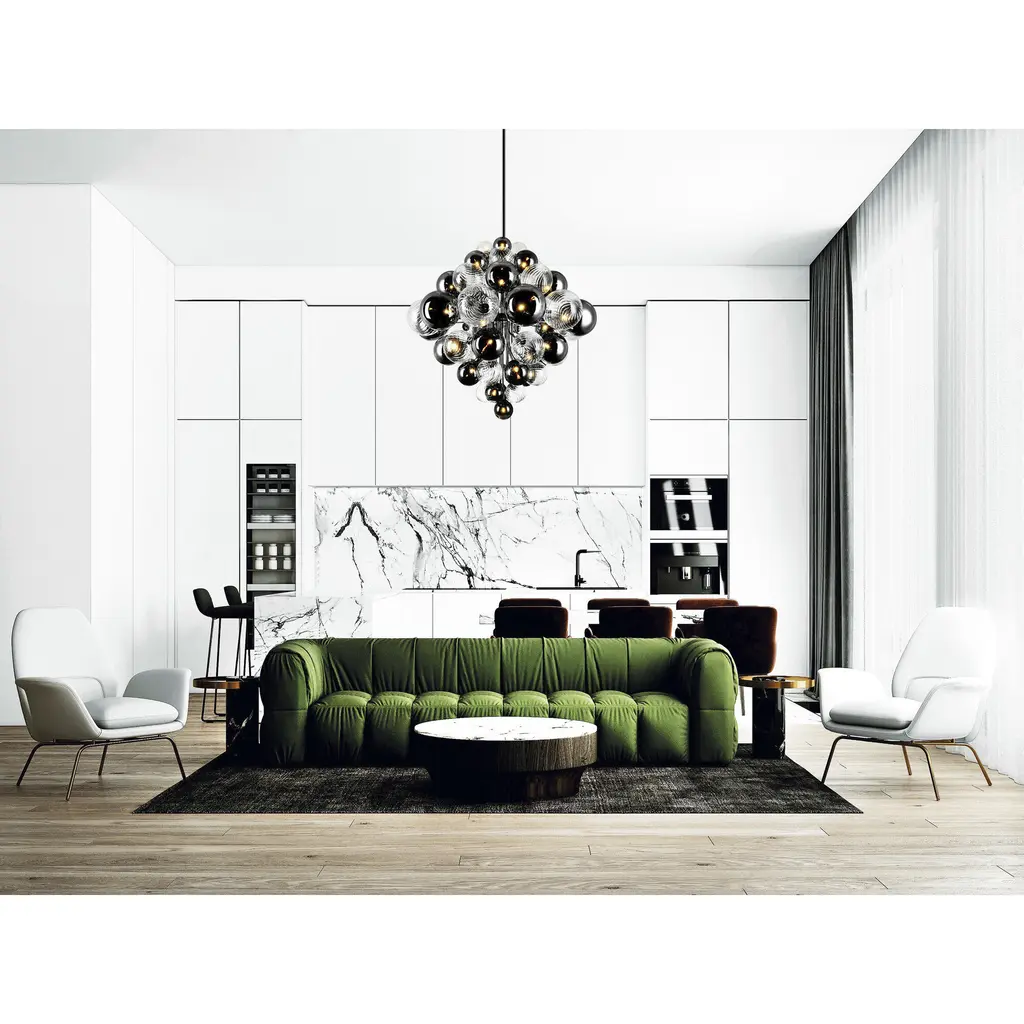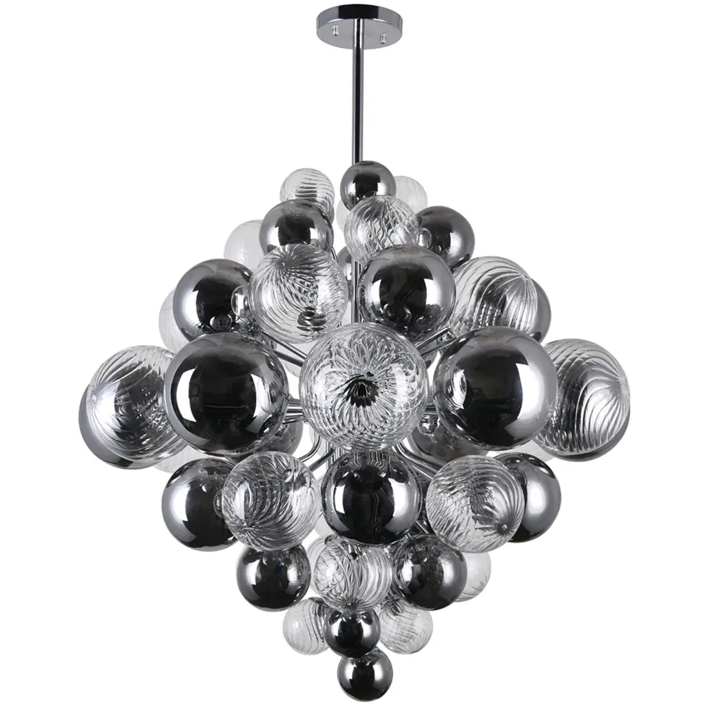 Upgrade your home lighting with the Pallocino 27 Light Down Chandelier, featuring a sleek chrome finish and a stunning cluster of tinted glass globes. This eye-catching fixture brings a bold, modern touch to any living spaceperfect for creating a dramatic focal point in dining rooms, living areas, or entryways. Measuring 36 inches in diameter and equipped with an adjustable downrod, its designed for both style and flexibility to suit your ceiling height.
