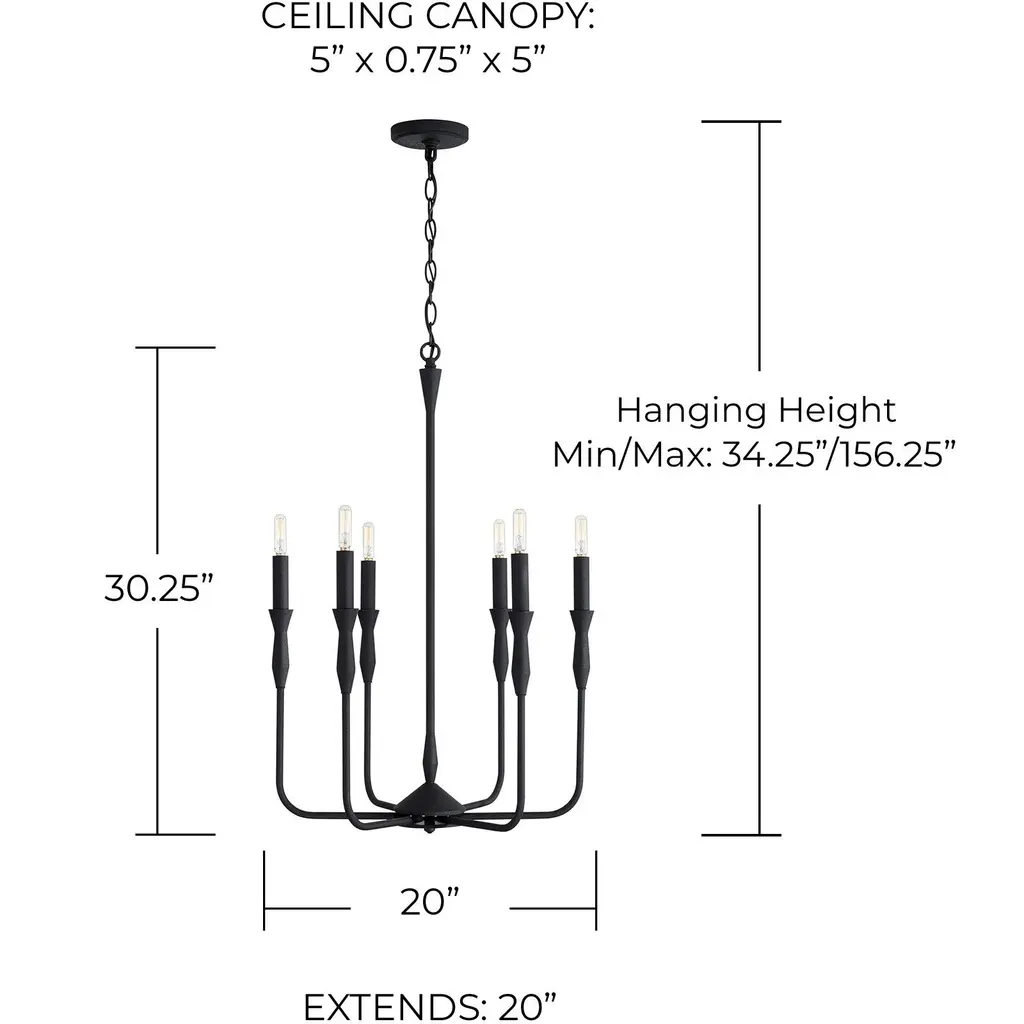 Paloma 6 Light 20 Inch Textured Black Chandelier Ceiling Light