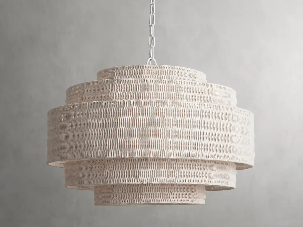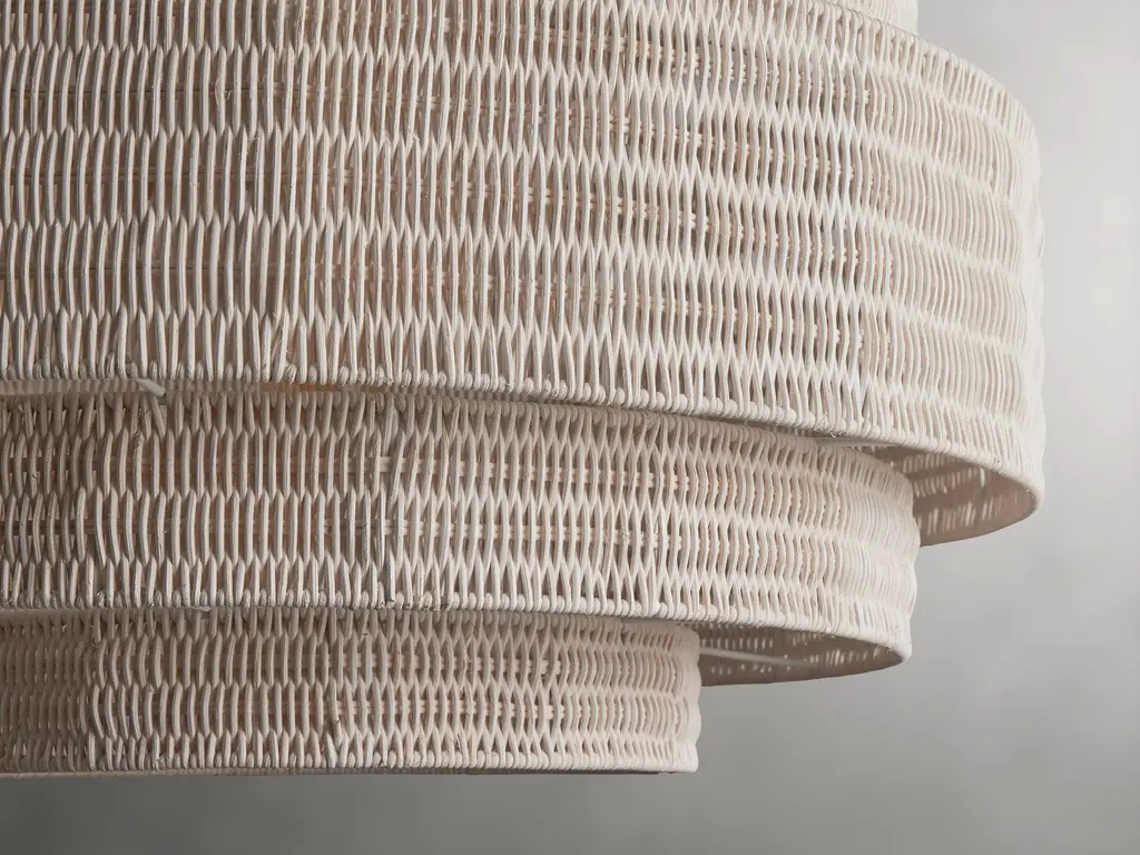 The tiered, handwoven rattan shade of our Paloma Lighting Collection enhances any living or dining space with a touch of organic texture.