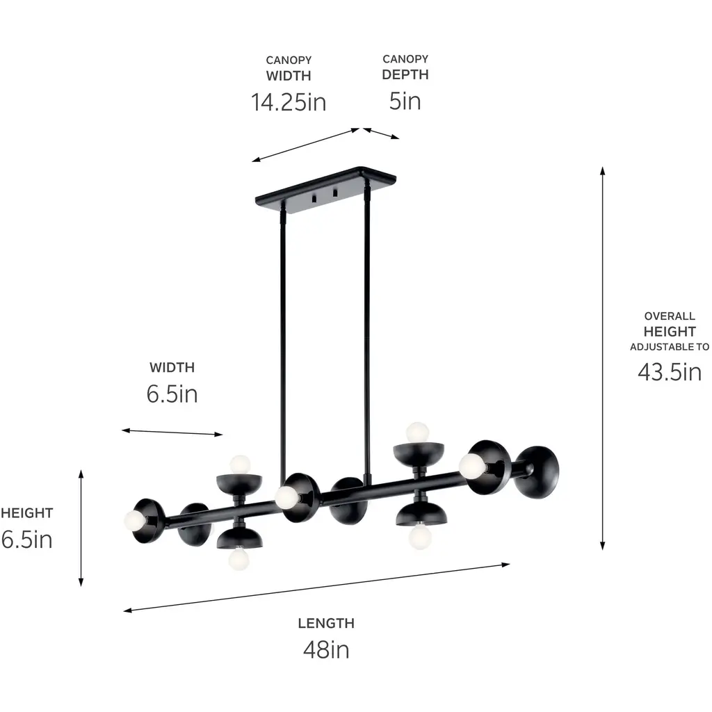 Palta 48 Inch 10 Light Linear Chandelier in Black