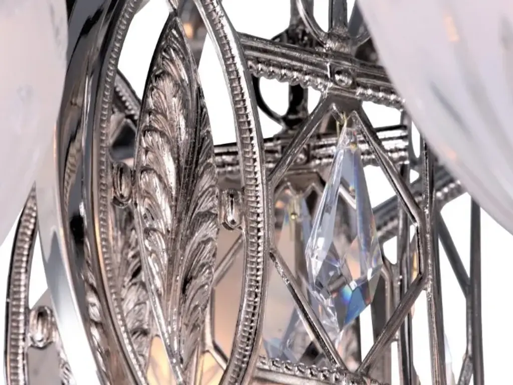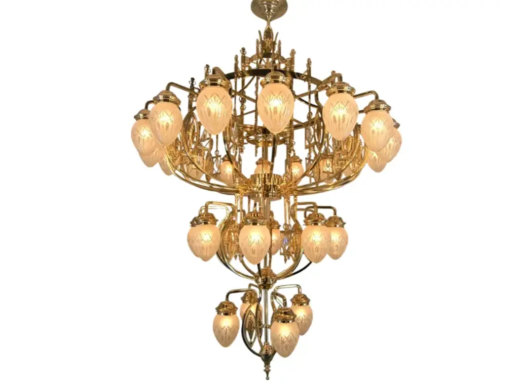 Pannon 7 is a 7-arm chandelier made of brass available in different finishes.Finishes: Antique, Shiny brass, Matt brass, Shiny nickel, Matt nickelCapacity : 7x75 W E27Due to their lightweight bodies, the lamps of this collection are a perfect solution for those looking for richness, opulence and lightness in one lamp. The chandeliers are all fitted with conical or egg-shaped carved shades. The chandeliers and the matching wall light are adorned with simple leaf motives, while the pendant gets as minimalistic as possible.