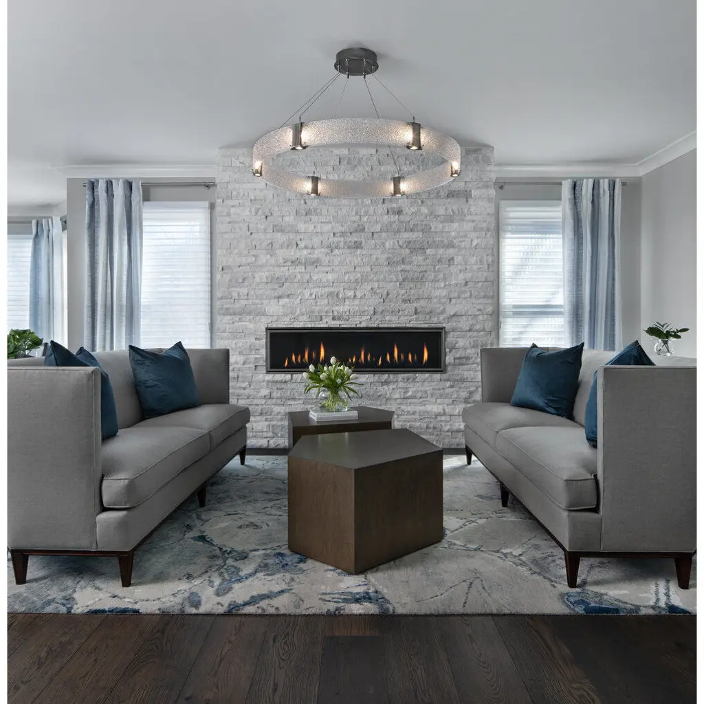Parallel Ring Chandelier-24-Burnished Bronze-Granite Glass - Smoke-Stainless Steel Cable-LED