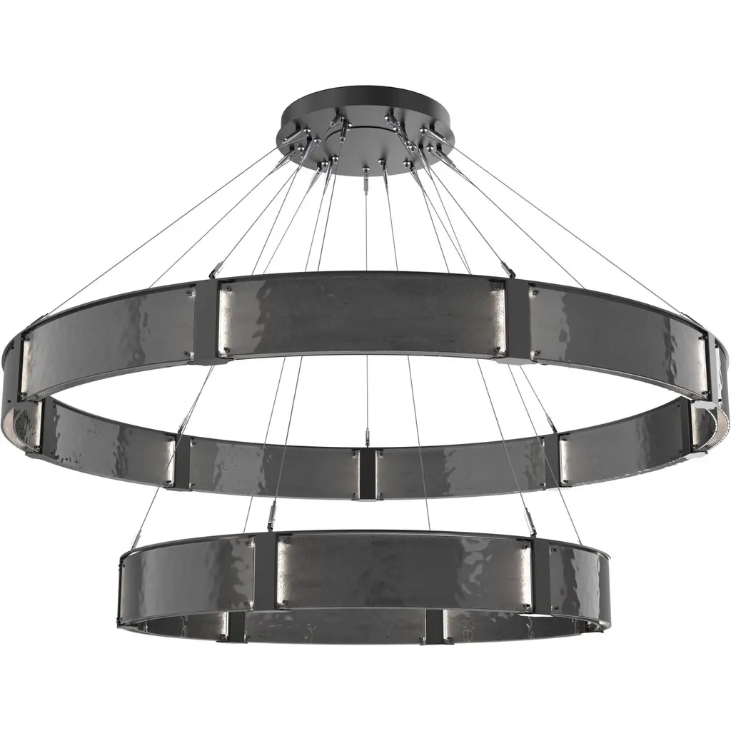 Parallel Ring Chandelier-72-Matte Black-Granite Glass - Smoke-Stainless Steel Cable-LED