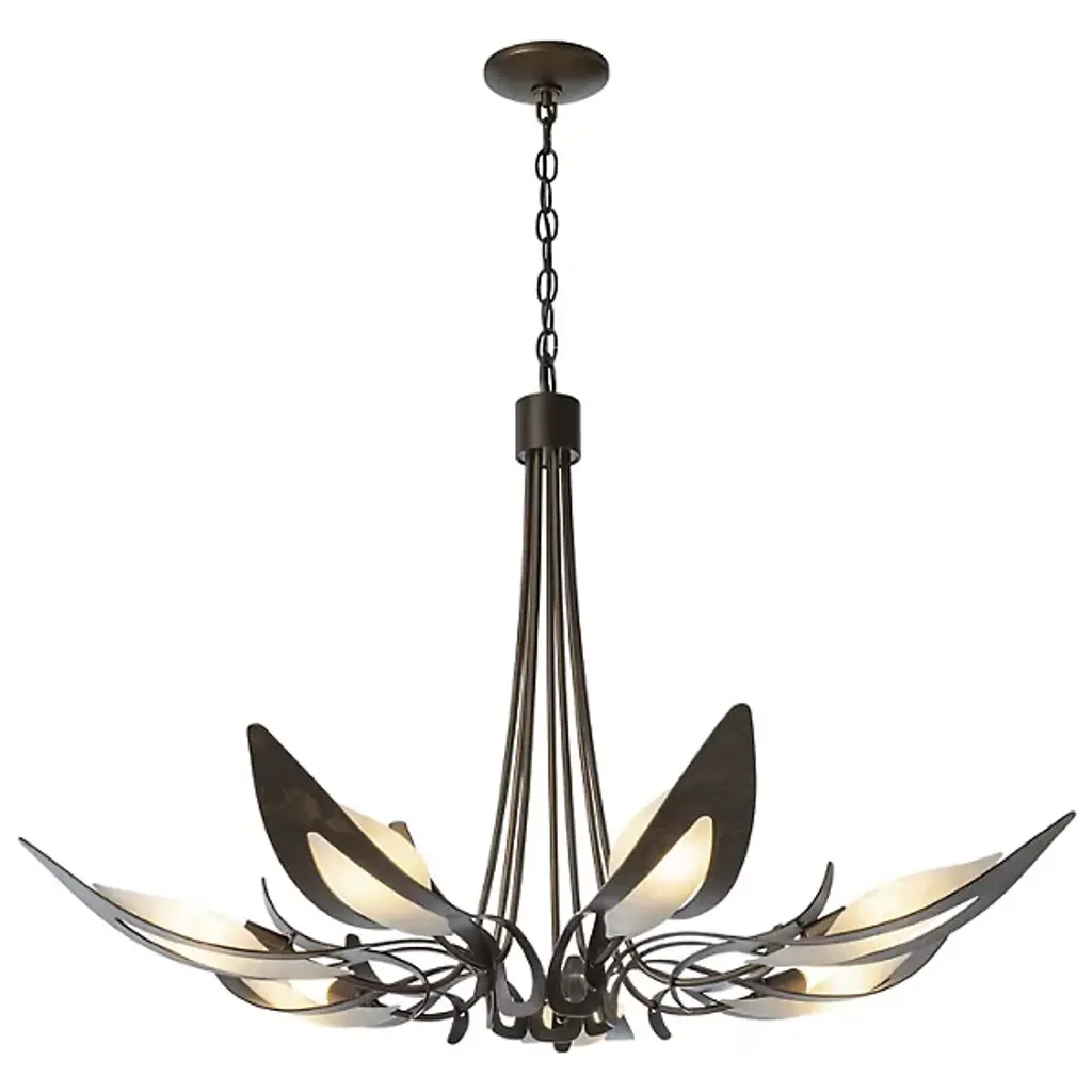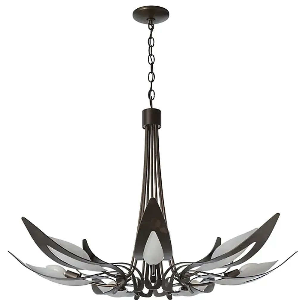 The Parasol Chandelier by Hubbardton Forge is an elegant piece that exudes sophistication in any room. This lovely fixture is meticulously handcrafted in Vermont, showcasing the craftsmanship and beauty of finely worked steel and glass. The globe/circle shape and teardrop shades create a captivating combination that adds a touch of charm and grace to your living or dining area. Ideal for both commercial and residential spaces, this chandelier marries form and function seamlessly.