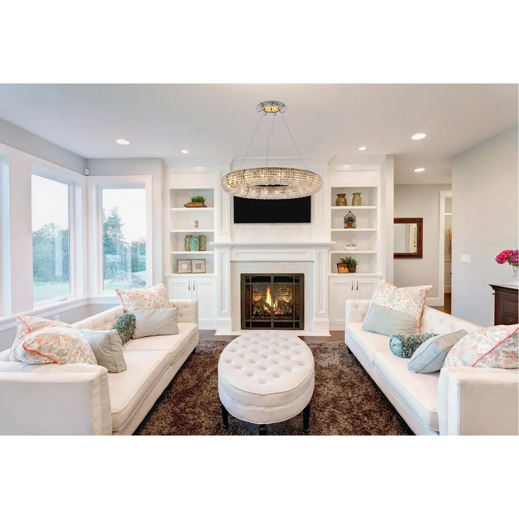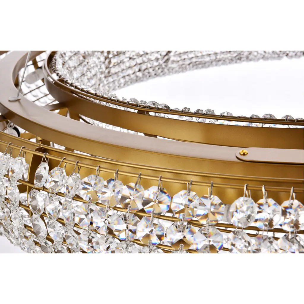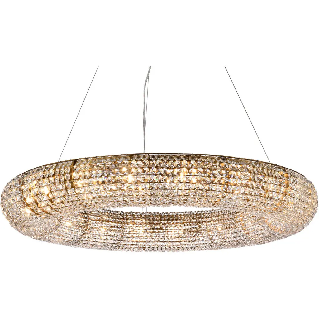 The magnificent chandeliers of the Paris collection live up to their namesake’s title as the “City of Light.” The gold finish fixtures exude glamour with a sparkling circle of clear, royal-cut octagon crystals highlighted by 18 interior lights (not included). Topping off the extravagance is a crystal halo dressing the canopy that replicates the fixture. Create your own enlightened era in your home with this contemporary chandelier that comes fully assembled. It will provide all-around light for your dining room, living room, bedroom, bathroom, or entryway.