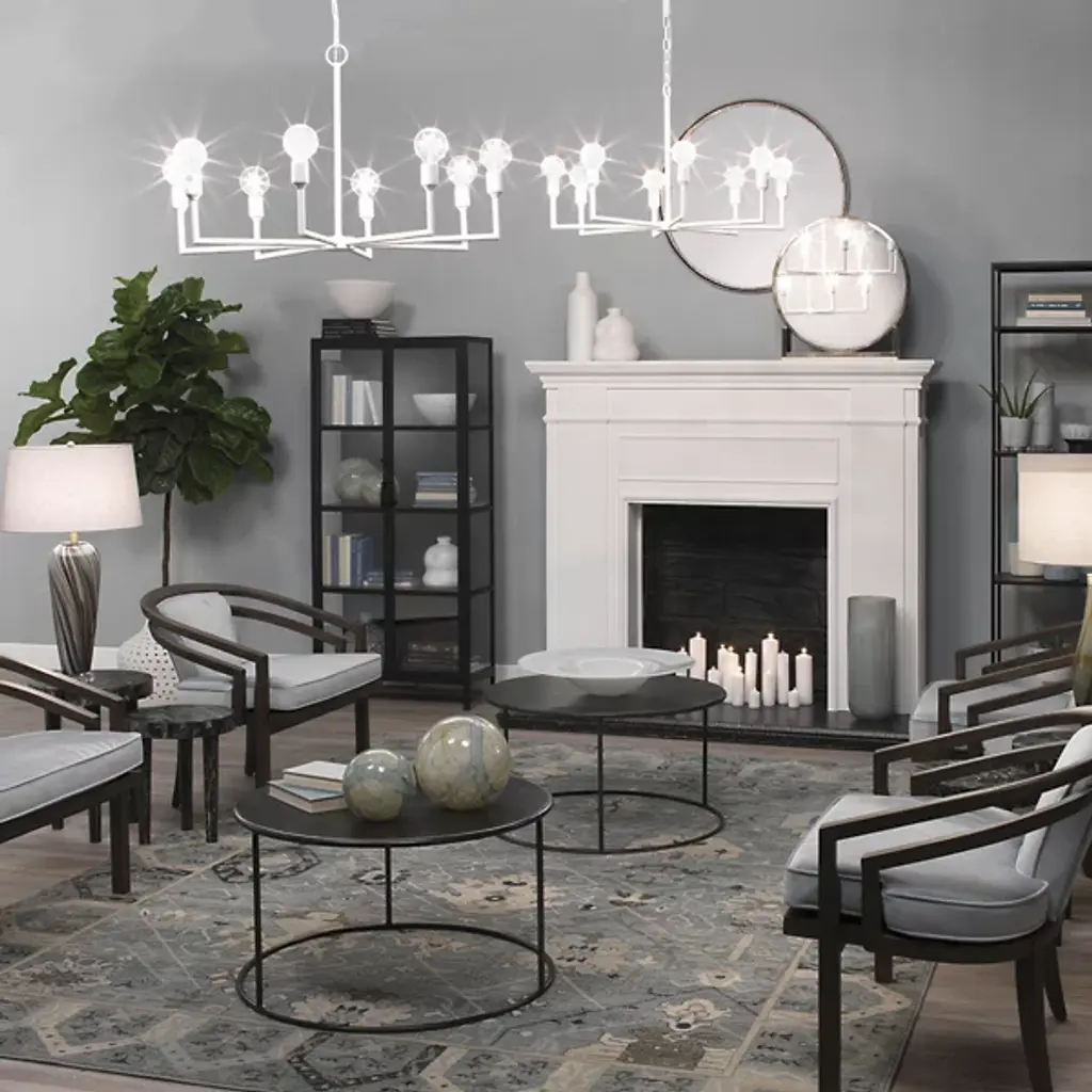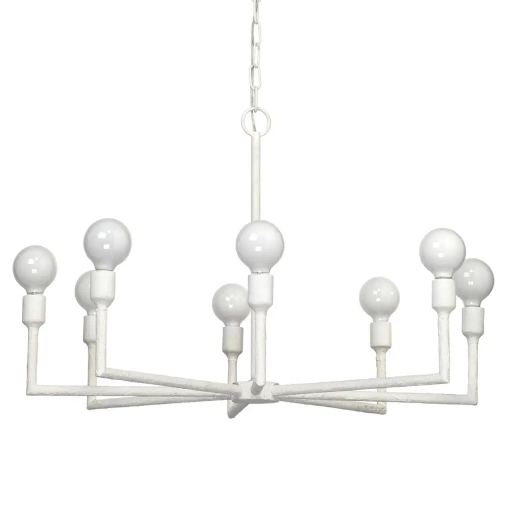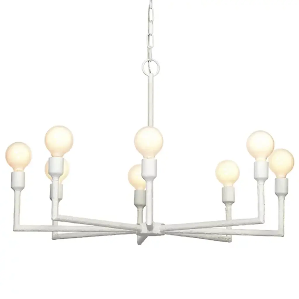 A charming piece underlined by an artistic touch. Let the crisp, modern lines and sculptural texture of the Park Chandelier from Jamie Young Co. act as a stylish focal point to your living or dining room spaces. A metal framework of radiating arms is layered with plaster and gesso, producing a coarse texture that makes its silhouette pop. The bare bulb design creates a pleasant visual of angular contours and charming globe forms. The piece produces a neat glow that beautifully glazes over a room.