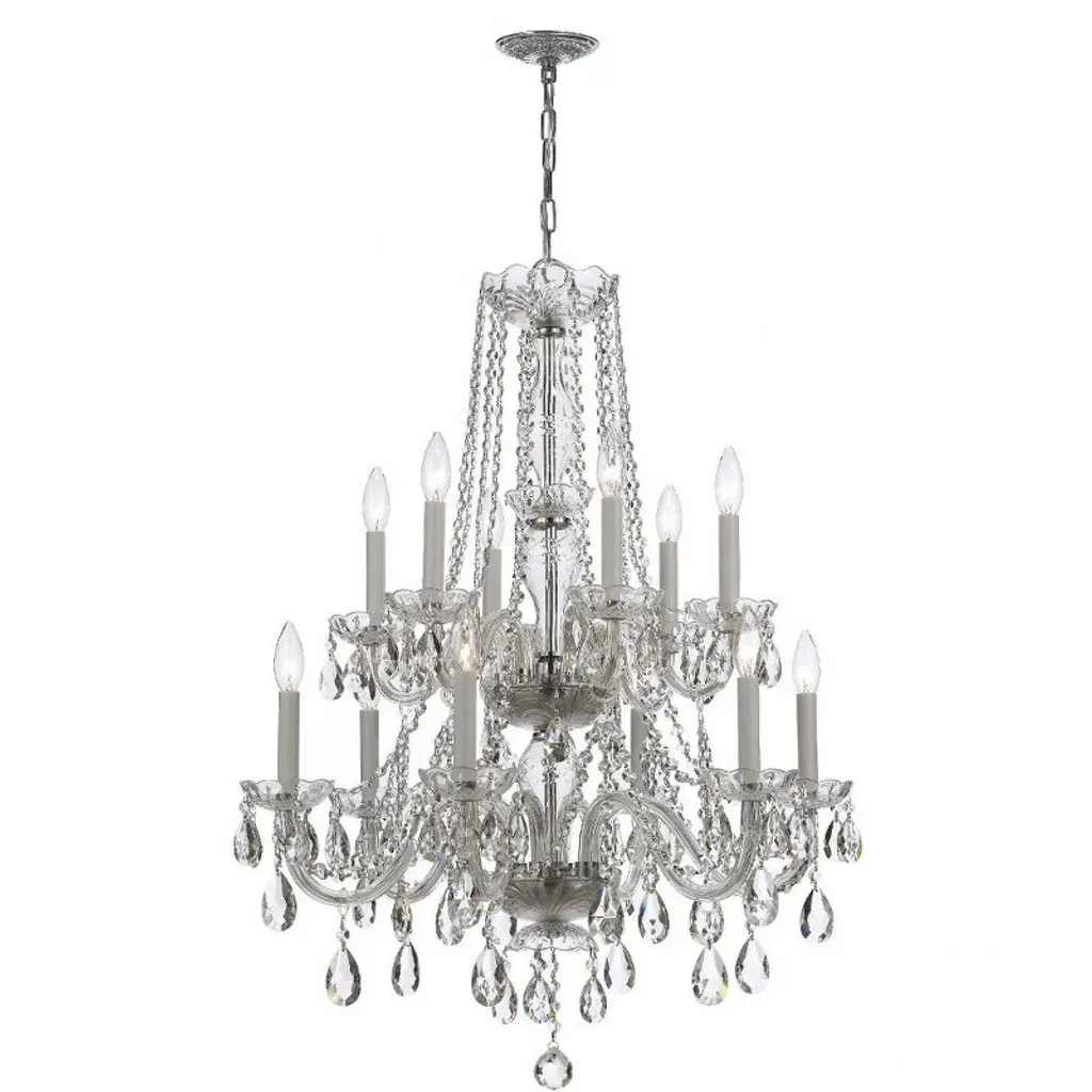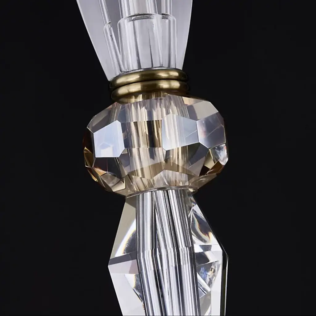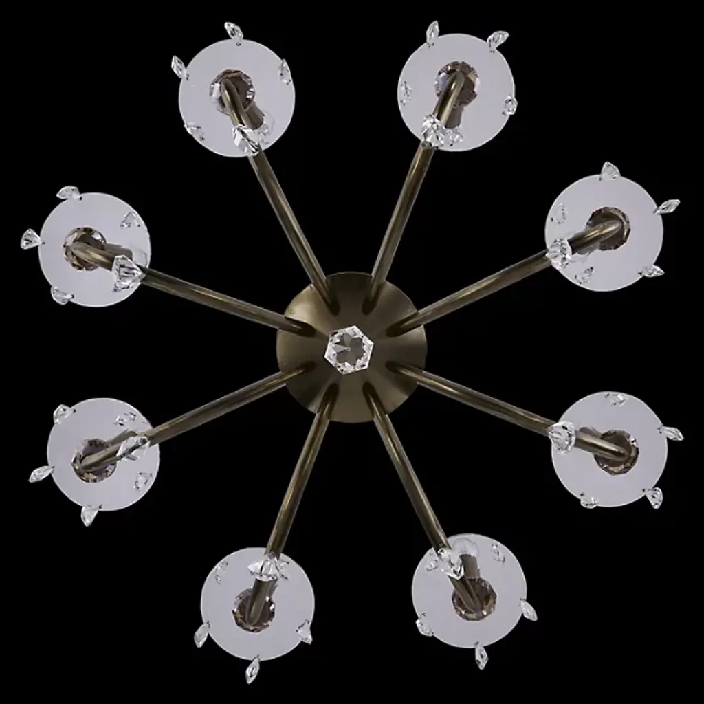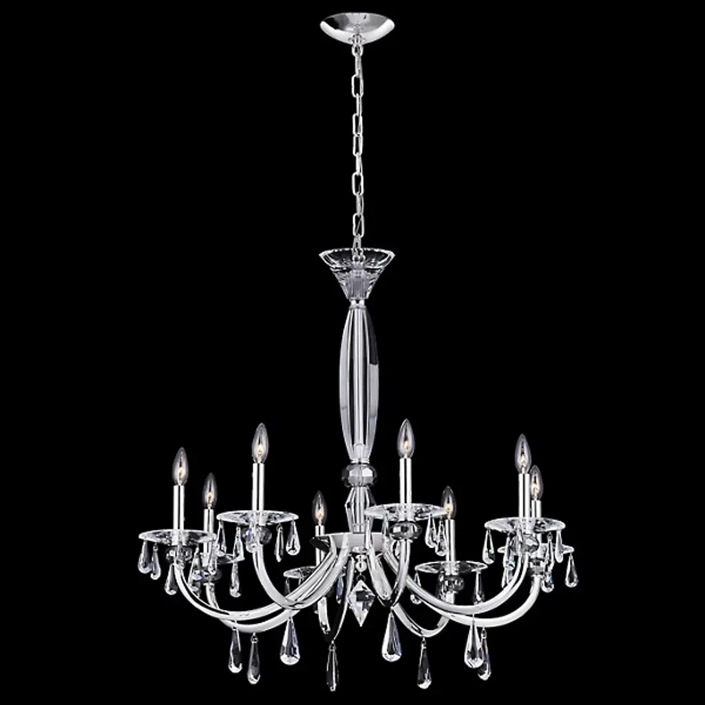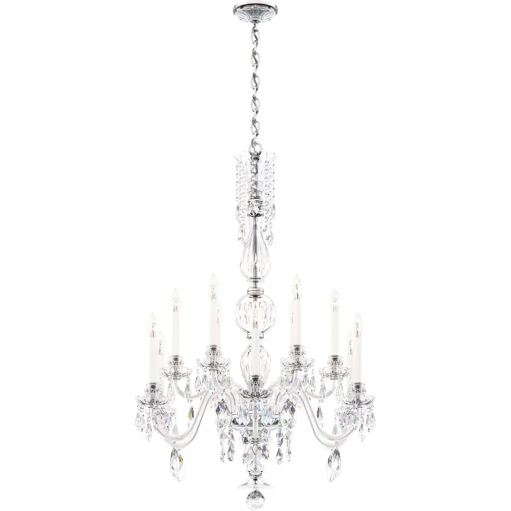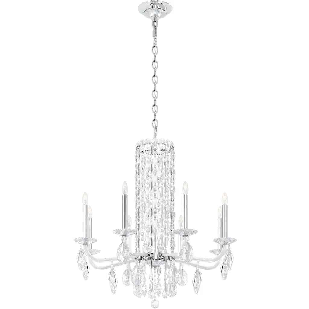 The Passo Chandelier from Allegri by Kalco Lighting curves through space in traditional swooping arms that flow outward from a central stem. Each of the six arms terminates with faceted accents that create sparkle points throughout the structure, complemented by teardrop pendants that hang gracefully to add movement and light refraction. The suspension’s clear elements maintain focus on the classic proportions and refined metal craftsmanship that updates traditional chandelier design through contemporary detailing.
