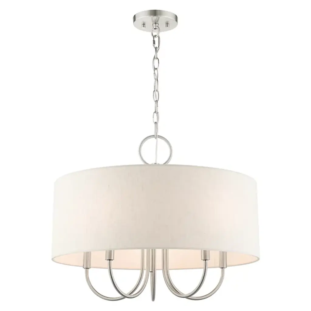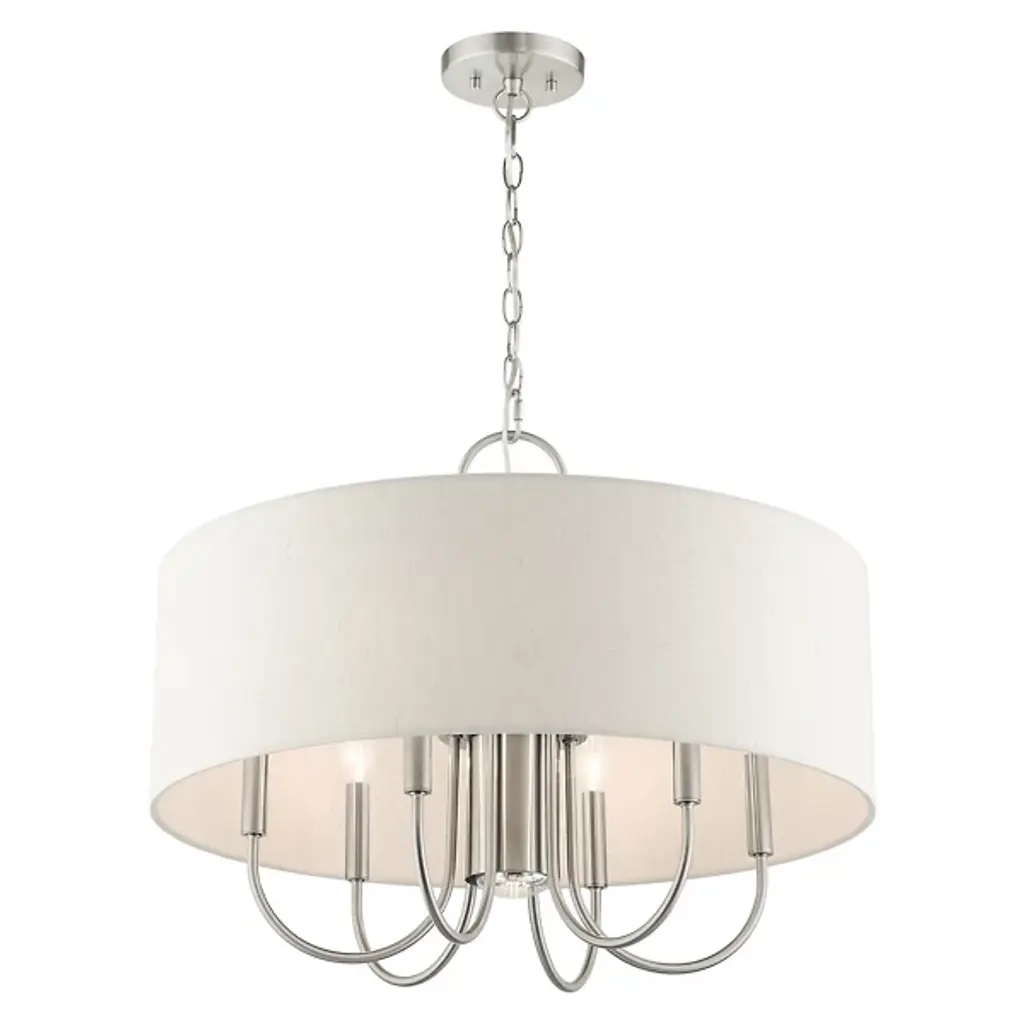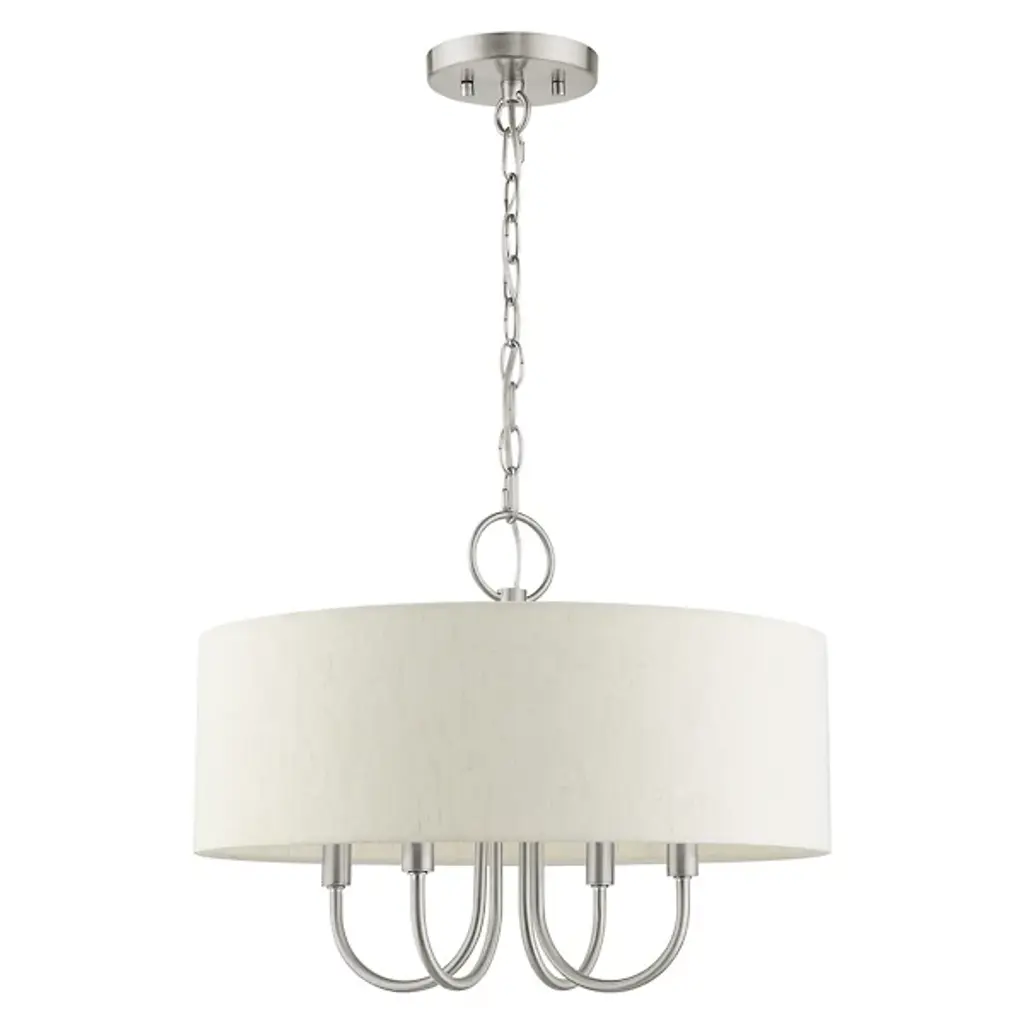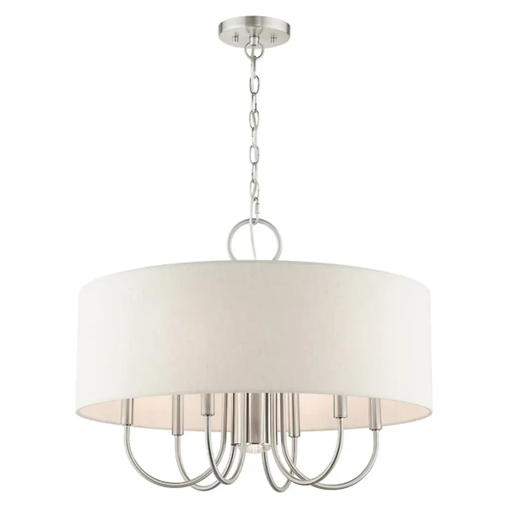 Introduce a bright, blooming visual to your rooms with the Patricia Chandelier from Alder & Ore. This transitional design features familiar motifs to satisfy a variety of home styles. It’s the ideal tone-setter over the foyer, dining table, or living space. It makes an elegant entrance with a chain-link suspension. Peeking out below, charming arms guide your gaze with a helping of curves. A handcrafted hardback fabric shade conceals the bulbs at the perfect height to reduce glare from the sides.