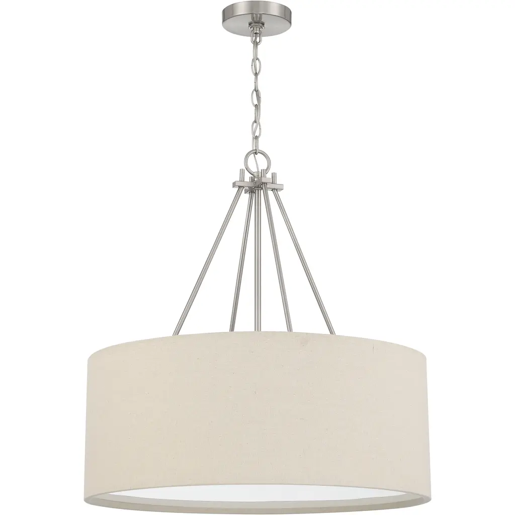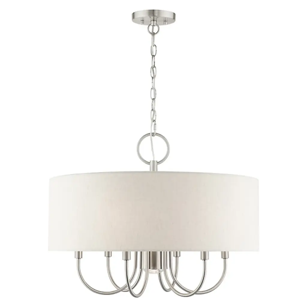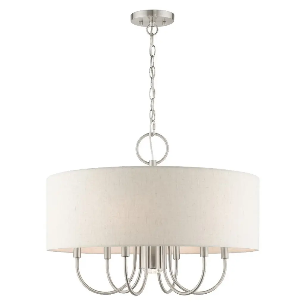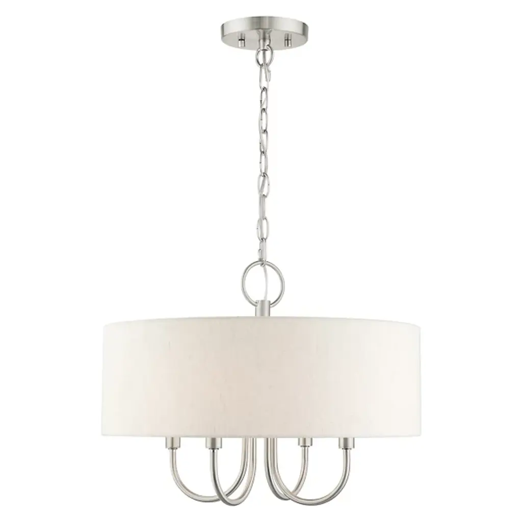 Introduce a bright, blooming visual to your rooms with the Patricia Chandelier from Alder & Ore. This transitional design features familiar motifs to satisfy a variety of home styles. It’s the ideal tone-setter over the foyer, dining table, or living space. It makes an elegant entrance with a chain-link suspension. Peeking out below, charming arms guide your gaze with a helping of curves. A handcrafted hardback fabric shade conceals the bulbs at the perfect height to reduce glare from the sides.