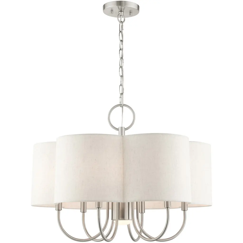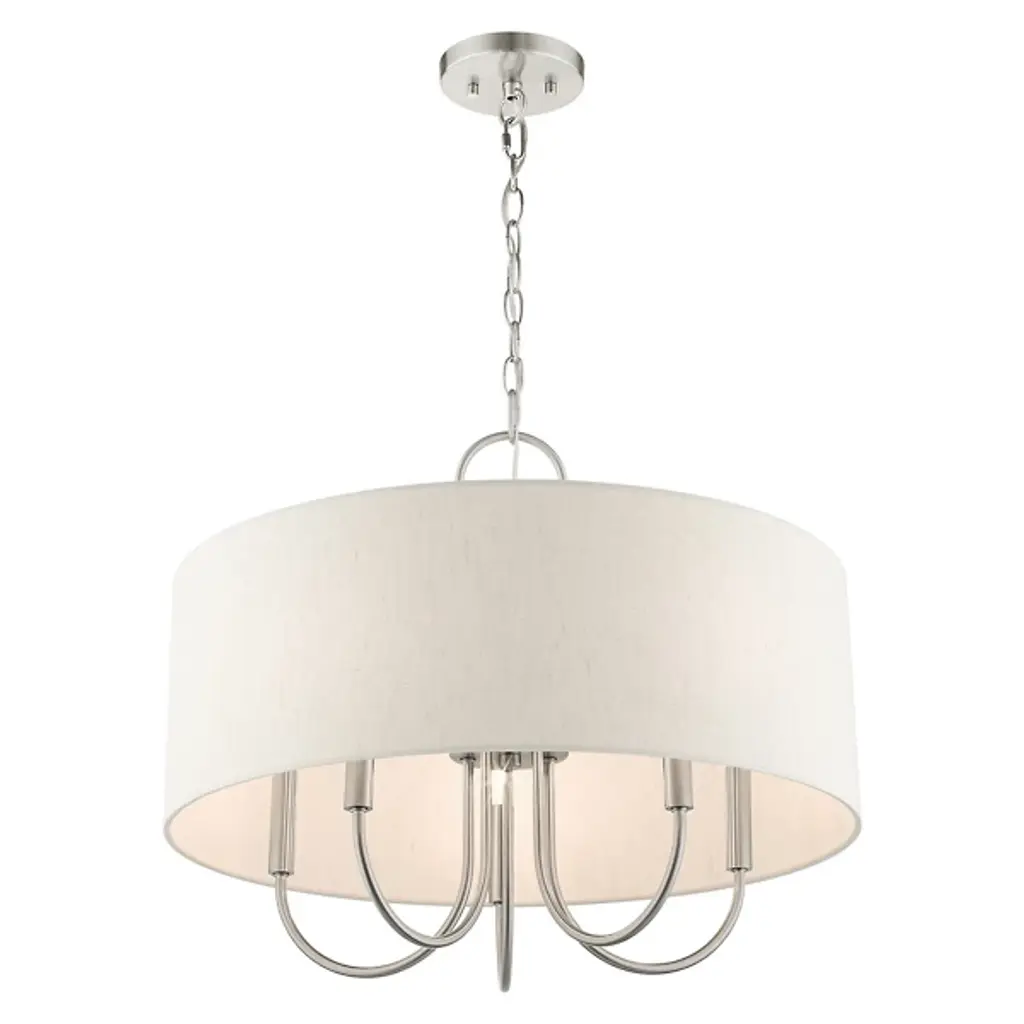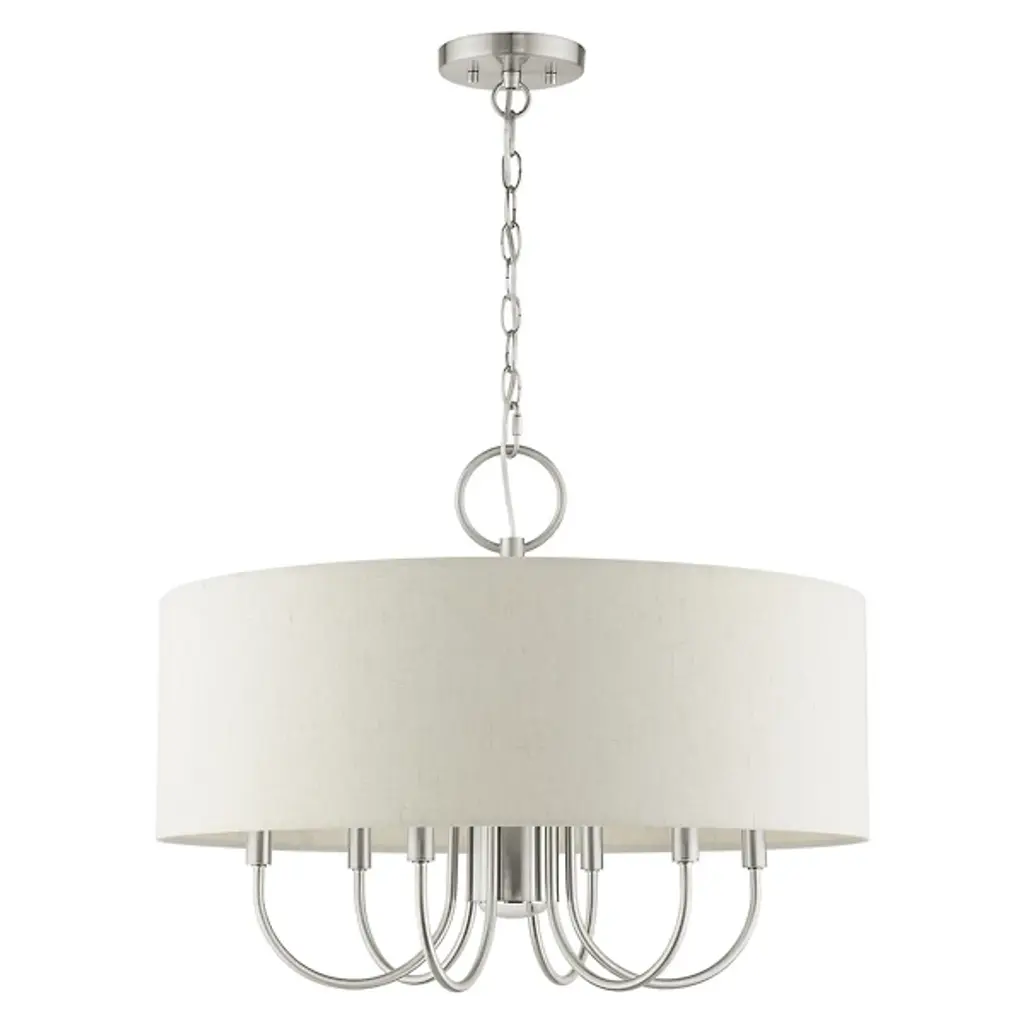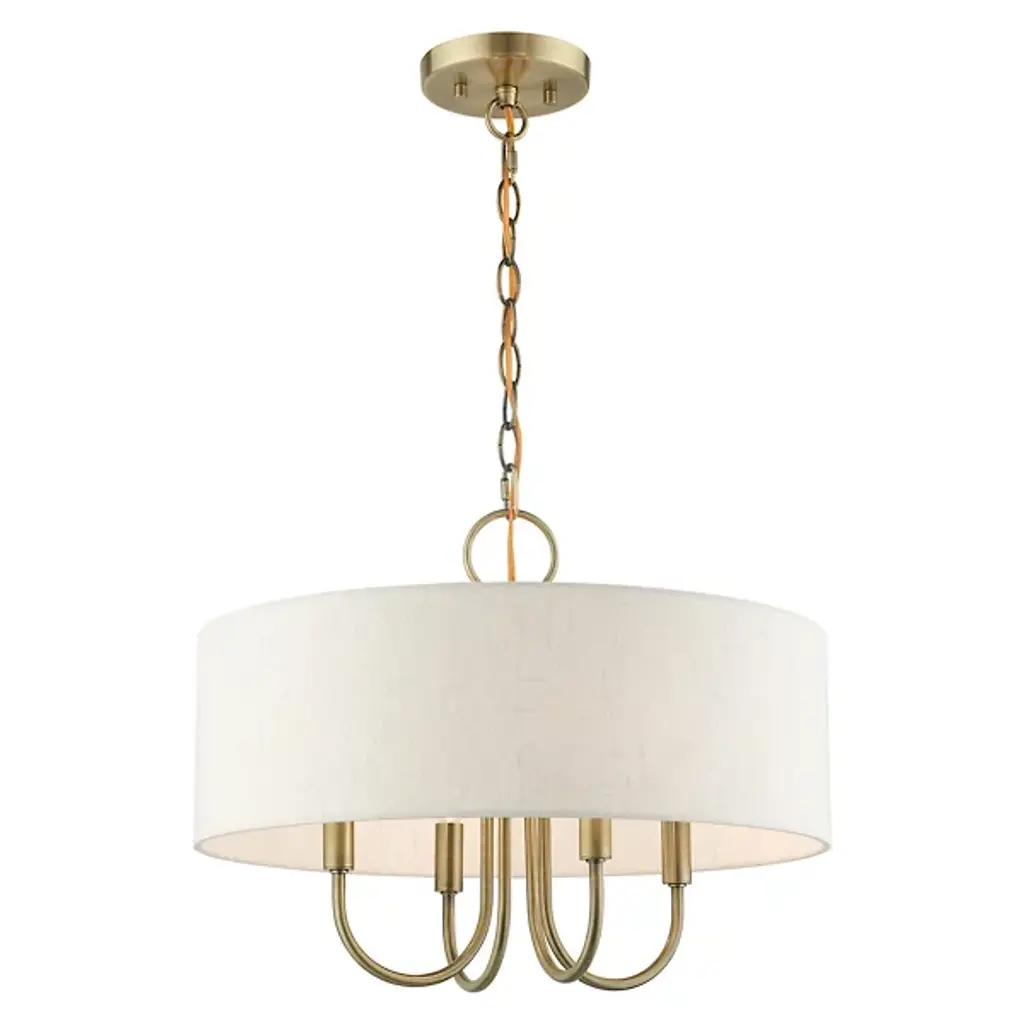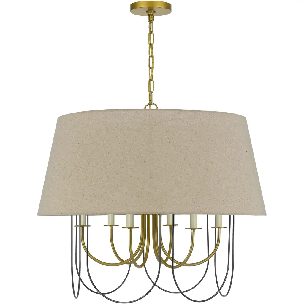 Introduce a bright, blooming visual to your rooms with the Patricia Chandelier from Alder & Ore. This transitional design features familiar motifs to satisfy a variety of home styles. It’s the ideal tone-setter over the foyer, dining table, or living space. It makes an elegant entrance with a chain-link suspension. Peeking out below, charming arms guide your gaze with a helping of curves. A handcrafted hardback fabric shade conceals the bulbs at the perfect height to reduce glare from the sides.