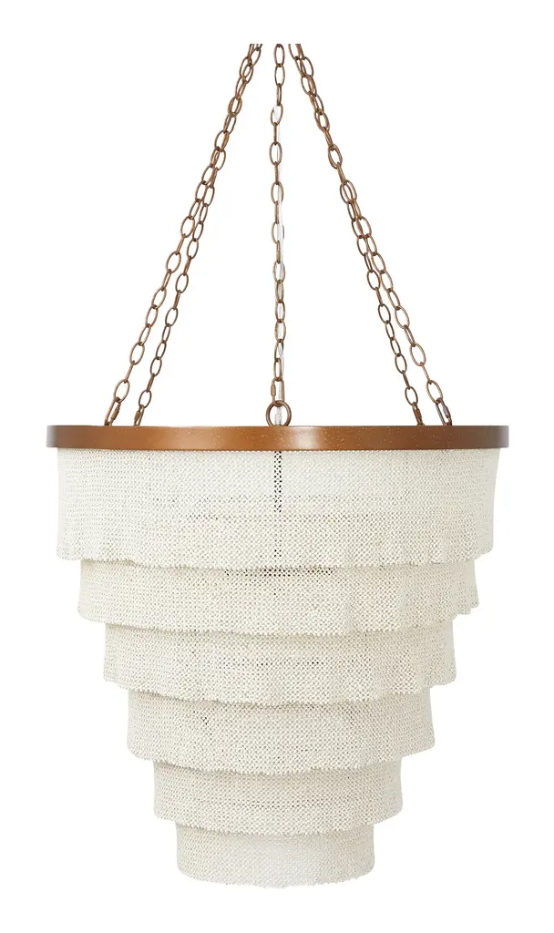 Patricia Round Chandelier 69"d X 72"h Natural Gold Coco Beads Metal