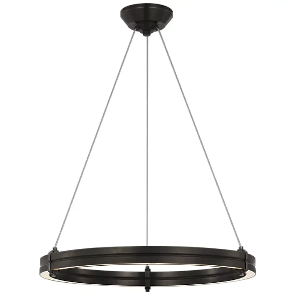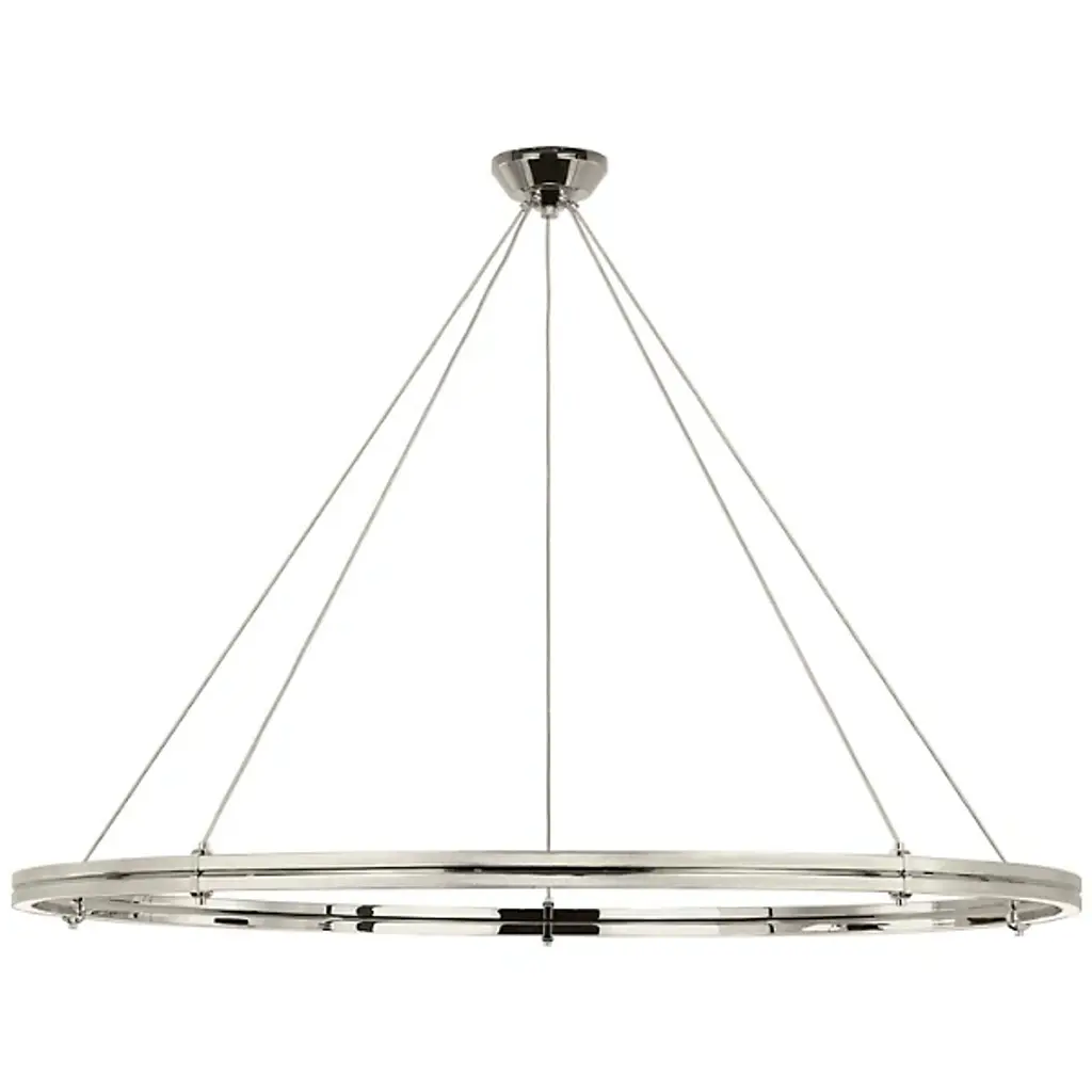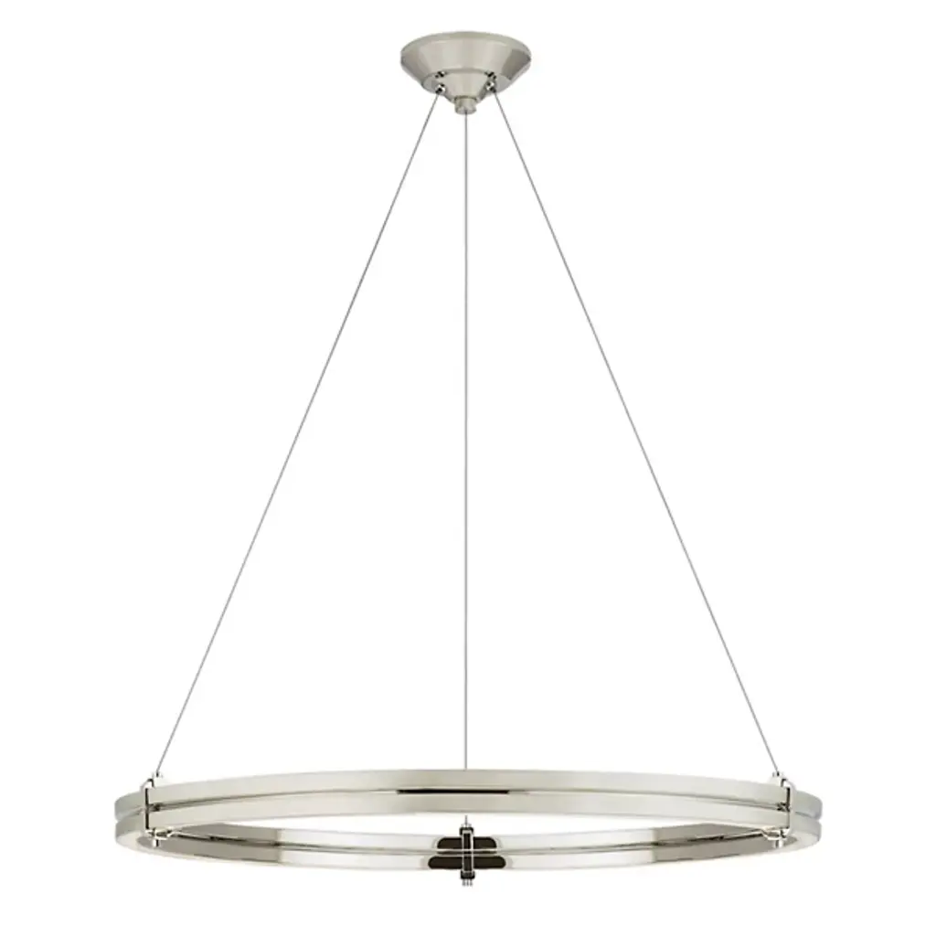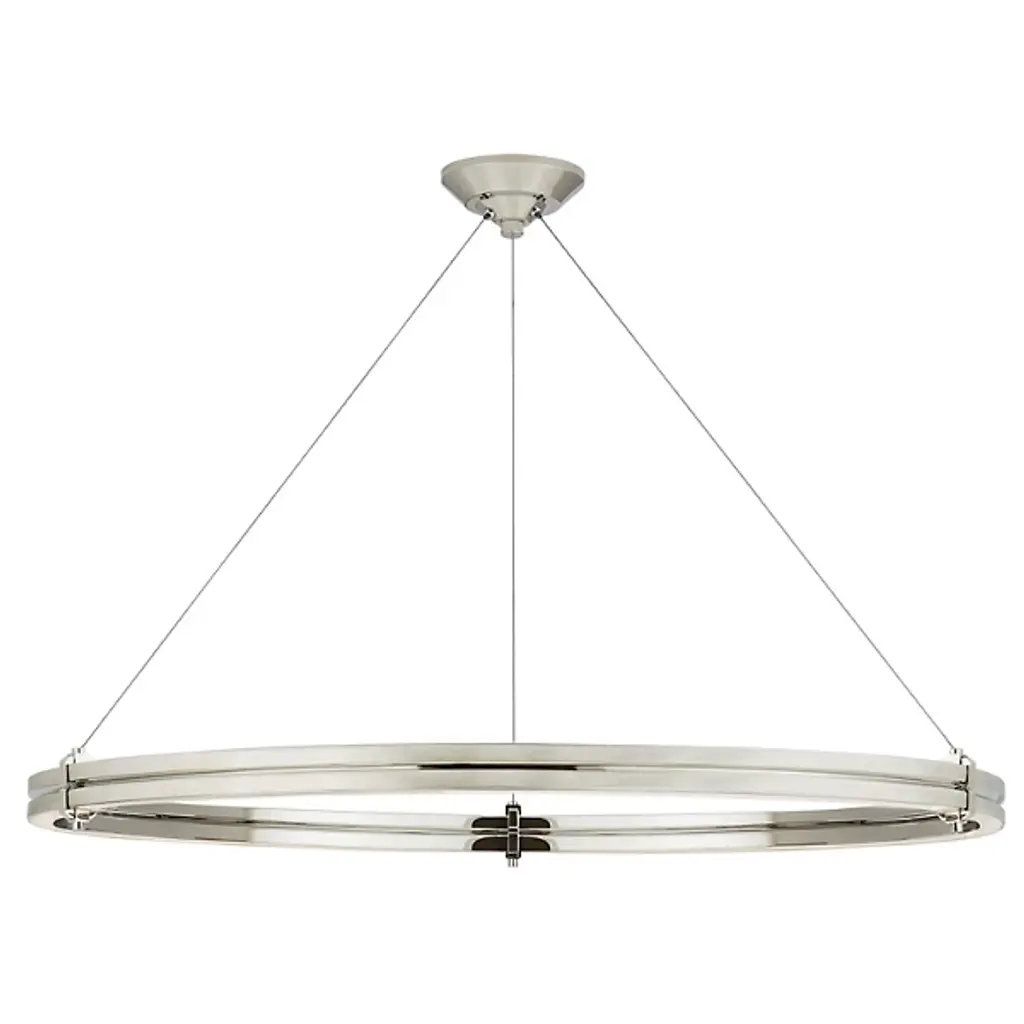 Create a lavish ring of inspiring illumination in your modern home with the Paxton LED Chandelier from Visual Comfort Signature, formerly known as Visual Comfort. Its beauty knows no bounds as it floats over you in an endless circle metal frame. A cut down the centerline of the frame showcases just how tight the piece is. An ultra-sleek wiring suspension gives the sophisticated metal structure the feeling as if floating in air. Heads will be tilted up as a radiant LED light shines like an angelic halo.