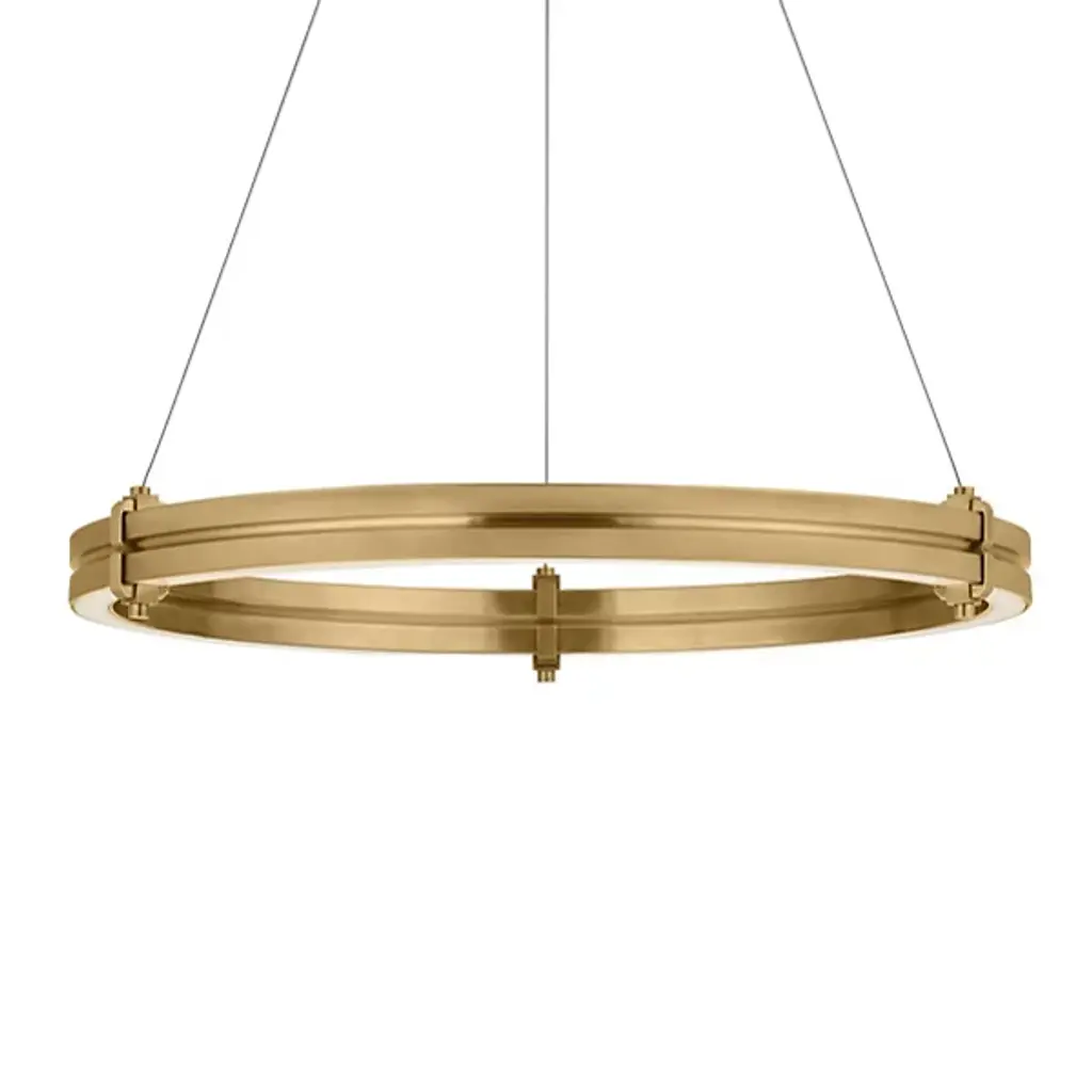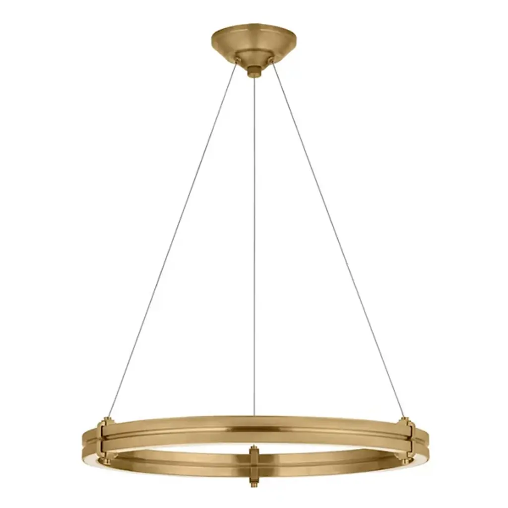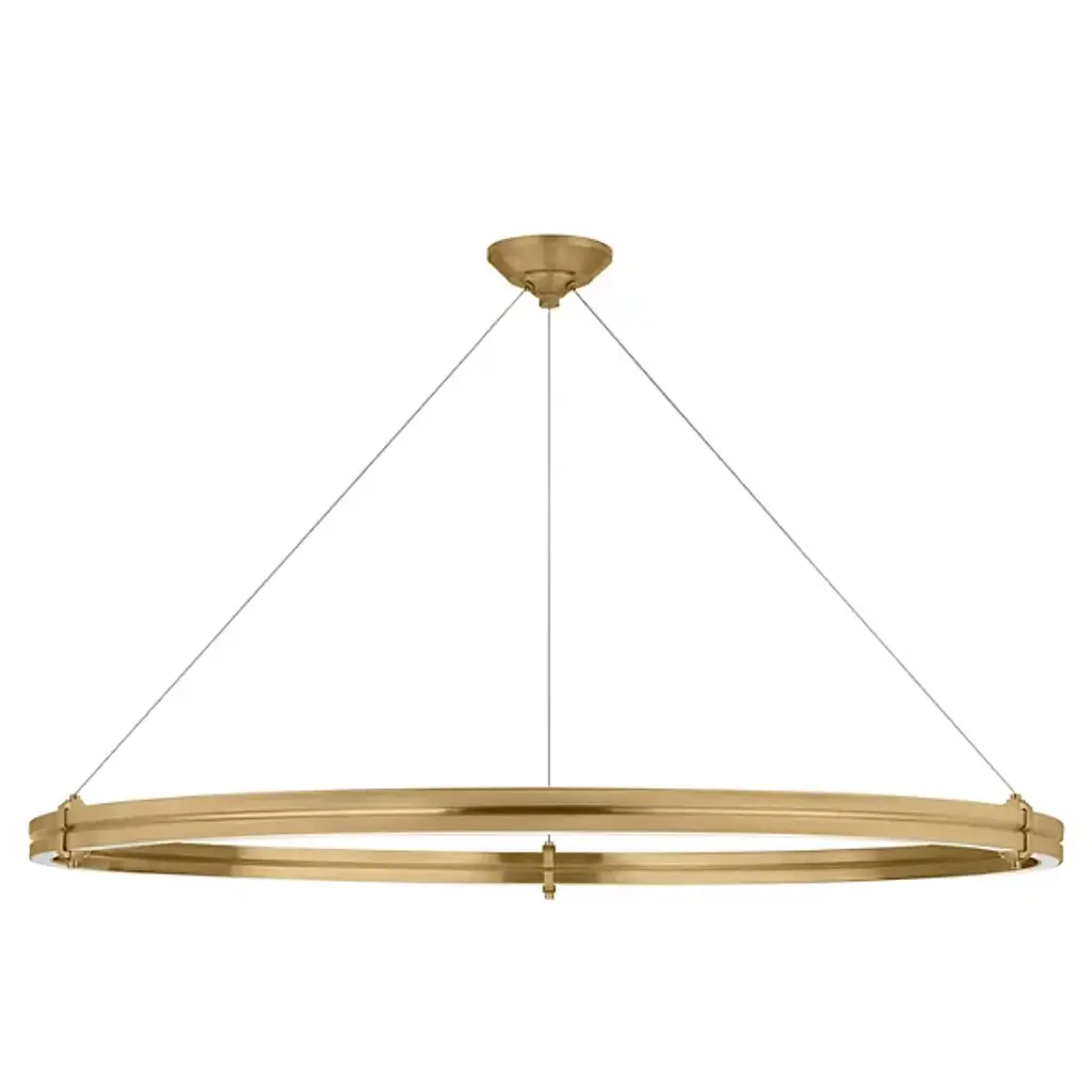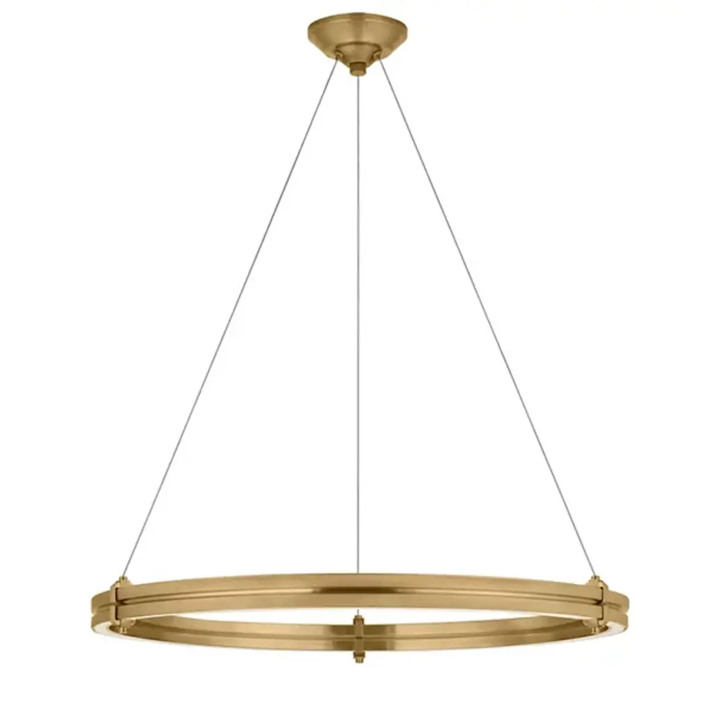 Create a lavish ring of inspiring illumination in your modern home with the Paxton LED Chandelier from Visual Comfort Signature, formerly known as Visual Comfort. Its beauty knows no bounds as it floats over you in an endless circle metal frame. A cut down the centerline of the frame showcases just how tight the piece is. An ultra-sleek wiring suspension gives the sophisticated metal structure the feeling as if floating in air. Heads will be tilted up as a radiant LED light shines like an angelic halo.
