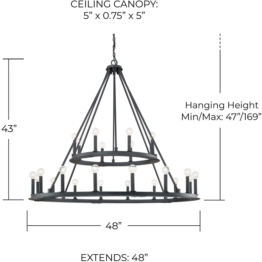 Pearson 24 Light 48 Inch Black Iron Chandelier Ceiling Light