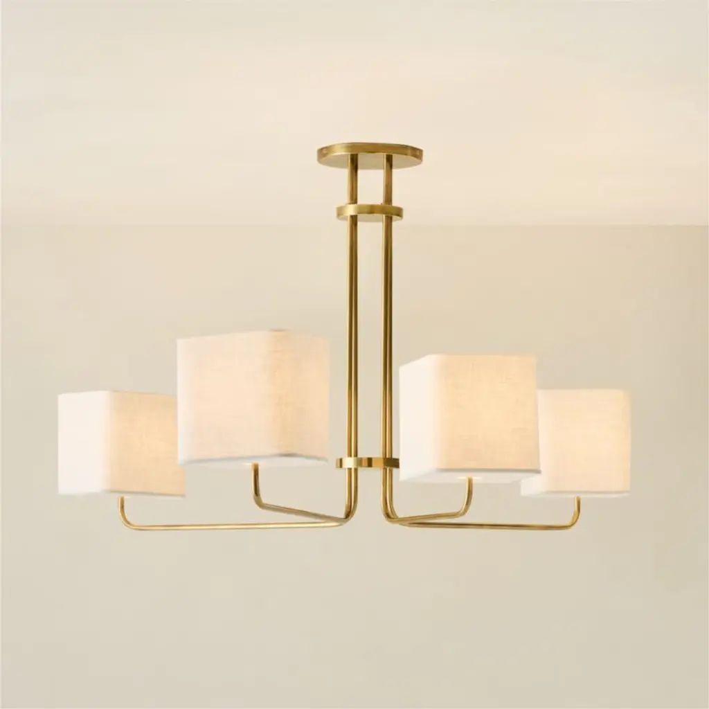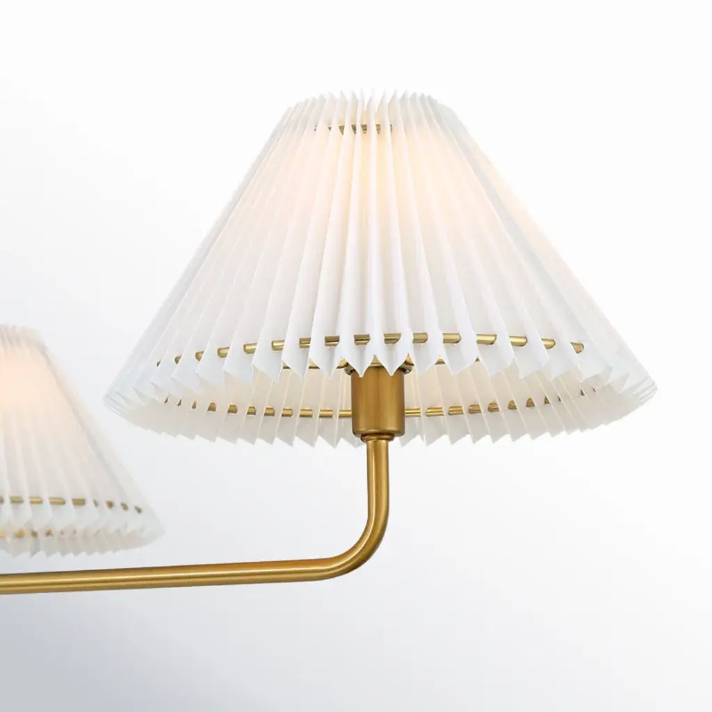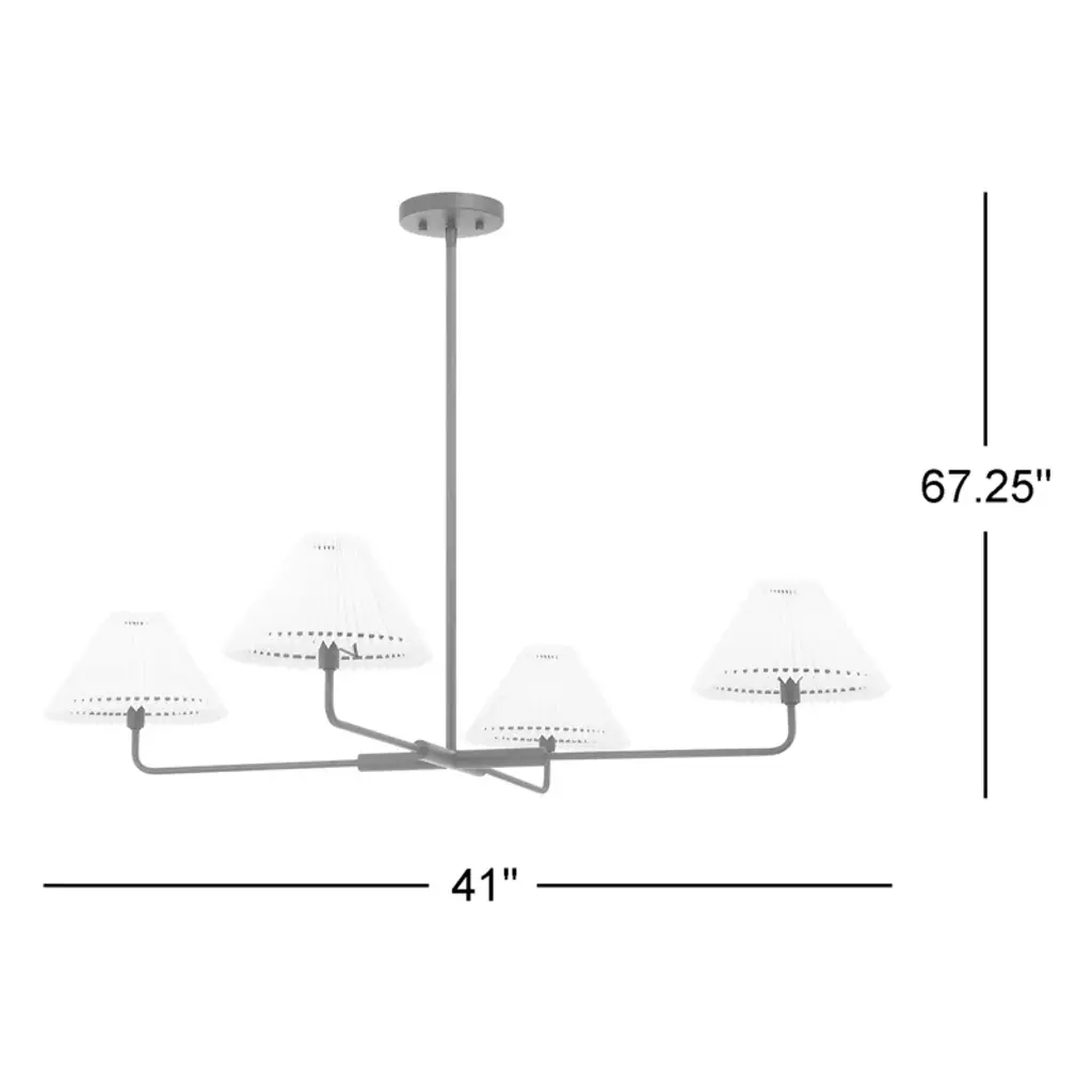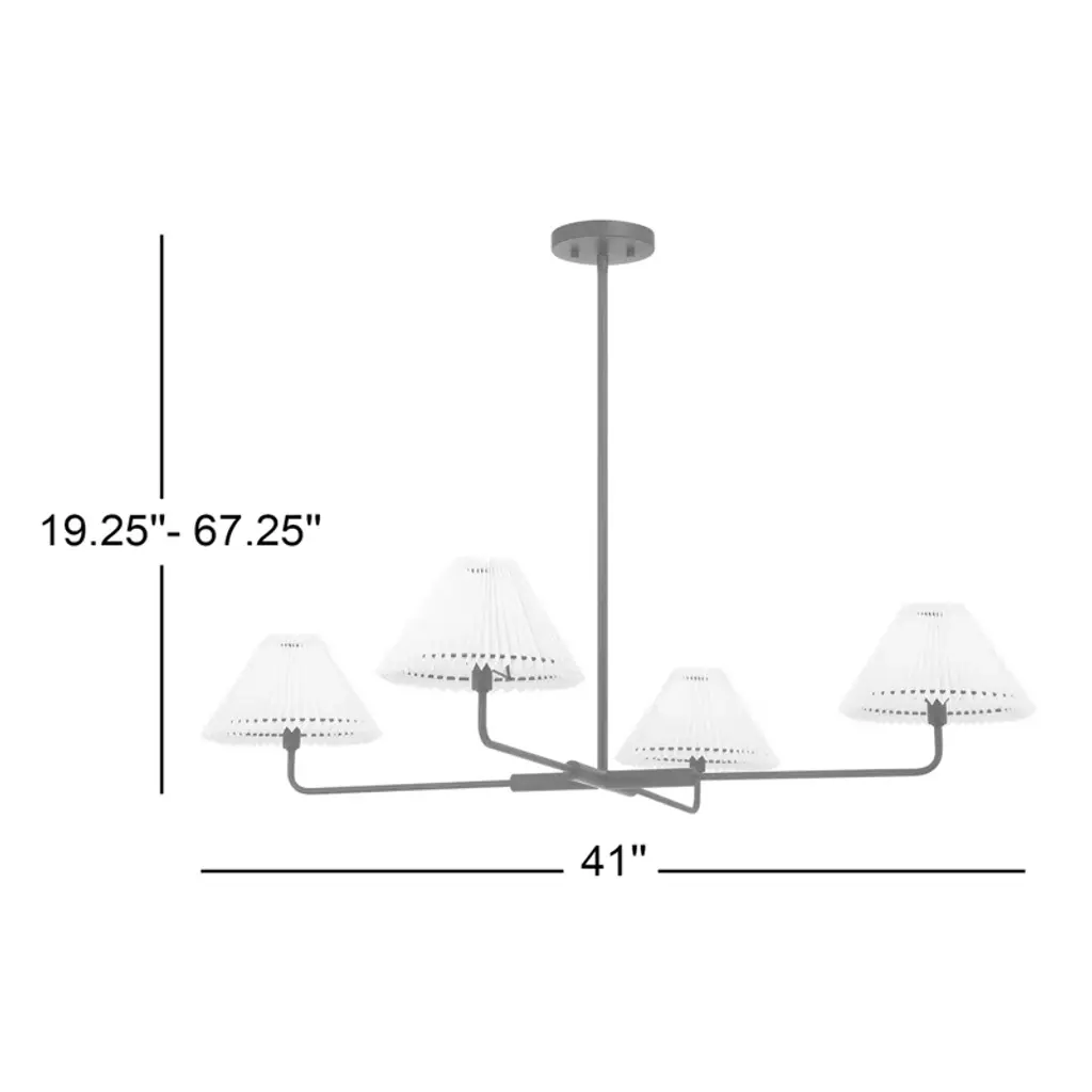 This 4-light chandelier illuminates your living or dining room with inviting ambient light. Pleated white shades softly diffuse the glow from the four bulbs (sold separately), and the fixture is compatible with a dimmer switch if you want the option to adjust the brightness. It suspends from a height-adjustable downrod, giving you additional customizable features. We love this chandelier in an entryway or over a dining room table.